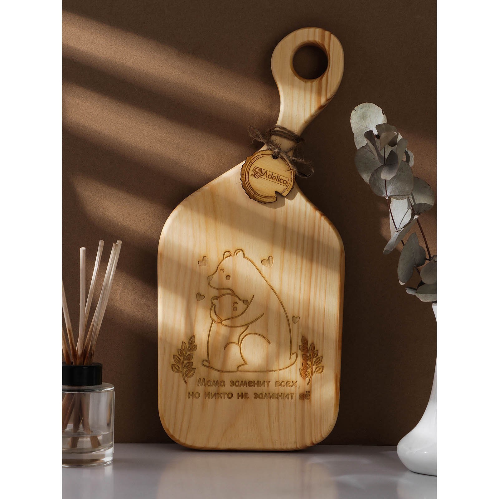 Доска разделочная авторская Adelica «мишки», 34,5x17,5x2,5 см, цельный массив кедра, цвет молочный