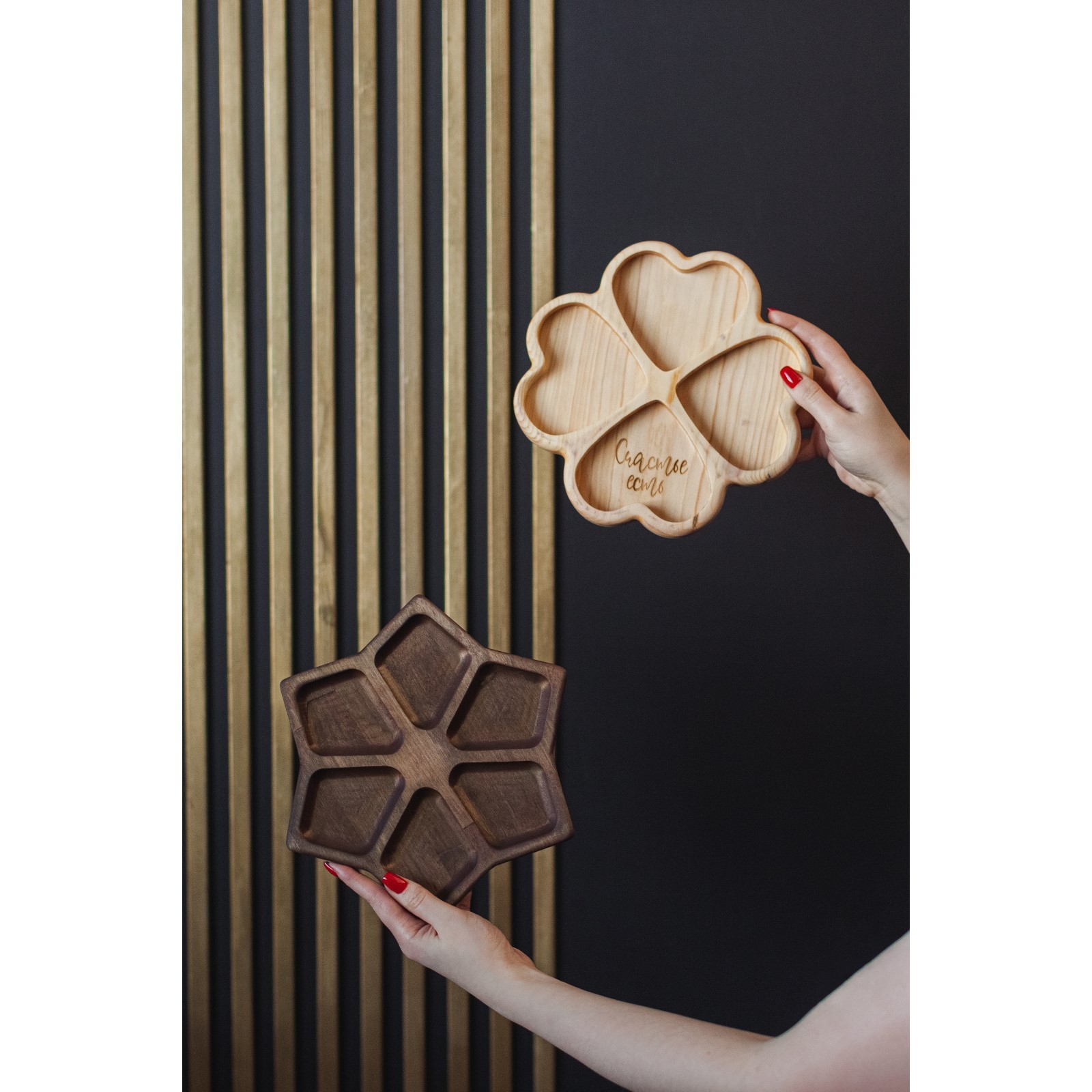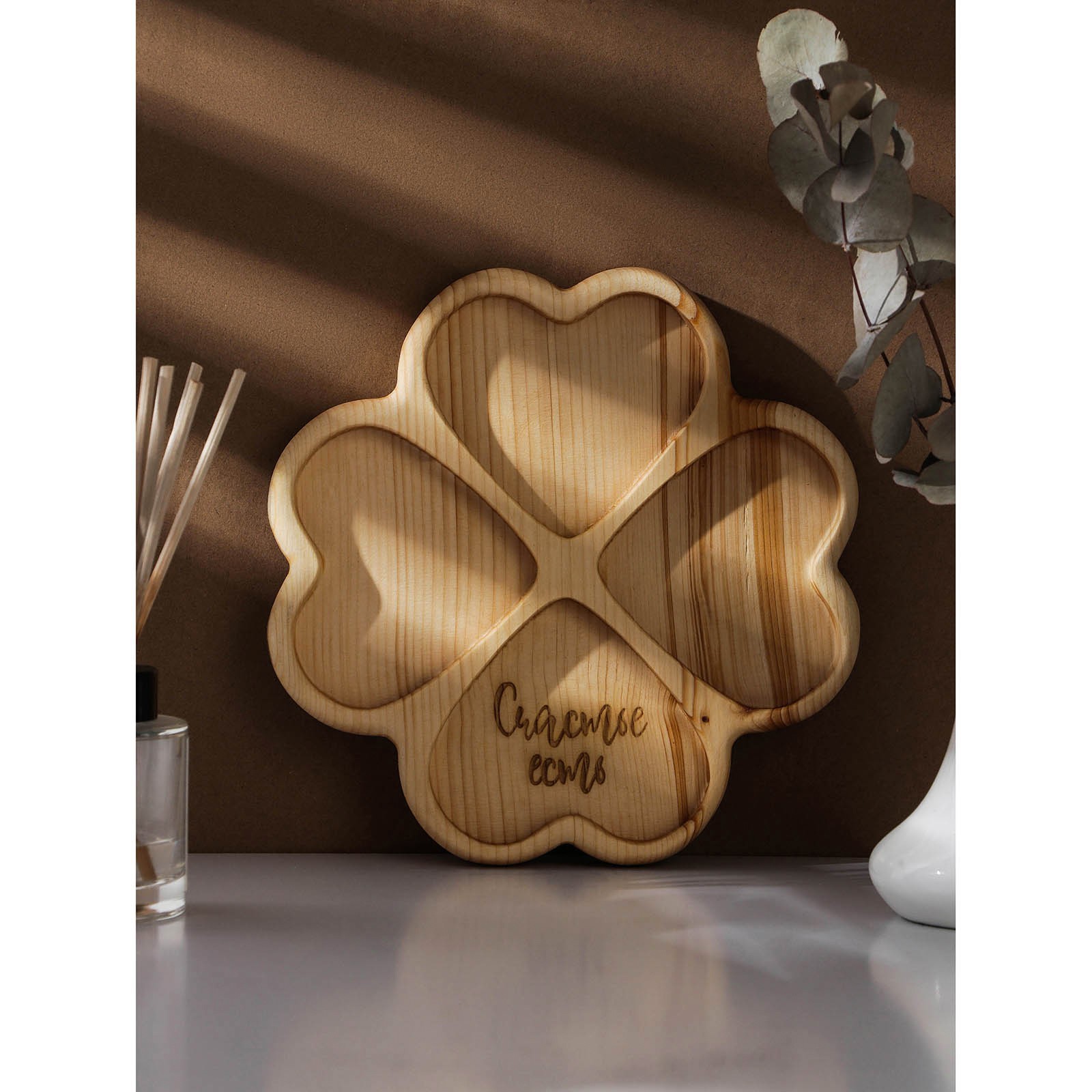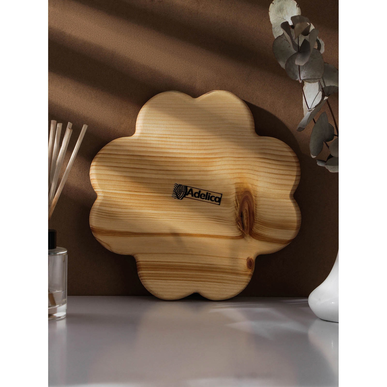Менажница авторская Adelica «сердце», 22x22x2,5 см, цельный массив кедра, цвет молочный