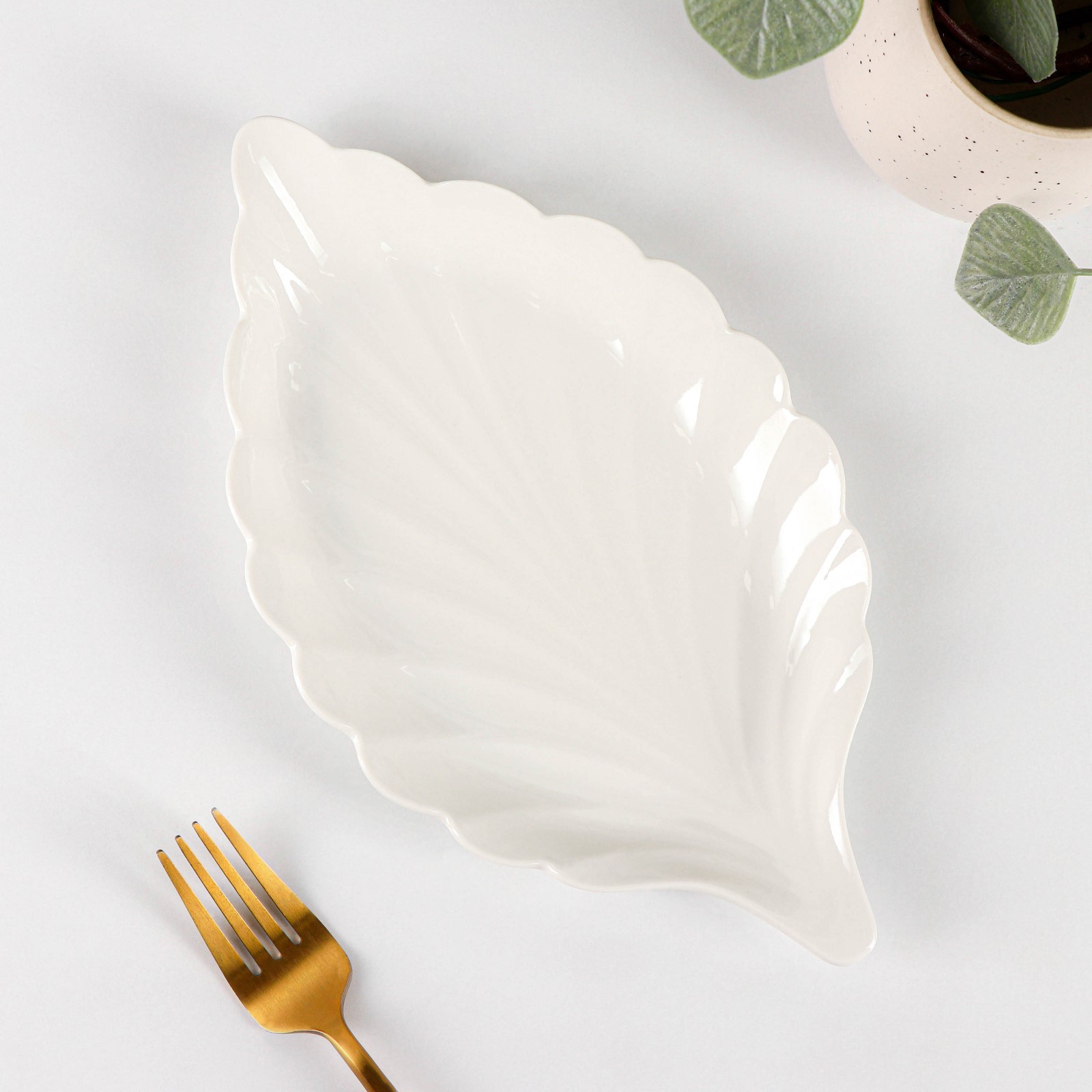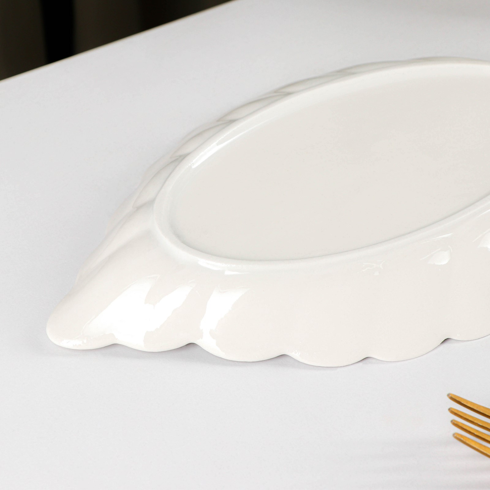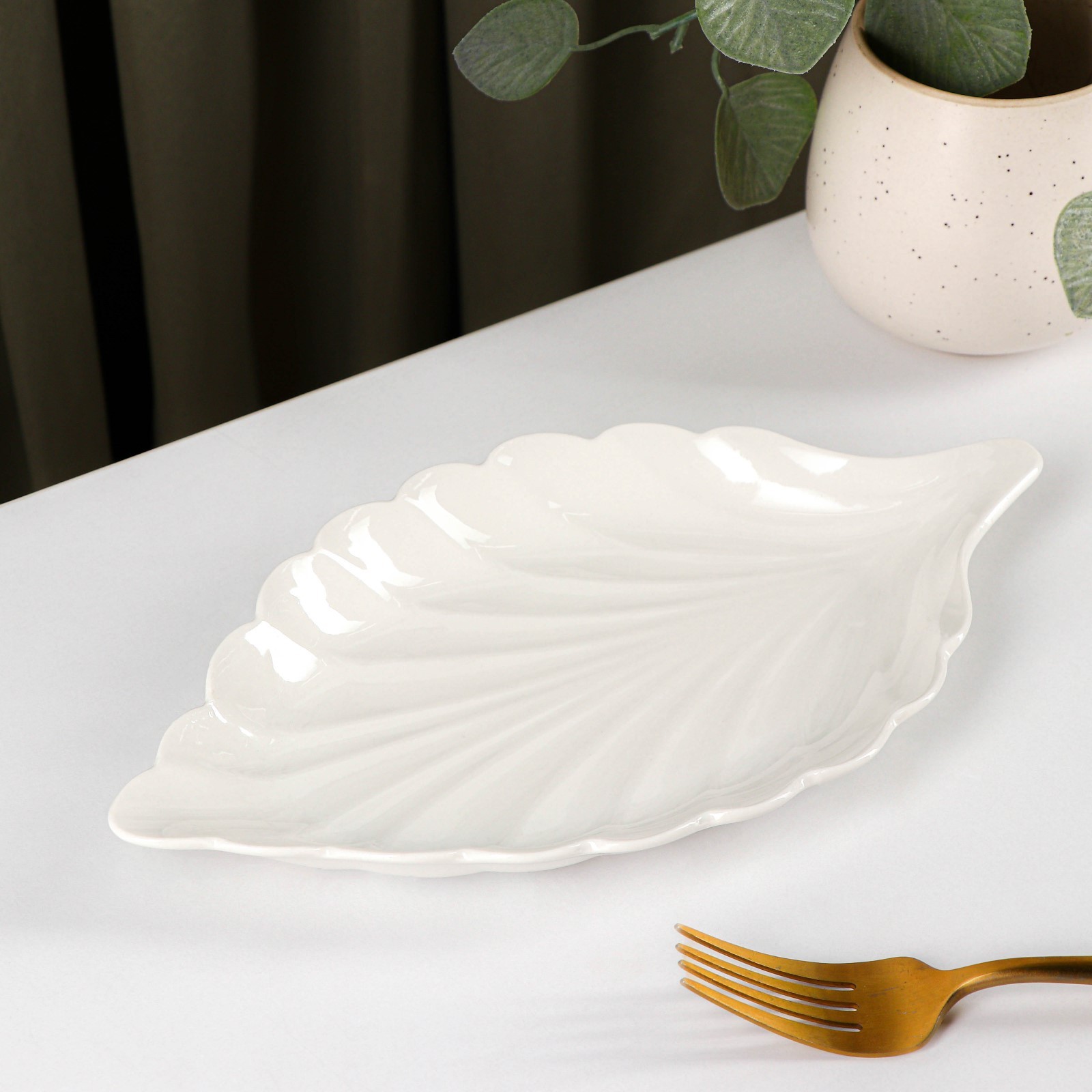 Блюдо керамическое «лист», 25,5x14,5 см, цвет белый
