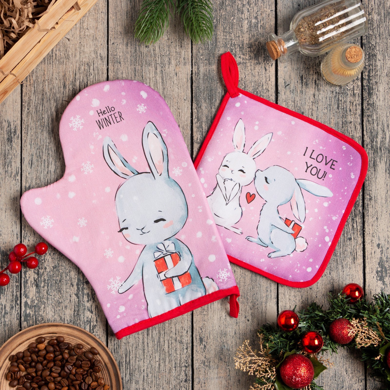 Кухонный набор Hello Winter, варежка-прихватка 20х28 см, прихватка 19х19 см, 100% хл