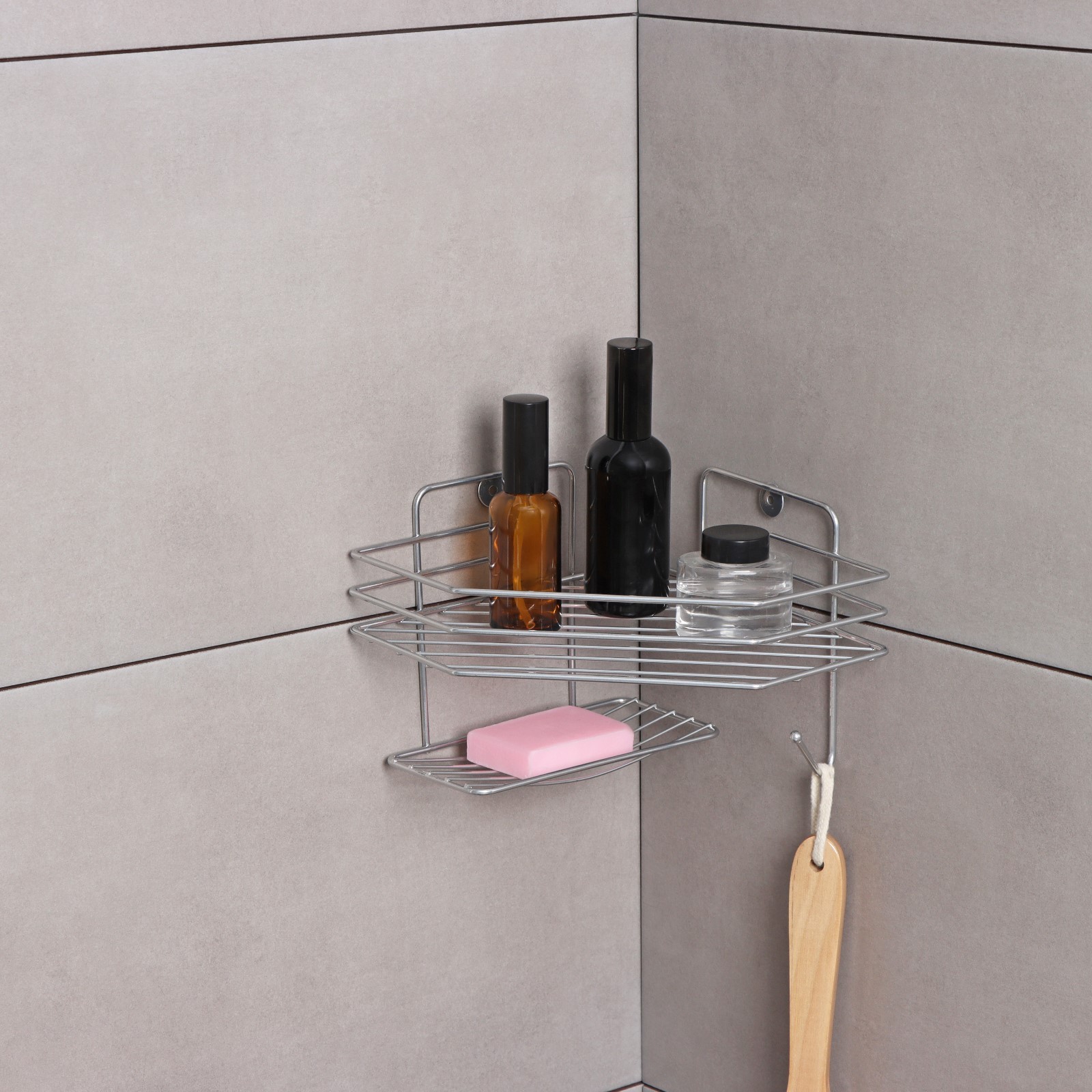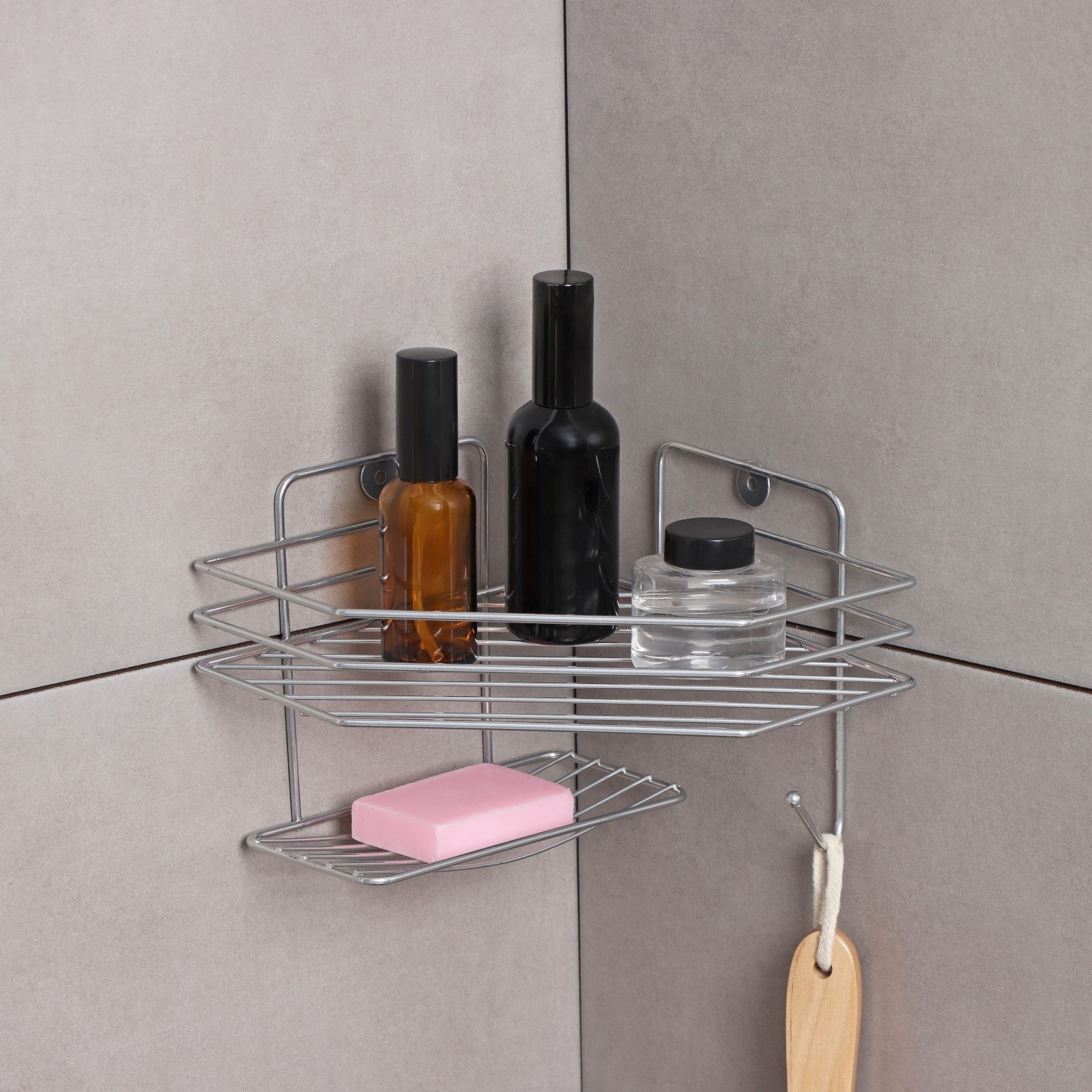Полка настенная, с мыльницей, 20x20x15,5 см, цвет хром