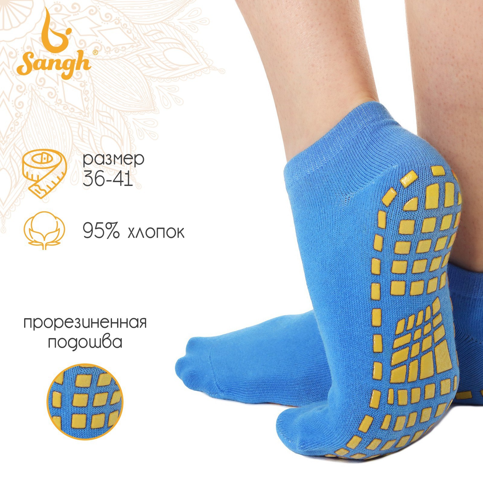 Носки для йоги sangh, р. 36-41, цвет голубой. Противоскользящие носки подходя для занятий йогой, пилатесом или балетом. Благодаря прорезиненной подошве можно выполнять любые упражнения без использования коврика, не боясь, что ваши ноги начнут скользить на поверхности. Набор:Нет|Цвет:Голубой|Материал:Эластан|Материал:Хлопок|Страна:Китай  развернуть описание ▼