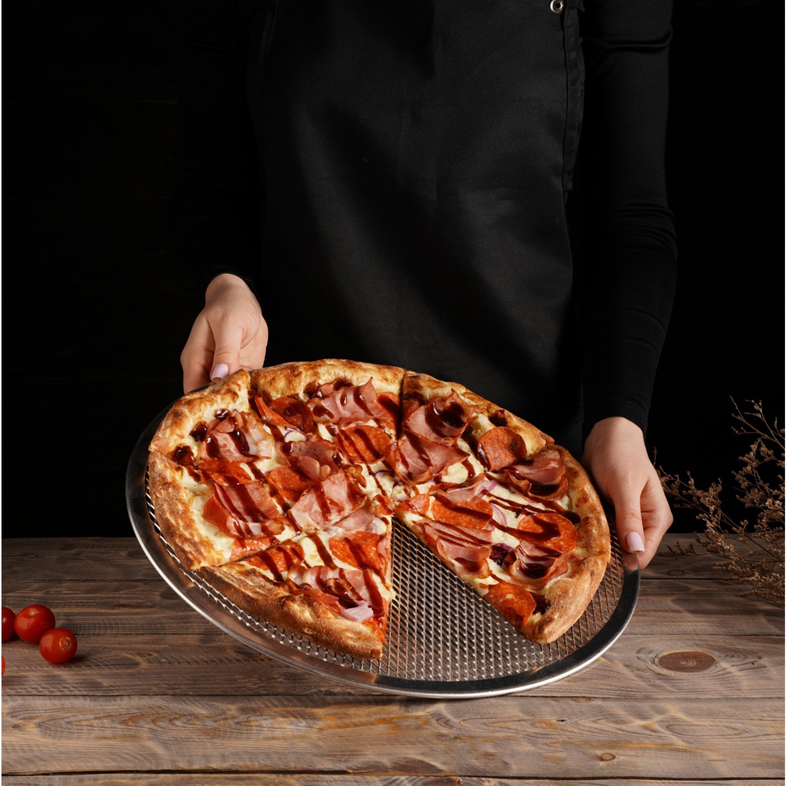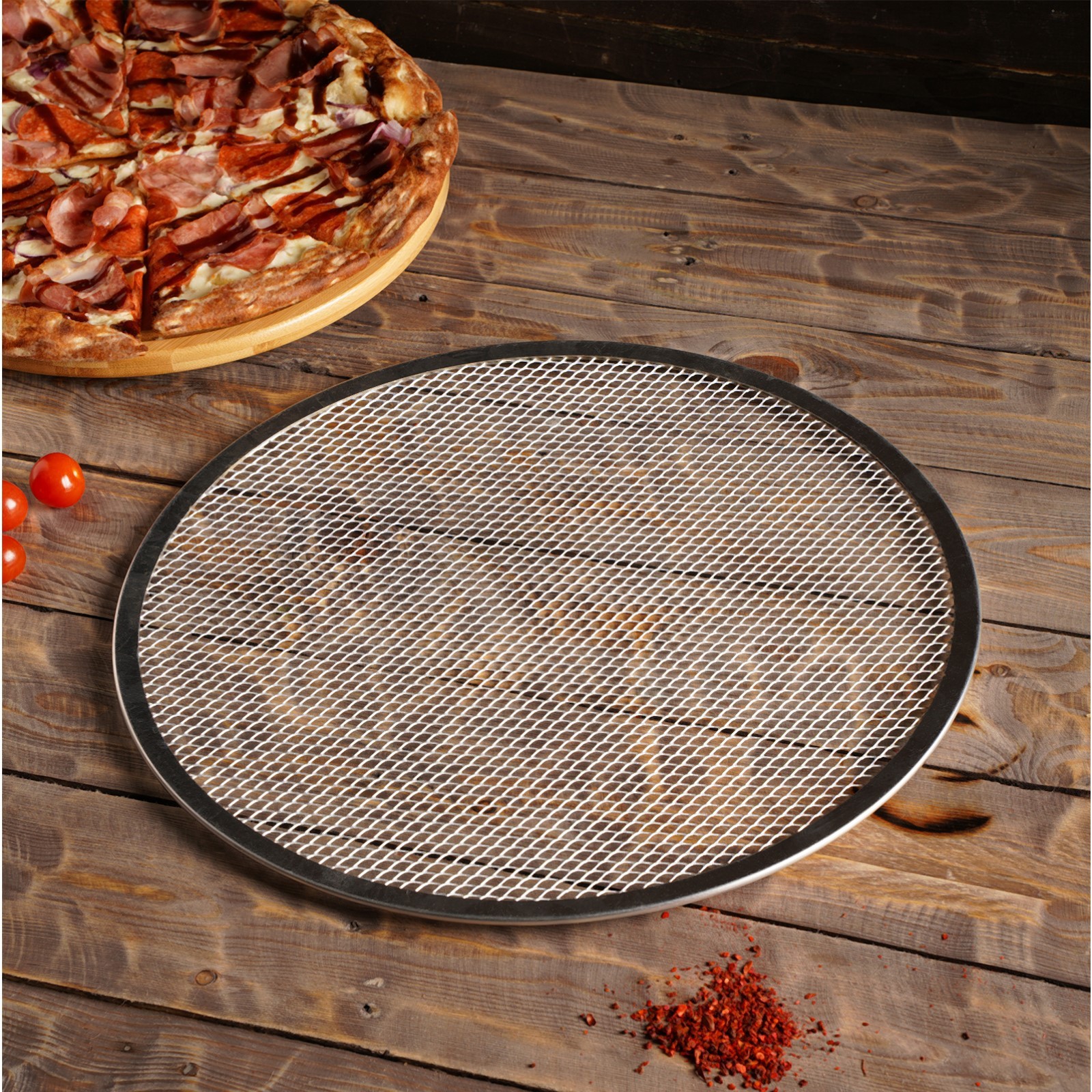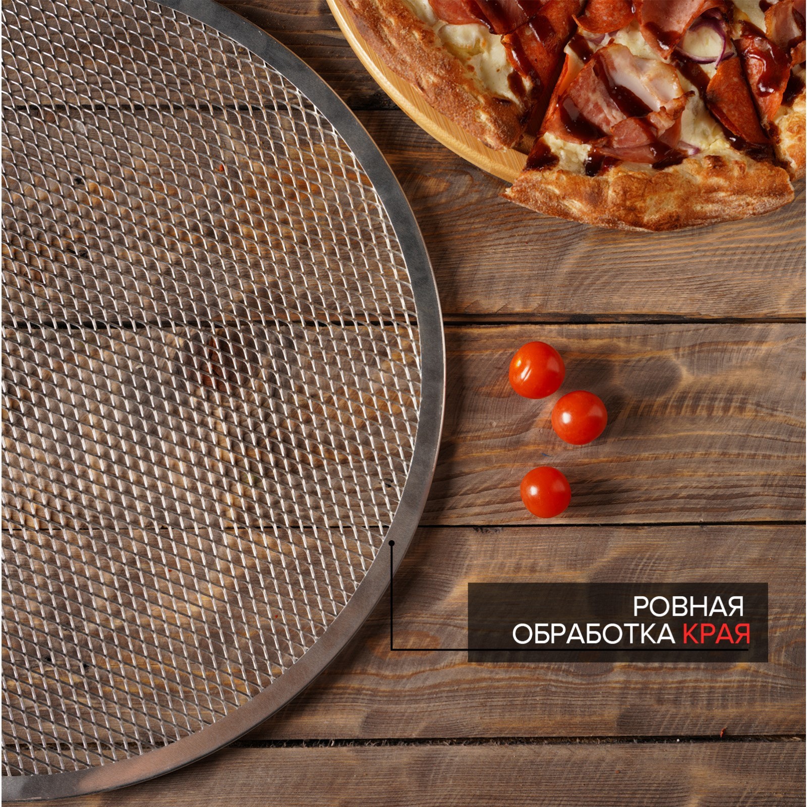 Форма для выпечки пиццы, d=35,5 см, цвет серебряный. Главная задача сетки для выпечки – приподнимать основу из теста, что позволяет горячему воздуху свободно циркулировать в ходе приготовления пиццы в печи. Это способствует равномерному пропеканию теста и образованию хрустящей корочки. Алюминиевую посуду не рекомендуется мыть в посудомоечной машине. Машинная мойка влияет на внешний вид изделия (вероятно появление цветных разводов и пятен), однако никак не сказывается на функциональности формы для выпечки. Цвет: Серый Форма: Круглая parts count: 0 Фасовка, шт.: 1 tnved: 7615108009 Крышка: Нет Материал: Алюминий Тип покрытия: Без покрытия Ячейки: Нет Тип формы: Для пиццы Разъёмная форма: Нет Можно мыть в посудомоечной машине: Нет Форма: Круг, шар, цилиндр  развернуть описание ▼