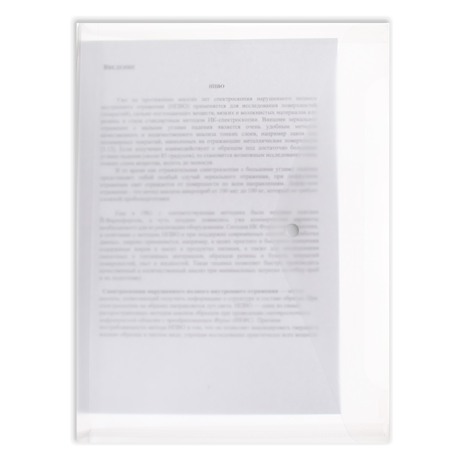 Папка конверт на кнопке а4, 180 мкм, calligrata, полупрозрачная, с горизонтальным расширением, микс. Папка с кнопкой - универсальная модель для хранения, транспортировки и защиты бумаг, документов и различных мелких предметов. Окажется незаменима для дошкольников, учащихся и их родителей. Особенности: Папка-конверт формата А4 из прозрачного пластика плотностью 180 мкм.Закрывается на защелку-кнопку, что способствует удобству для частого использования и обеспечивает быстрый доступ к бумагам.Повышенной вместительностью до 200 листов поможет хранить или взять с собой необходимые документы.Характеристики: Формат: А4.Вмещает до: 200 листов.Фактура: гладкая.Тип пластика: прозрачный.Толщина пластика: 180 мкм.Тип замка: кнопка.Цвет: ассорти.Высота: 240 мм.Ширина: 330 мм.Глубина: 40 мм.Материал: полипропилен.В спайке один цвет.Данный товар отличается доступной ценой и гарантированно высоким качеством. Цвет:МИКС|Формат:А4|Количество отделений:1|Толщина, мкм:180|Вид застёжки:Кнопка|Рисунок:Нет|Материал:Полипропилен|Особенности папок:Горизонтальная|Штрихкод на единице товара:Да|Реестр Минпромторга:Да|Страна:Россия  развернуть описание ▼