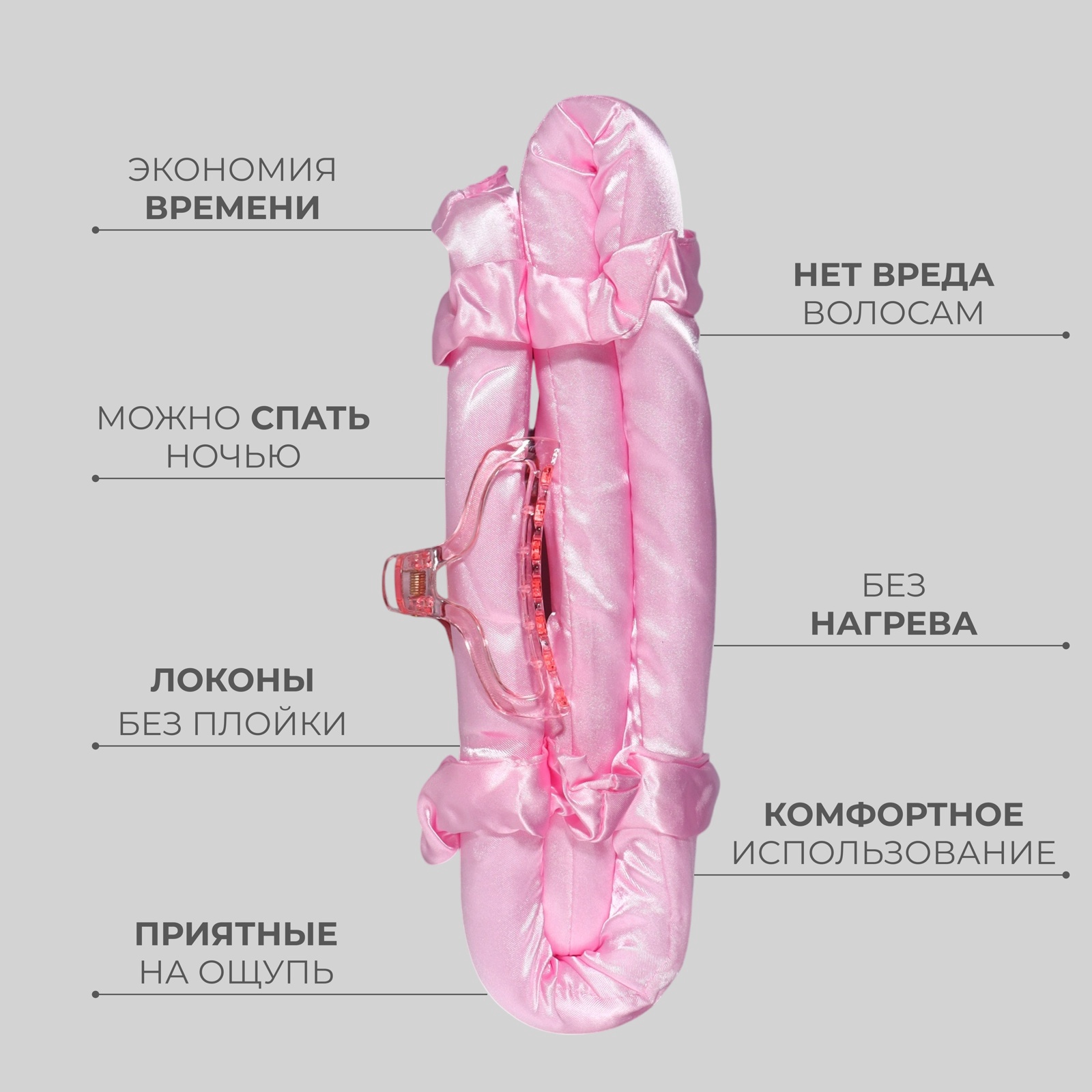 Мягкие бигуди «волшебный локон», 4 предмета: бигуди, резинки - 2 шт, крабик, цвет розовый