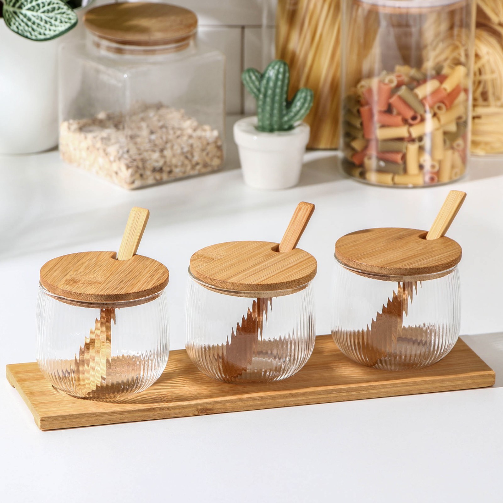 Набор банок стеклянных «эко. дафна», 280 мл, 30x9,5 см, с ложками, 3 шт