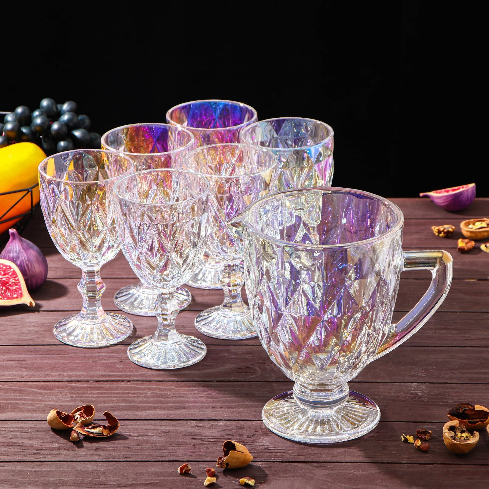 Набор для напитков из стекла «круиз», 7 предметов: кувшин 1,1 л, 6 бокалов 300 мл, цвет перламутровый