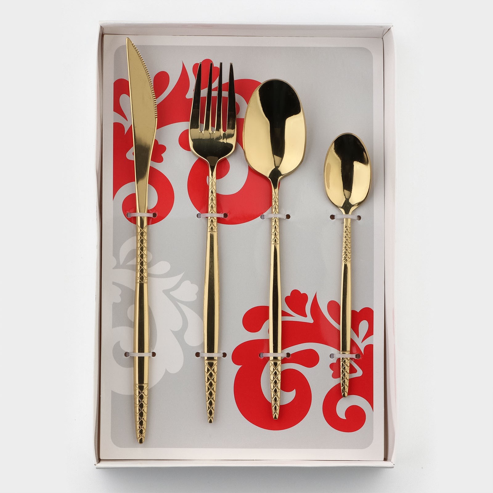 Набор столовых приборов из нержавеющей стали доляна «античность», 4 предмета, цвет золотой