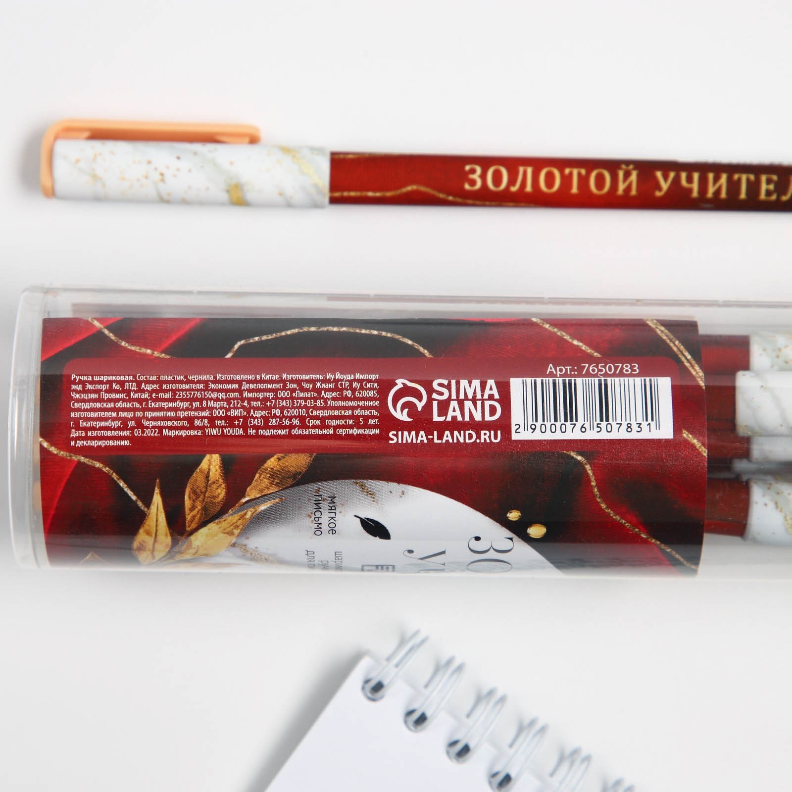 Ручка шариковая с колпачком и нанесением soft-touch, синяя паста 0.7 мм «золотому учителю». Ручка отлично подойдет в качестве подарка. Яркий дизайн несомненно привлечет внимание и будет выделяться среди других предметов, а удобная форма корпуса позволит использовать ее с комфортом. Вид ручки: шариковая;Цвет стержня: синий;Стержень заменяемый: да;Материал: пластик;Форма корпуса: круглая.Упаковка: пакет. Диаметр пишущего узла, мм:0.7|Набор:Нет|Цвет:Красный|Тип:Неавтоматическая ручка|Вид ручки:Шариковая|Цвет стержня:Синий|Особенности ручек:Без особенностей|Европодвес:Нет|Вид упаковки:Пластиковый тубус|Тематика праздника:День учителя|Адресат:Учителю|Материал:Пластик|Материал упаковки:Пластик|Составляющие набора:Ручка|Стержень заменяемый:Да|Штрихкод на единице товара:Да|Наличие грипа:Нет|Страна:Китай  развернуть описание ▼