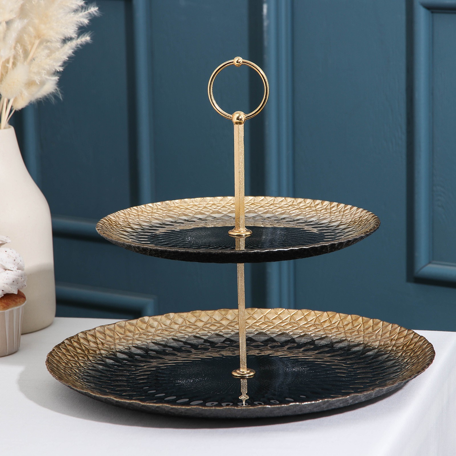 Блюдо 2-х ярусное «барокко», D=21/28 см, цвет чёрный с золотом