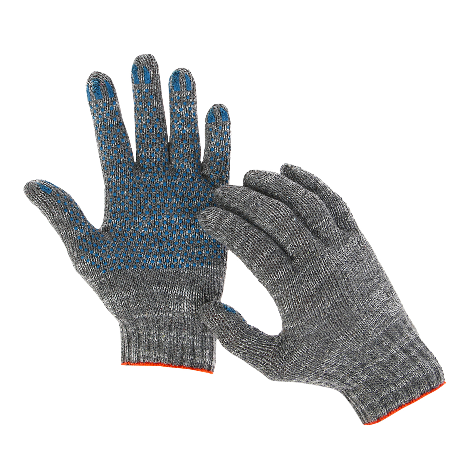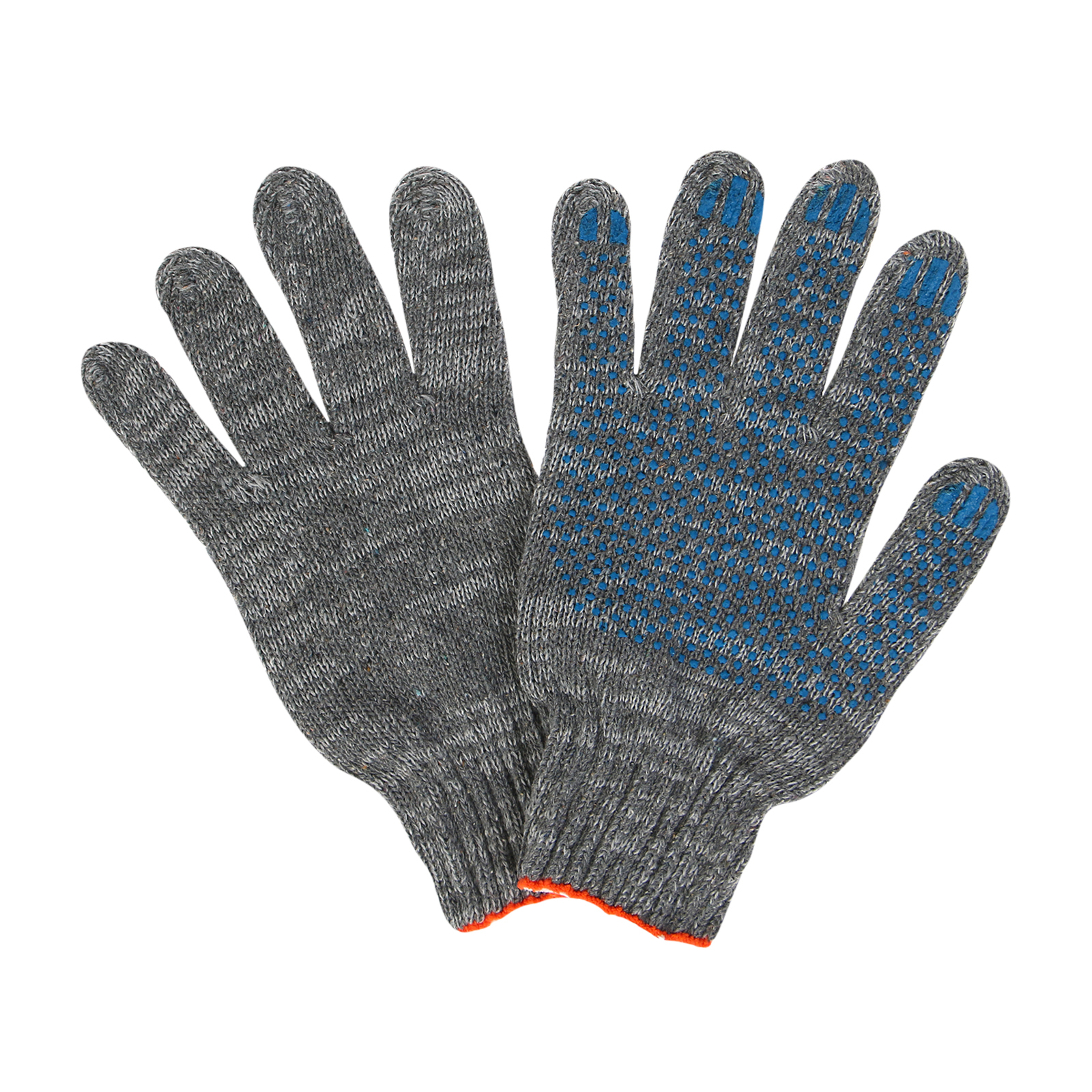 Перчатки рабочие, х/б, вязка 7 класс, 5 нитей, размер 9, с пвх точками, серые, Greengo