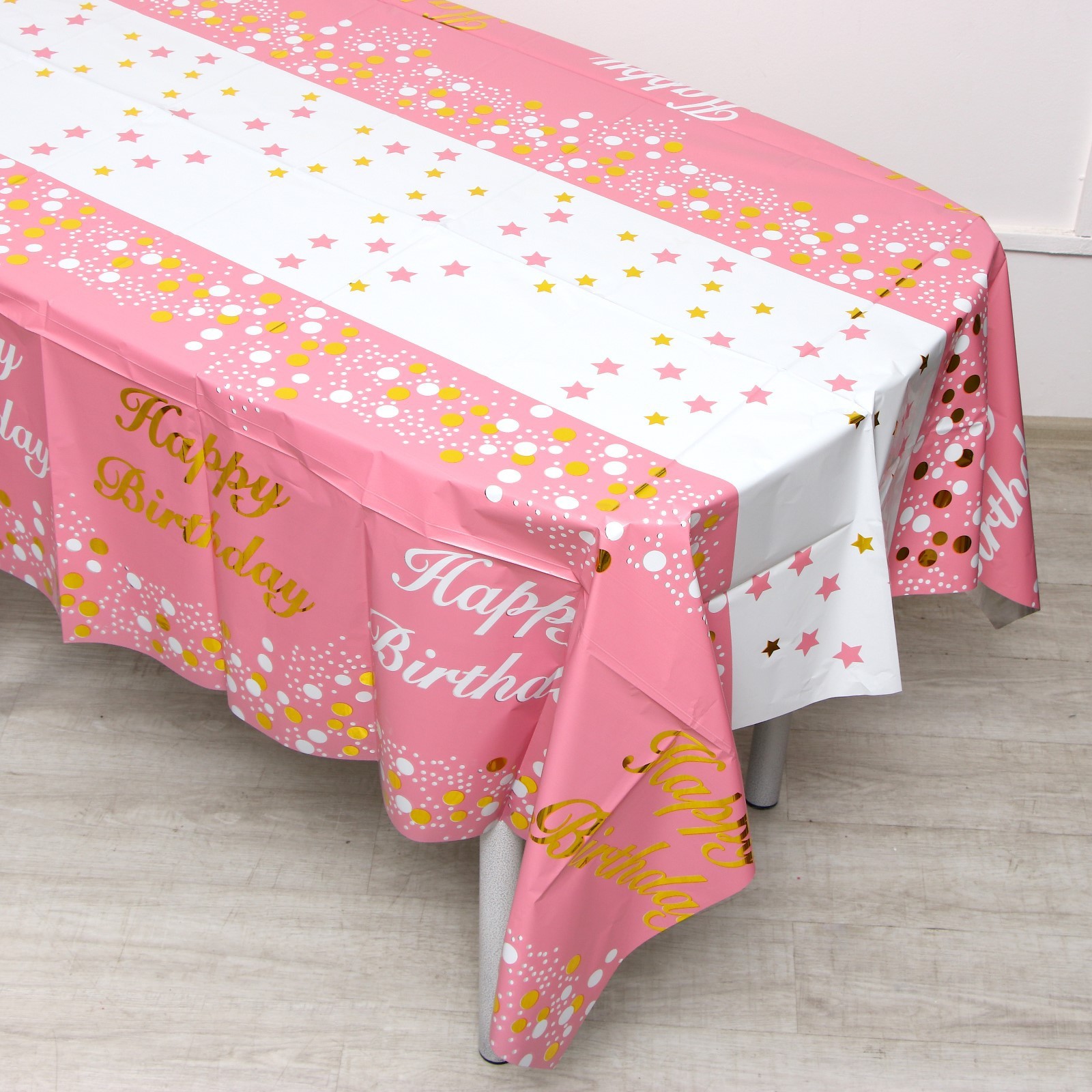 Скатерть «с днём рождения», 137 X 183 см, цвет розовый