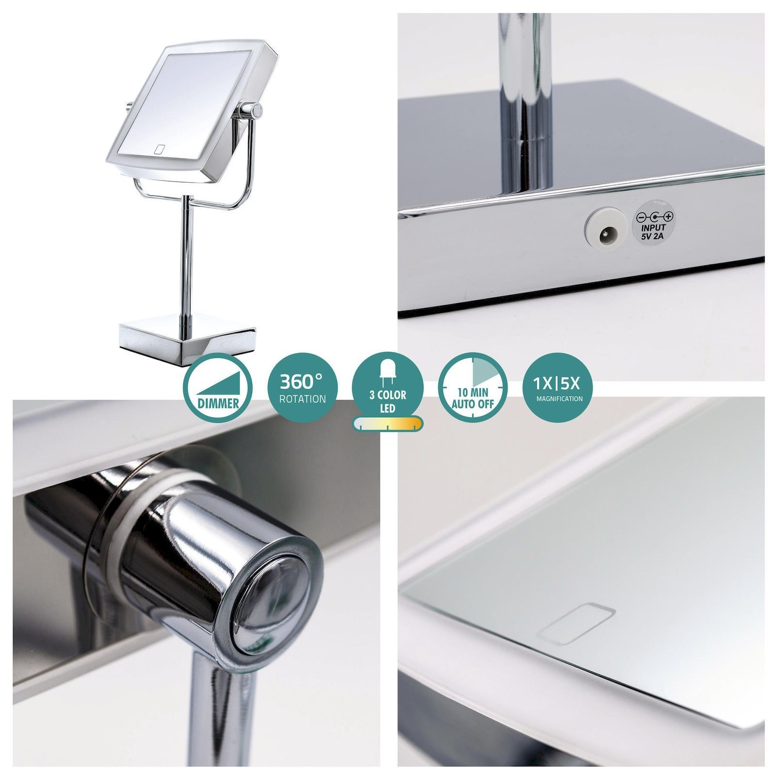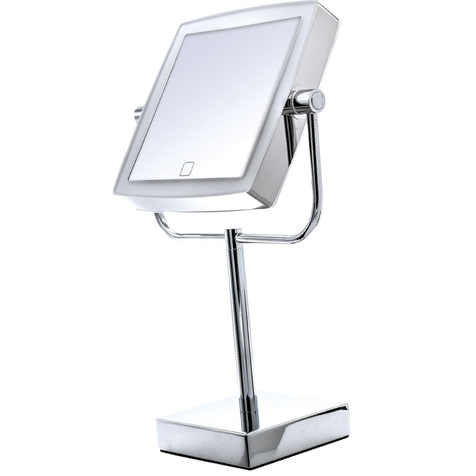 Зеркало косметическое настольное snow white 1х/5х-увеличение, led сенсор, хром. Цвет: Хромированный Форма: Квадратная Ширина, мм: 200 Высота, мм: 430 Материал корпуса: Металл Вид зеркала: Настольное Особенность зеркала: С увеличением Особенность зеркала: С подсветкой  развернуть описание ▼