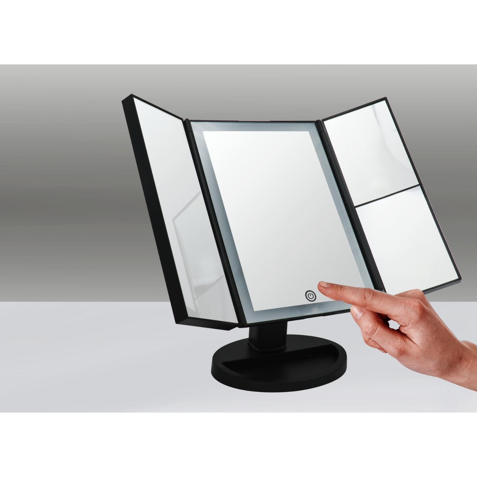 Зеркало косметическое настольное Vivian M 1х/2х/5х-увеличение, Led сенсор, Usb, чёрное