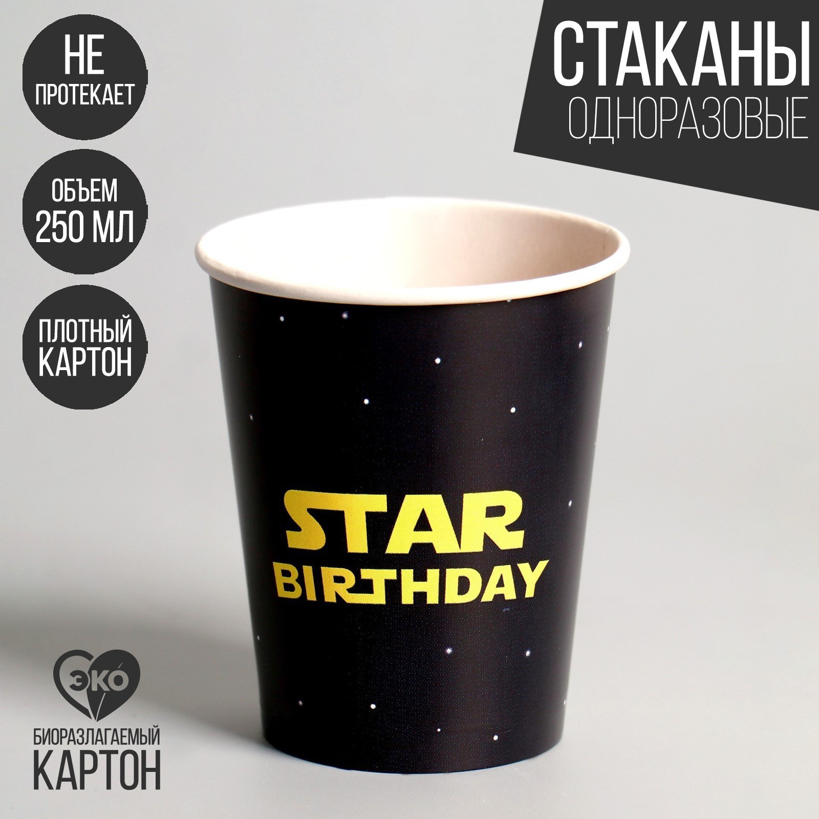 Стакан одноразовый бумажный Star Birthday, набор 6 шт, 250 мл