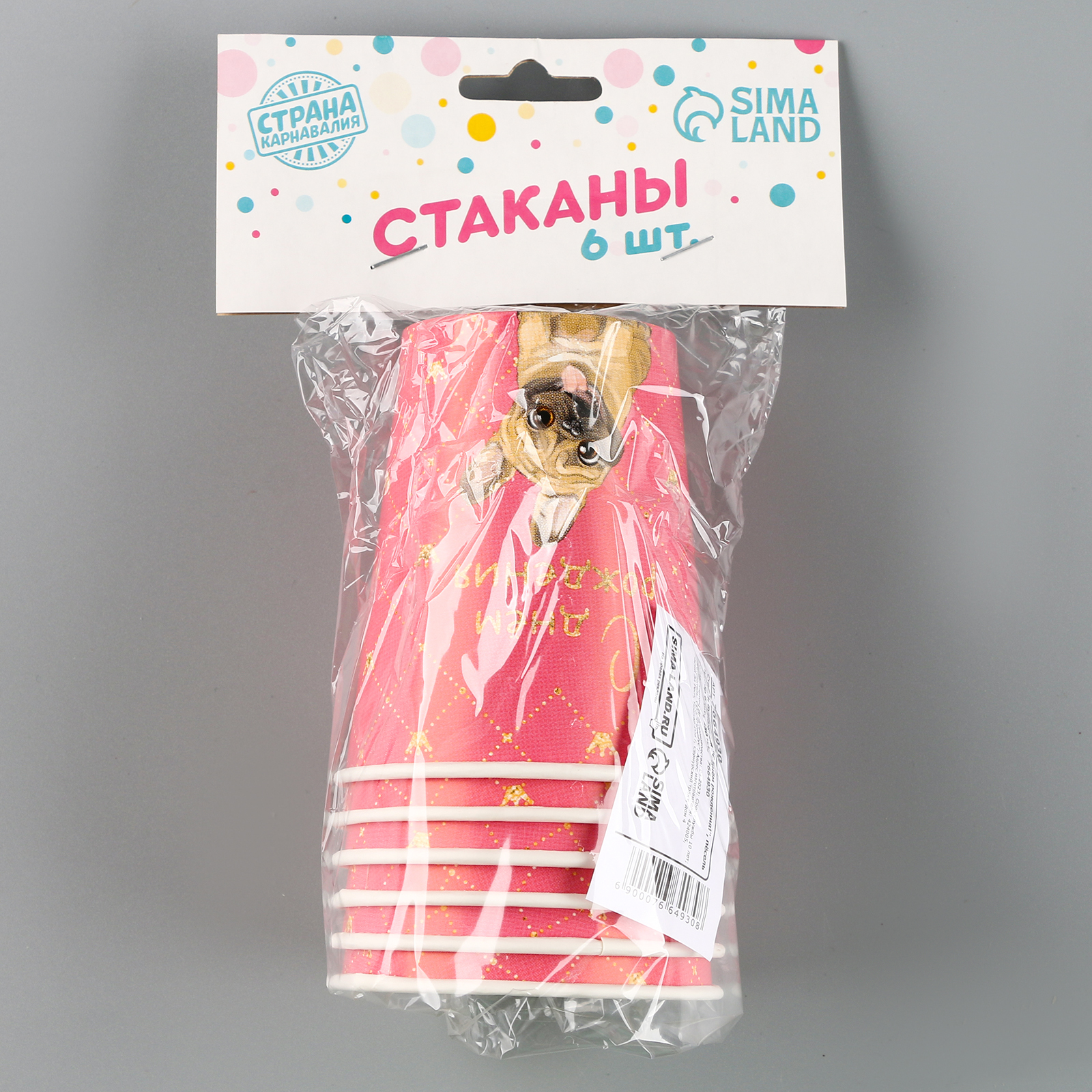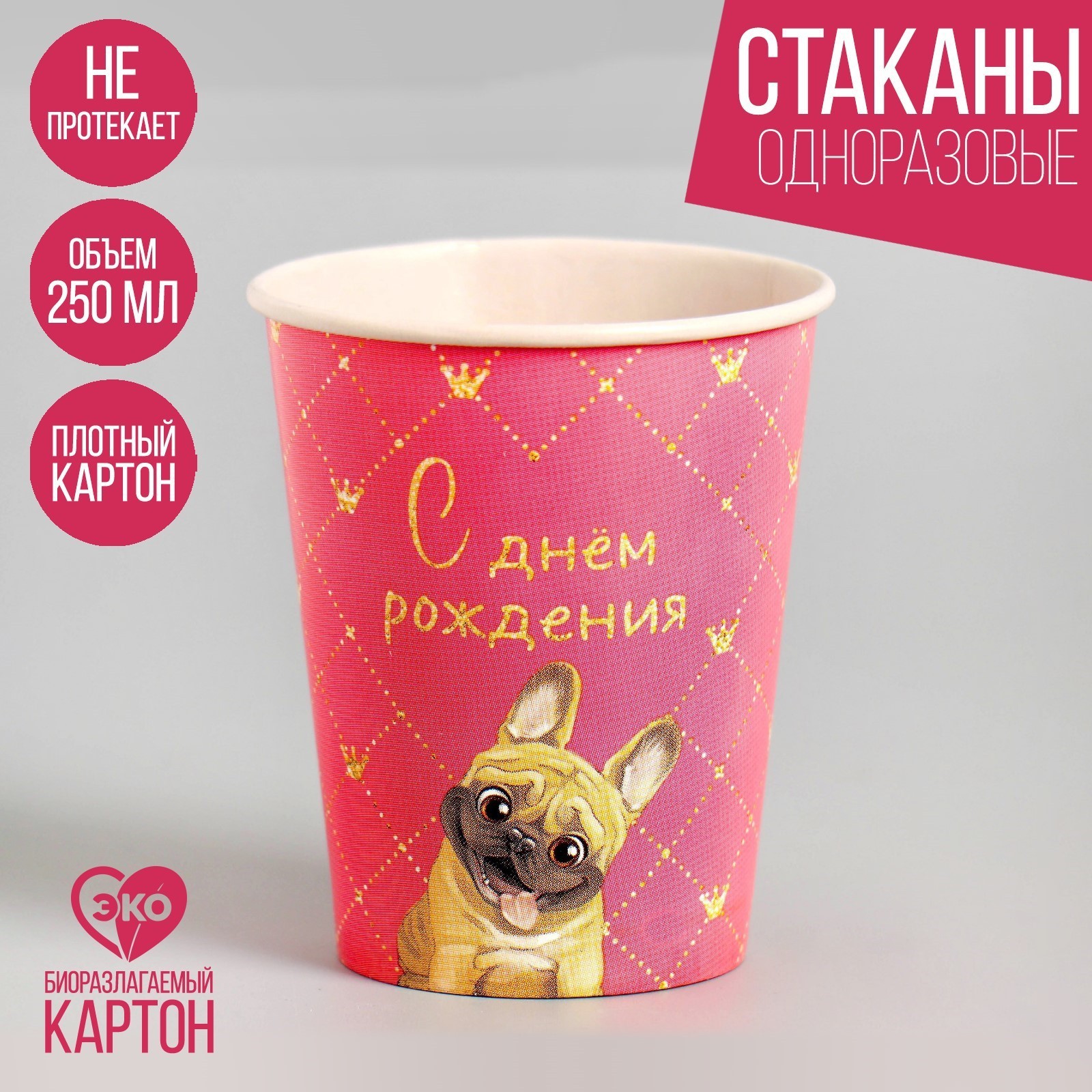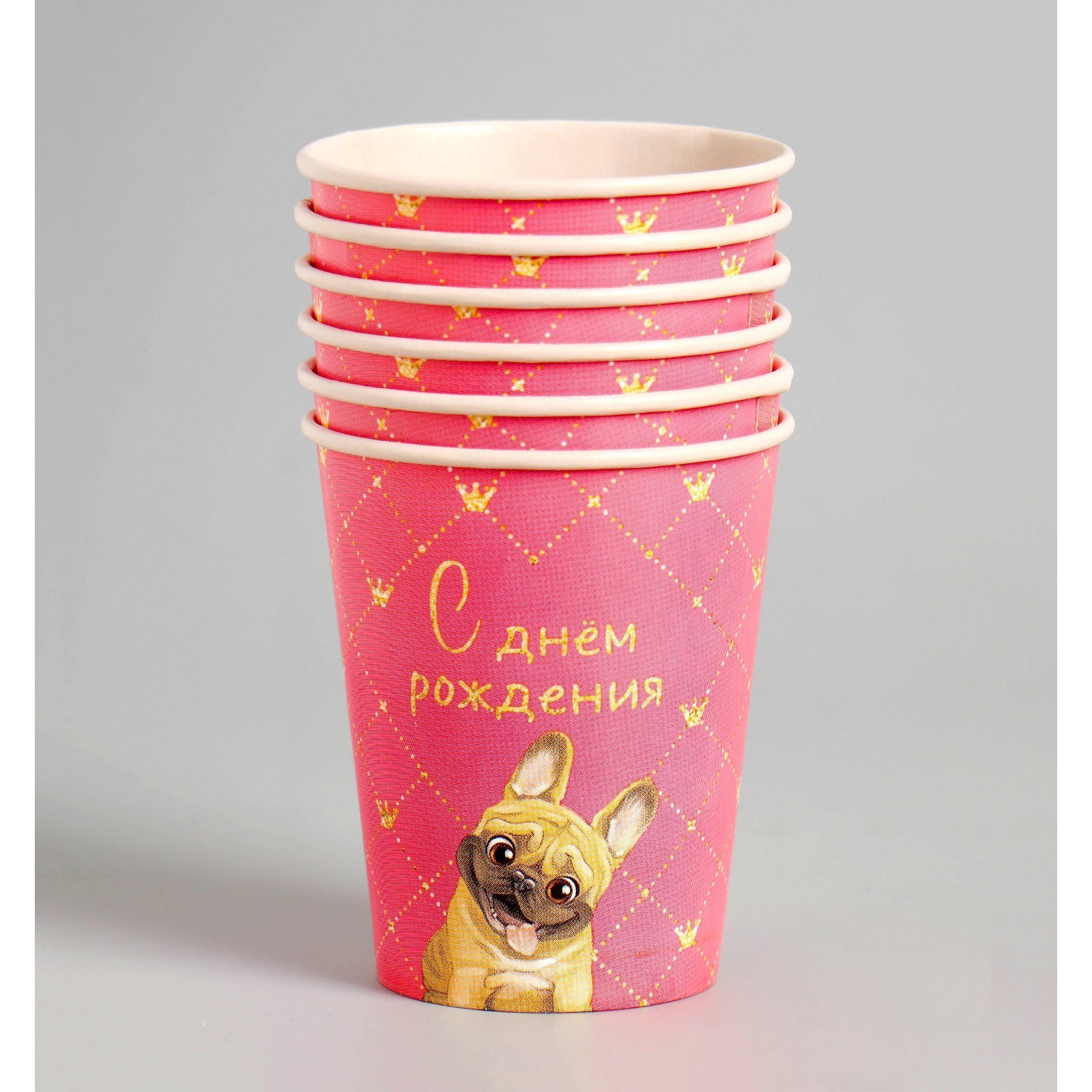 Стакан одноразовый бумажный "с днём рождения" пёсель, набор 6 шт, 250 мл