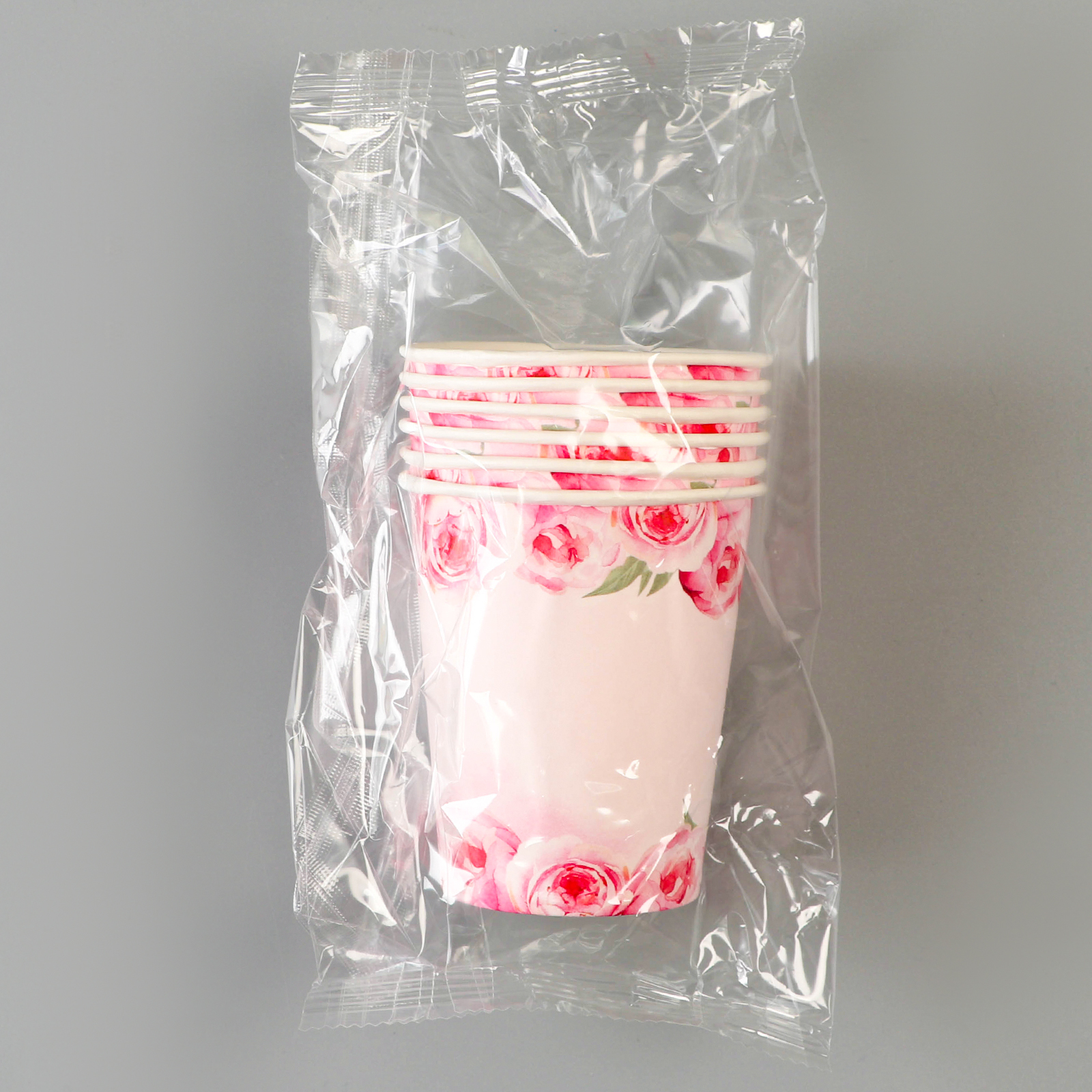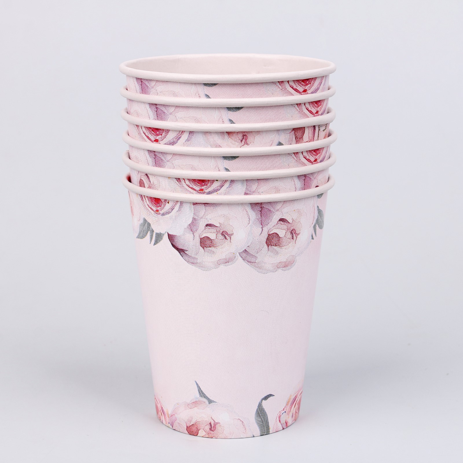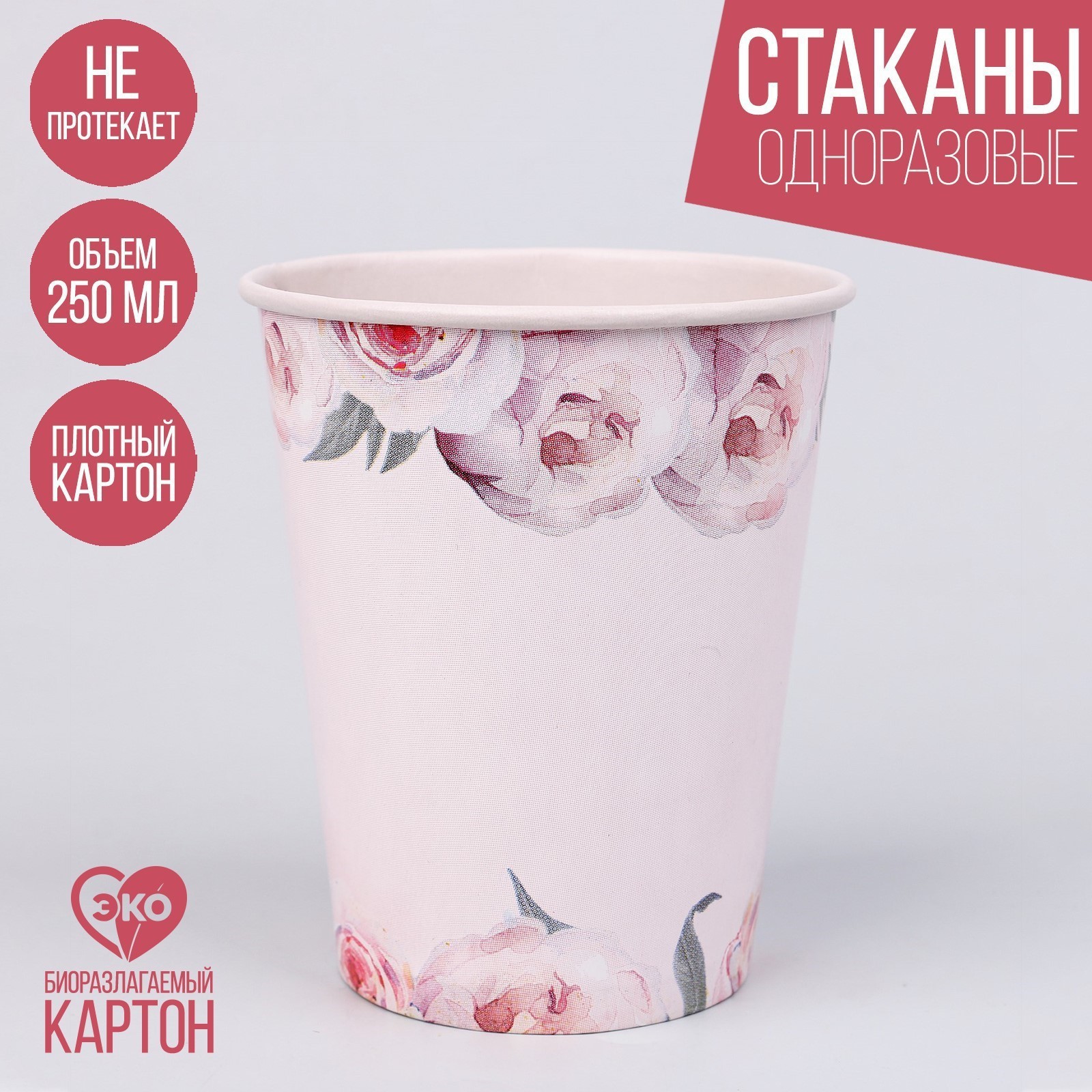 Стакан одноразовый бумажный пионы, набор 6 шт, 250 мл