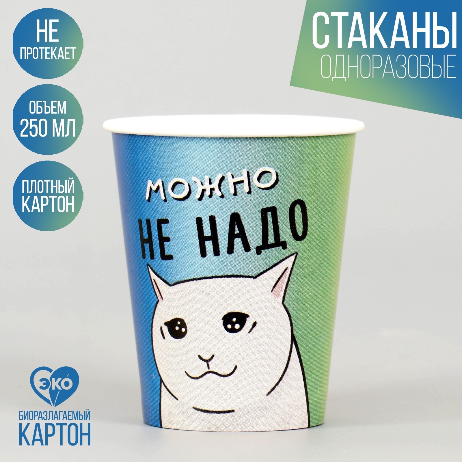Стакан одноразовый бумажный "можно не надо", набор 6 шт, 250 мл