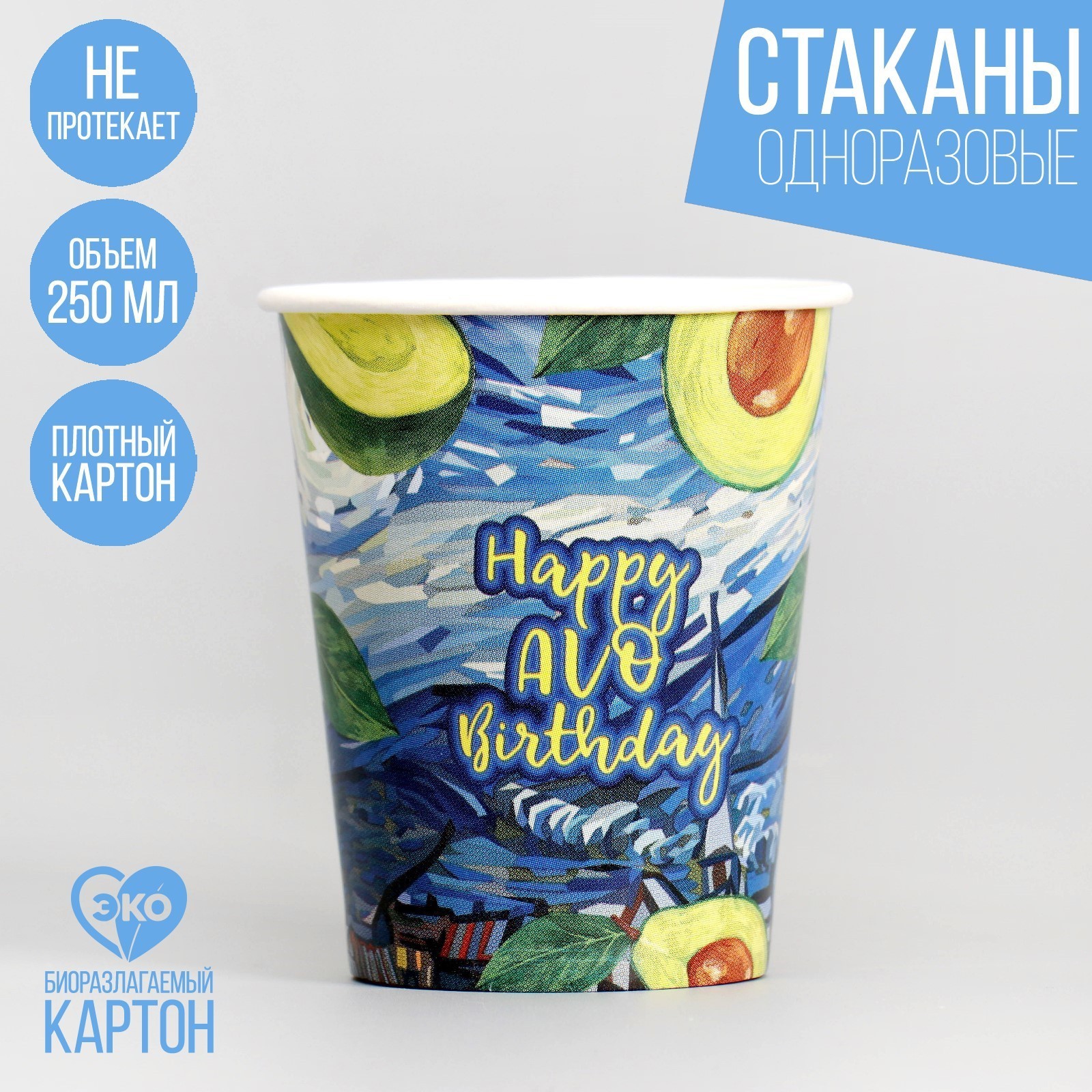 Стакан одноразовый бумажный Happy Avo Birthday, набор 6 шт, 250 мл
