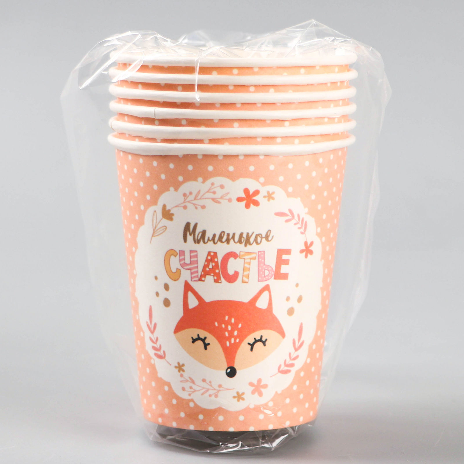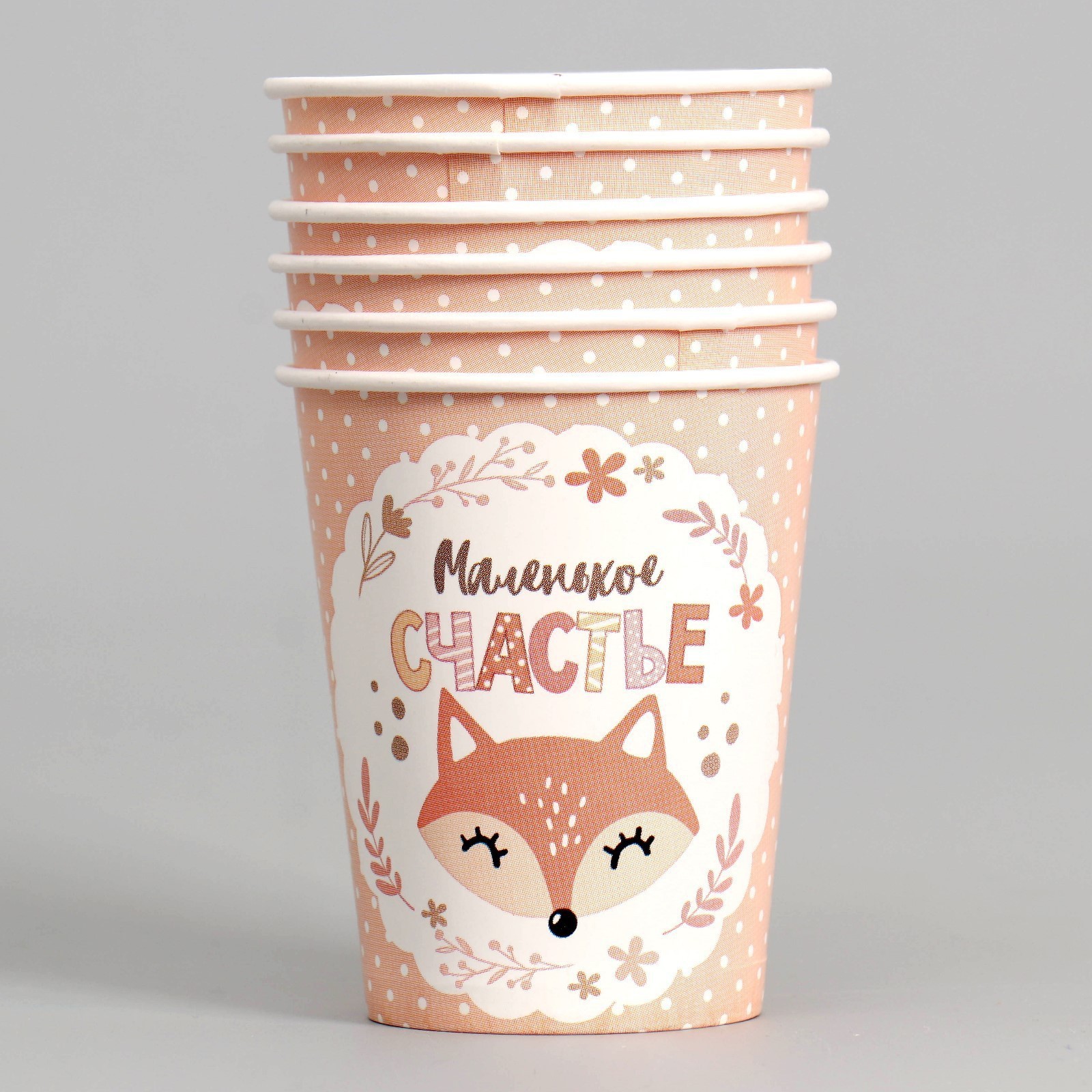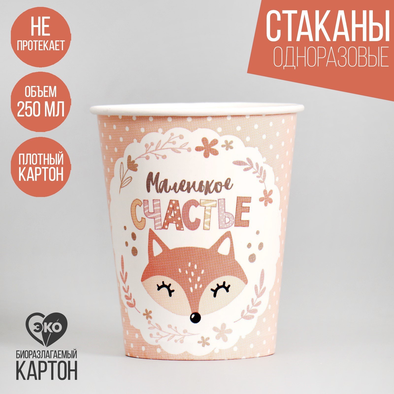 Стакан одноразовый бумажный маленькое счастье, набор 6 шт, 250 мл