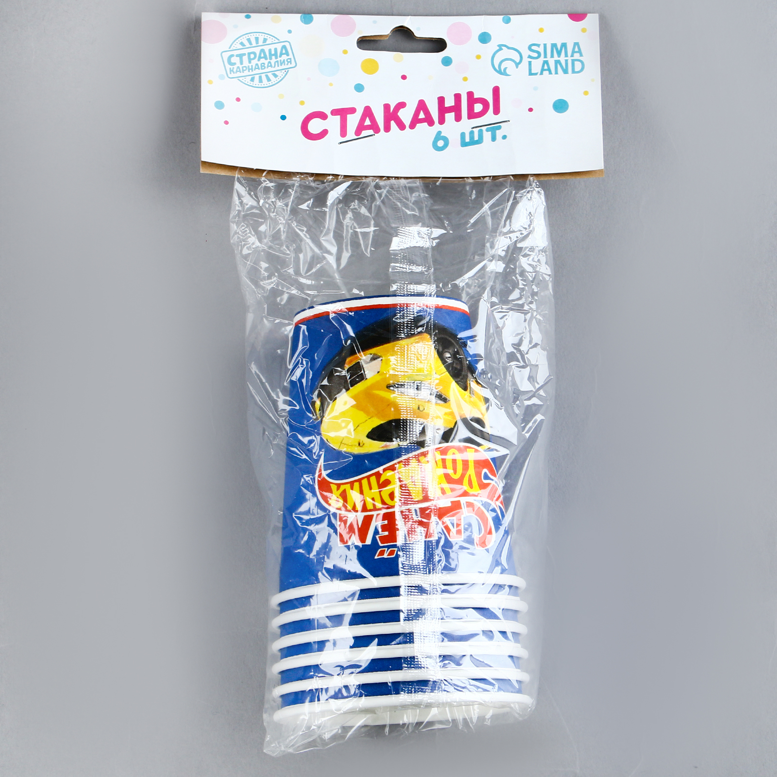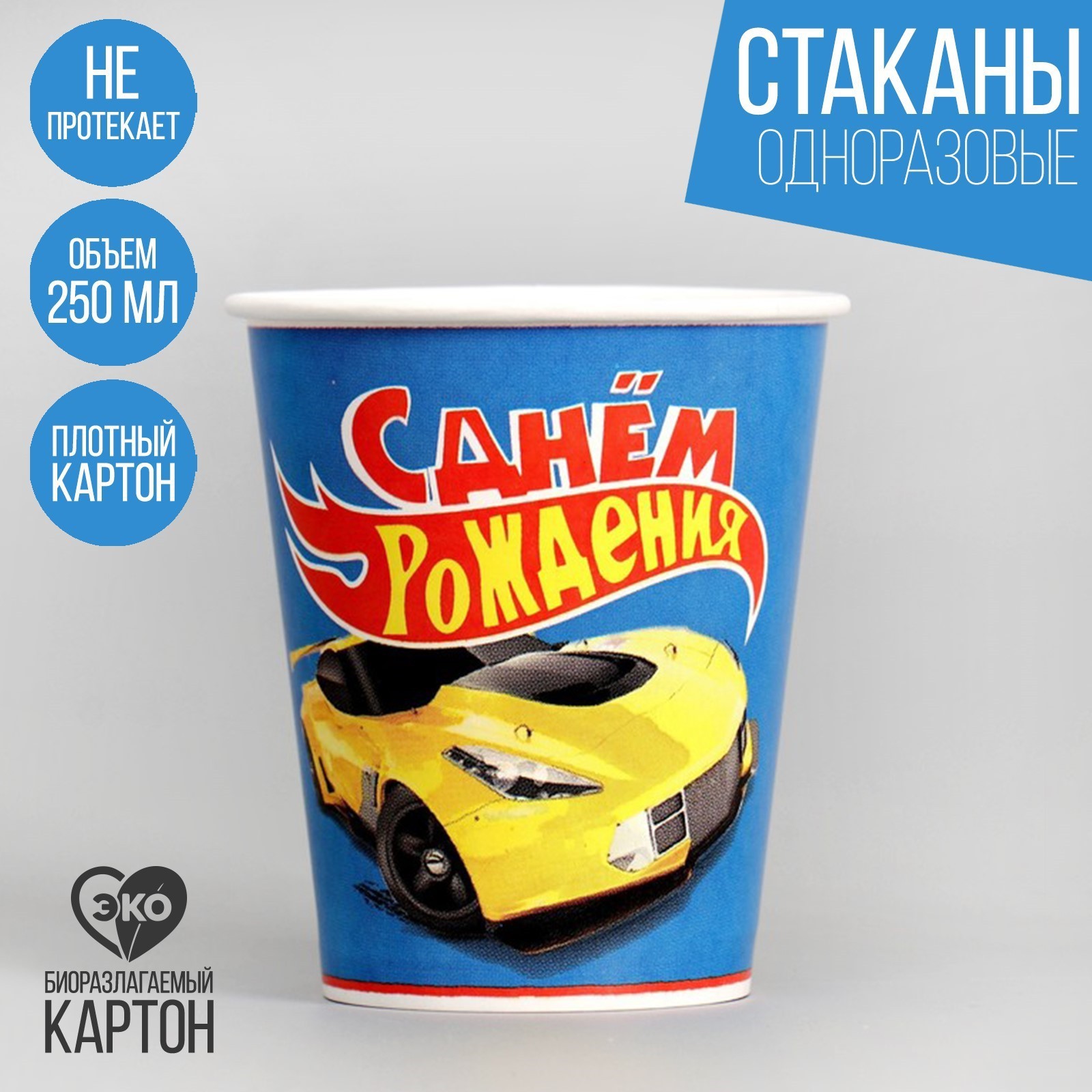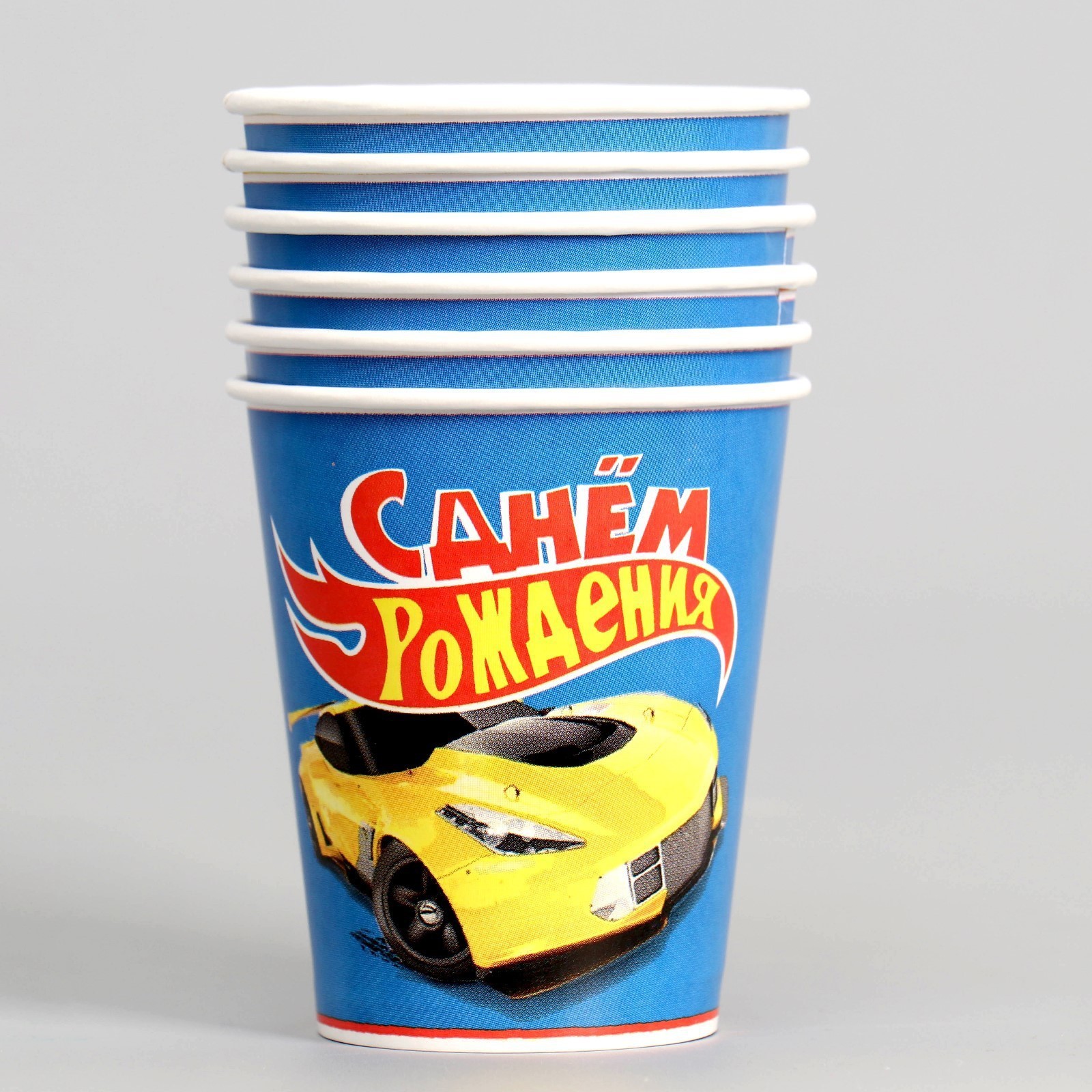 Стакан одноразовый бумажный "с днём рождения" гонщик, набор 6 шт, 250 мл