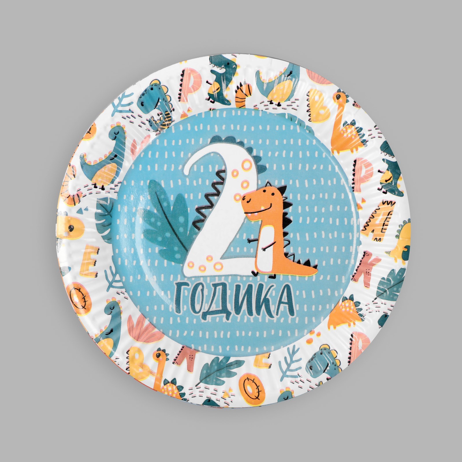 Тарелка одноразовая бумажная "2 годика", набор 6 шт, 18 см