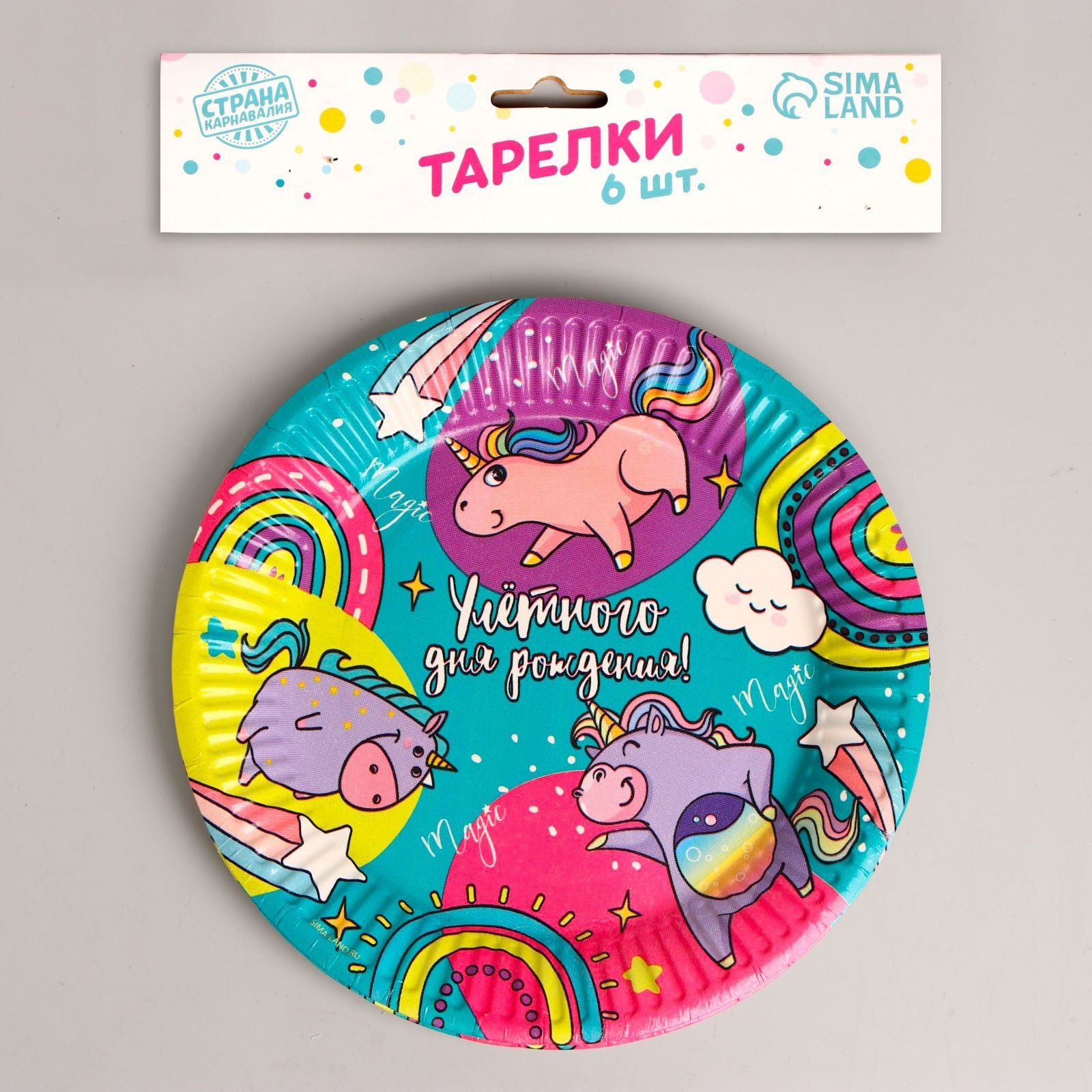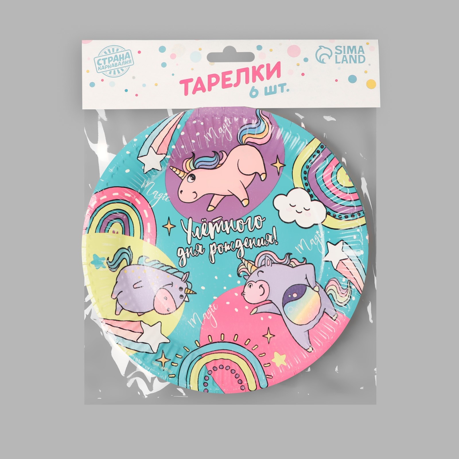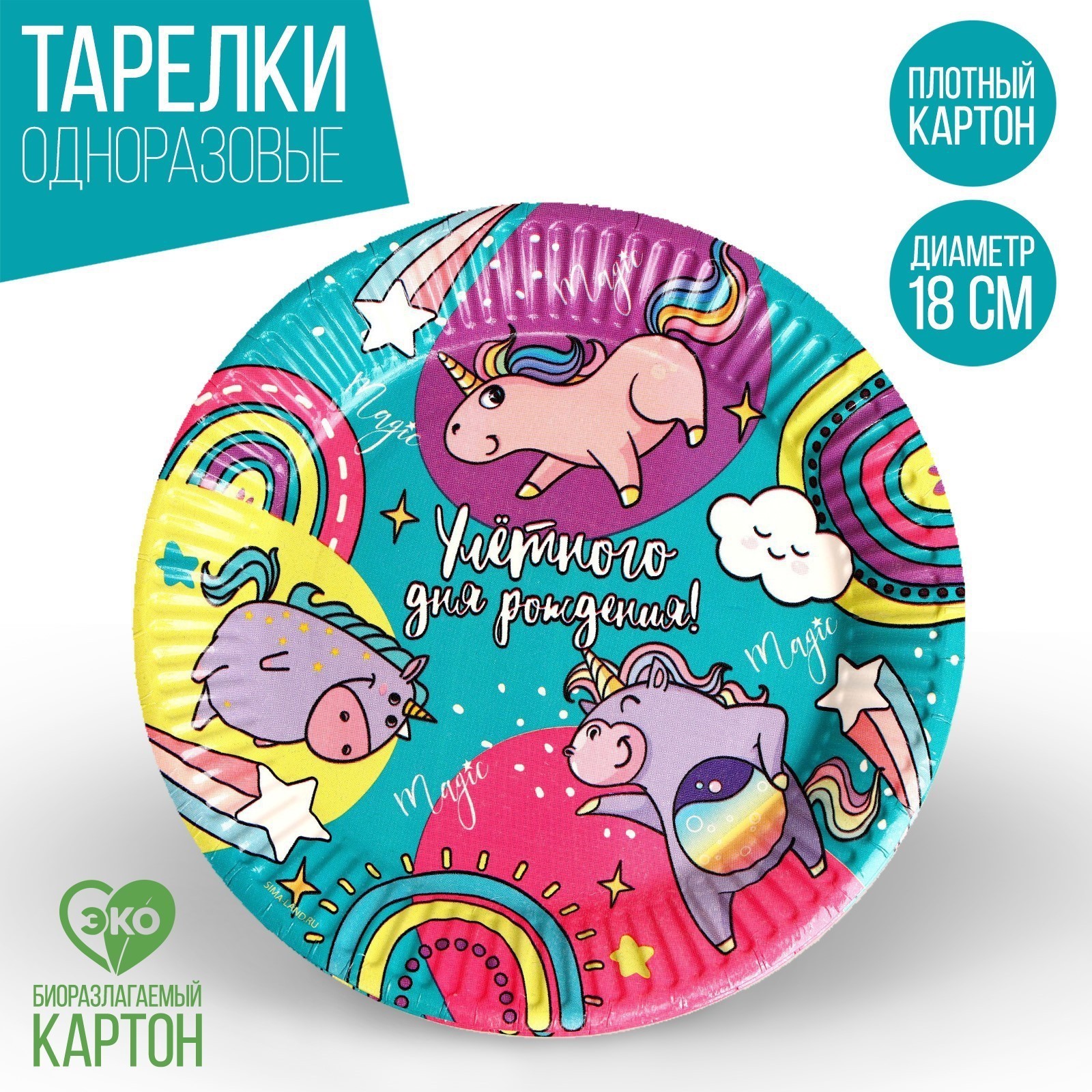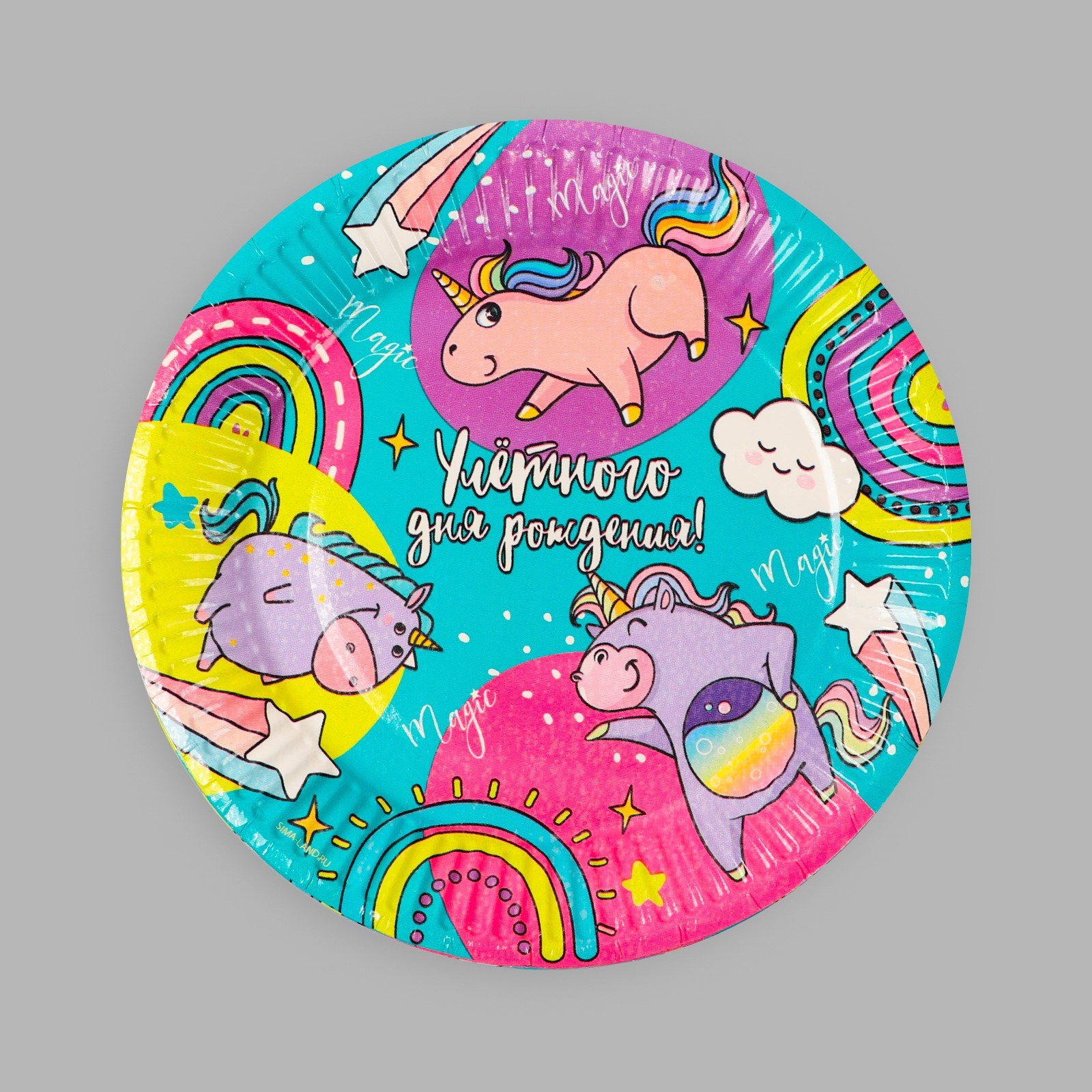Тарелка одноразовая бумажная "улётного дня рождения", набор 6 шт, 18 см