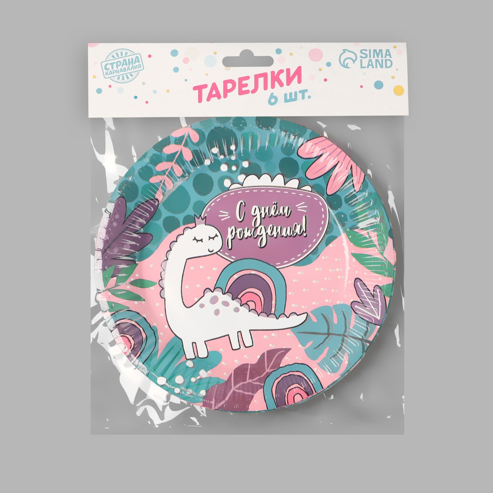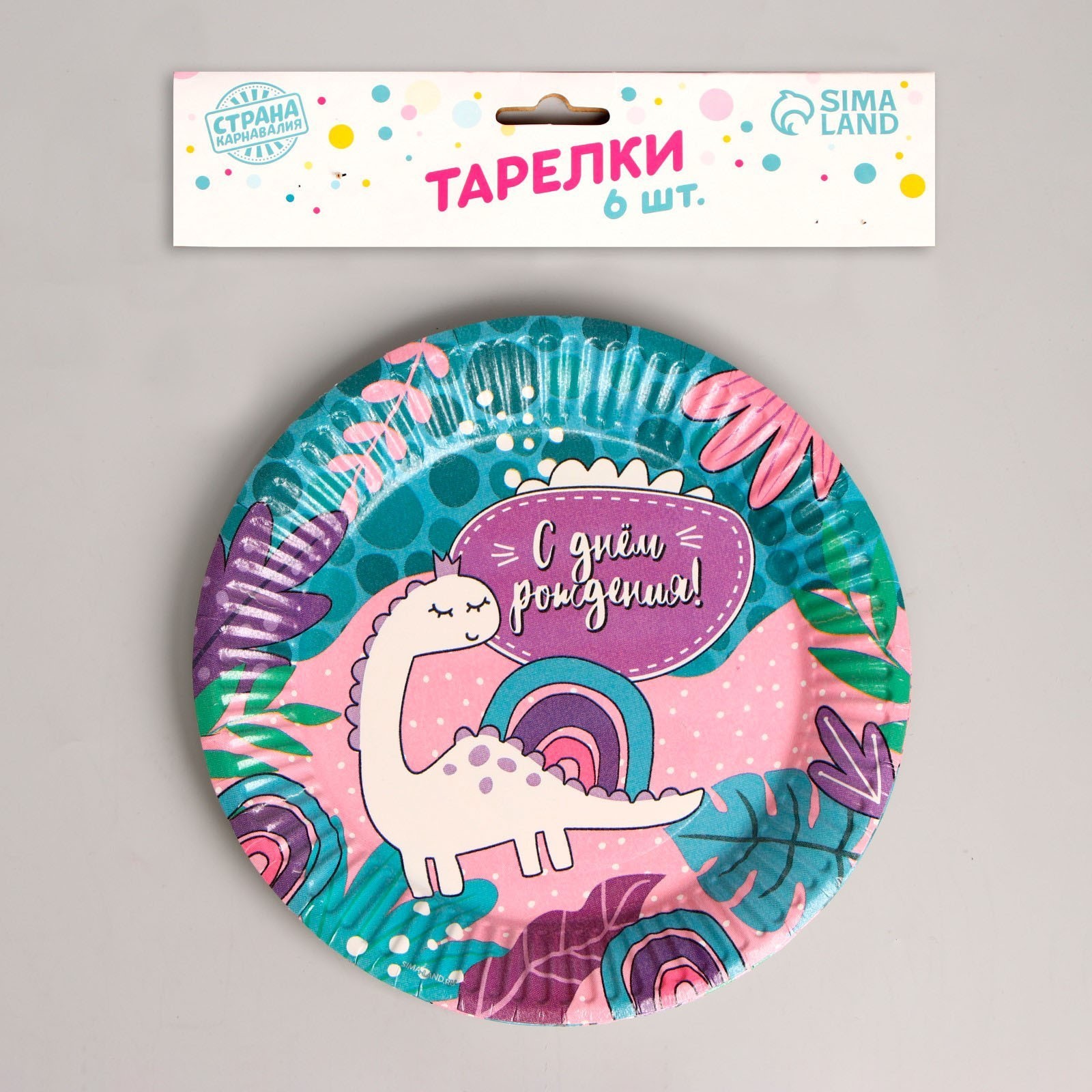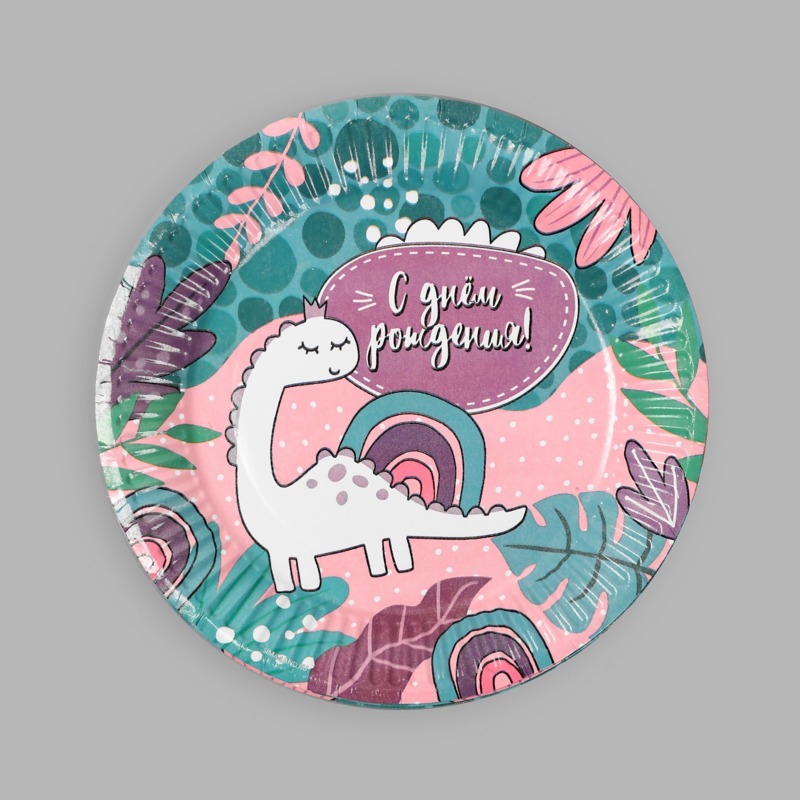 Тарелка одноразовая бумажная "с днём рождения!" динозаврик, набор 6 шт, 18 см