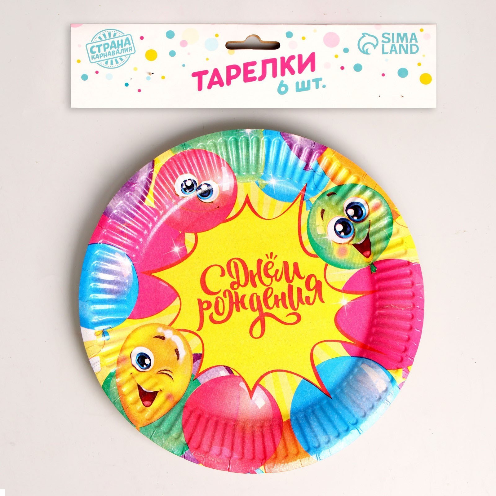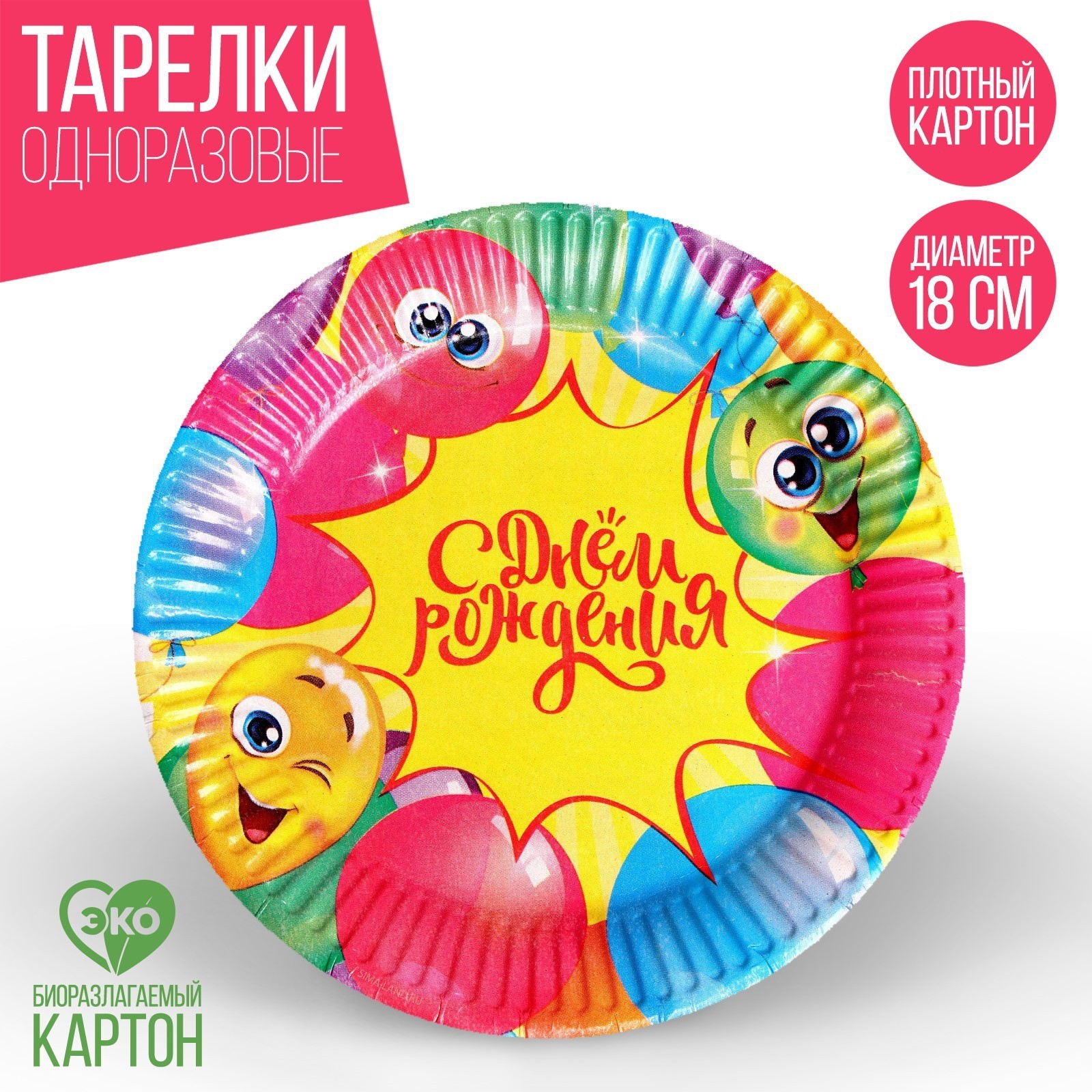 Тарелка одноразовая бумажная "с днём рождения" весёлые шары, набор 6 шт, 18 см