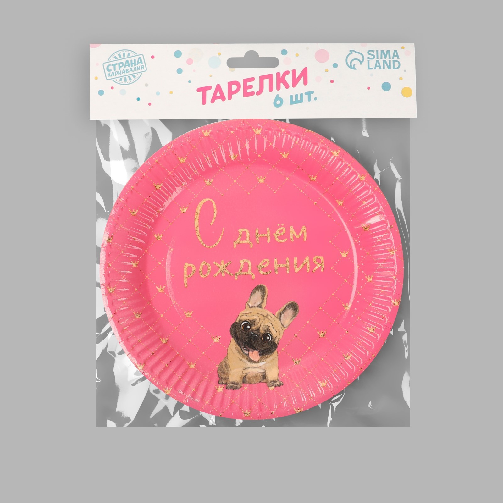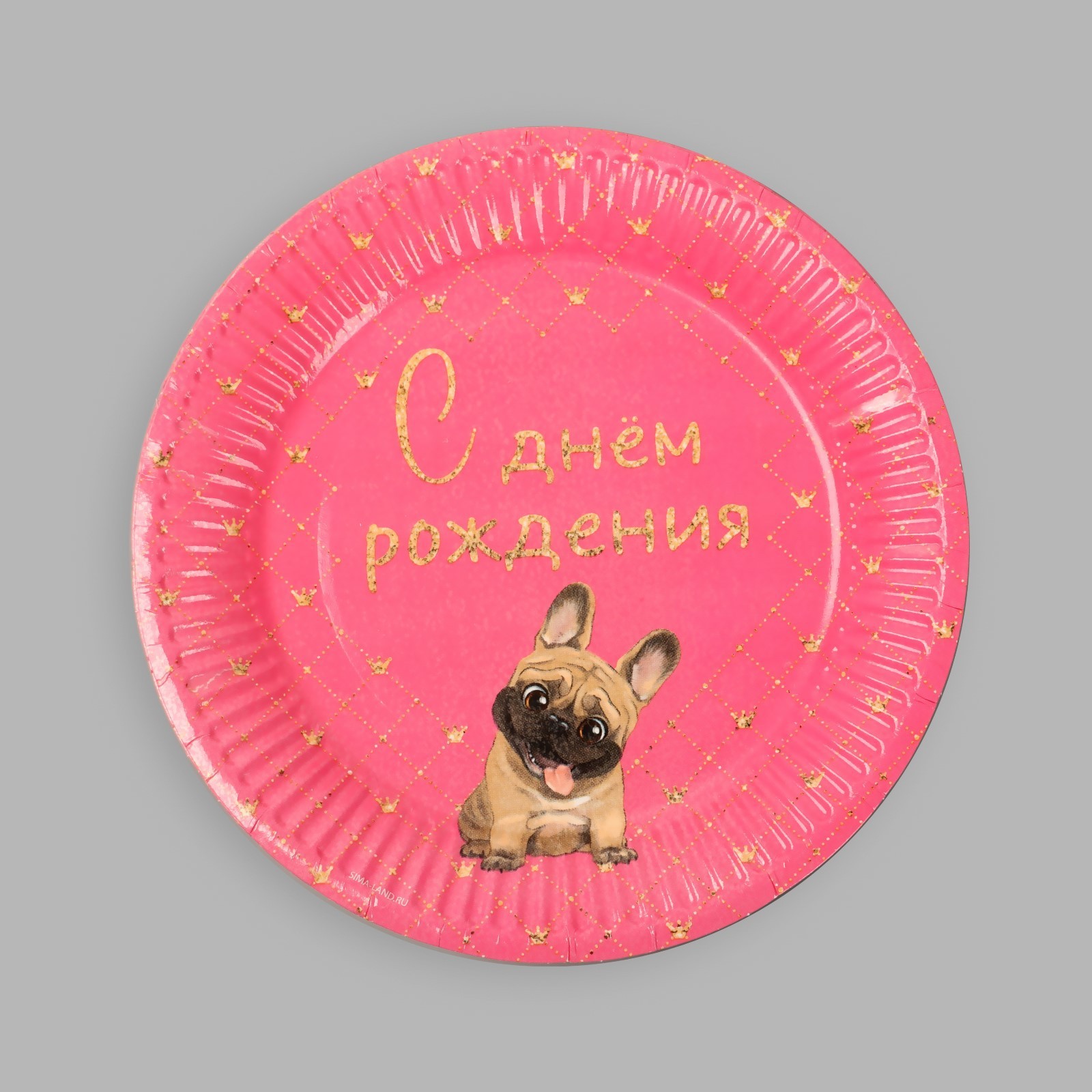 Тарелка одноразовая бумажная "с днём рождения" пёсель, набор 6 шт, 18 см