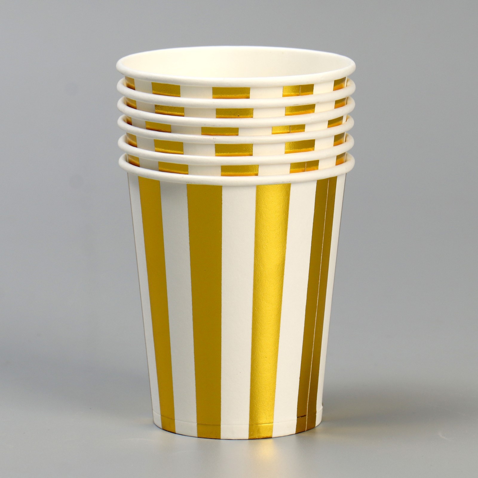 Стакан бумажный «полоска», набор, 6 шт., цвет золото