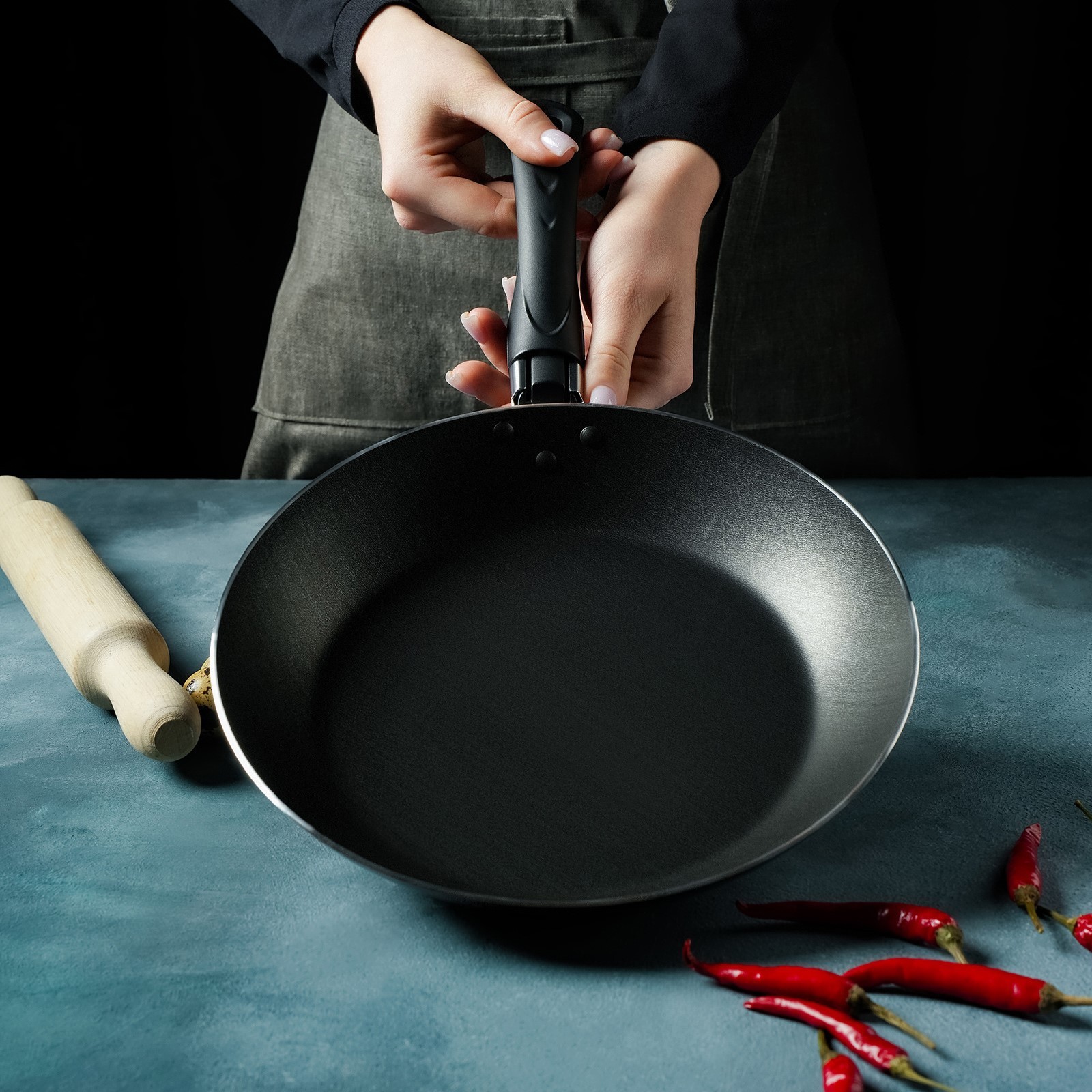 Сковорода доляна Promo, D=26 см, пластиковая ручка, антипригарное покрытие, цвет бордовый