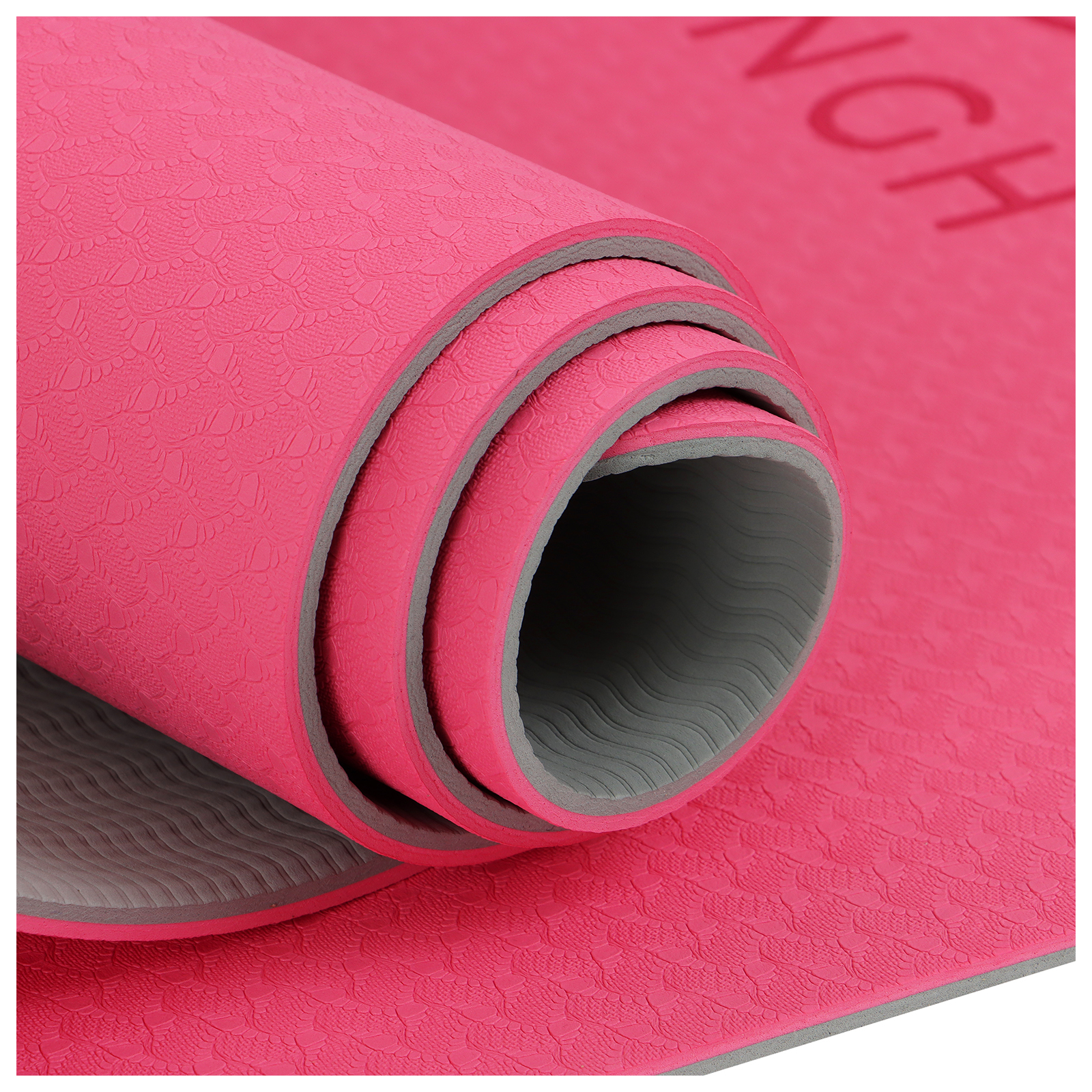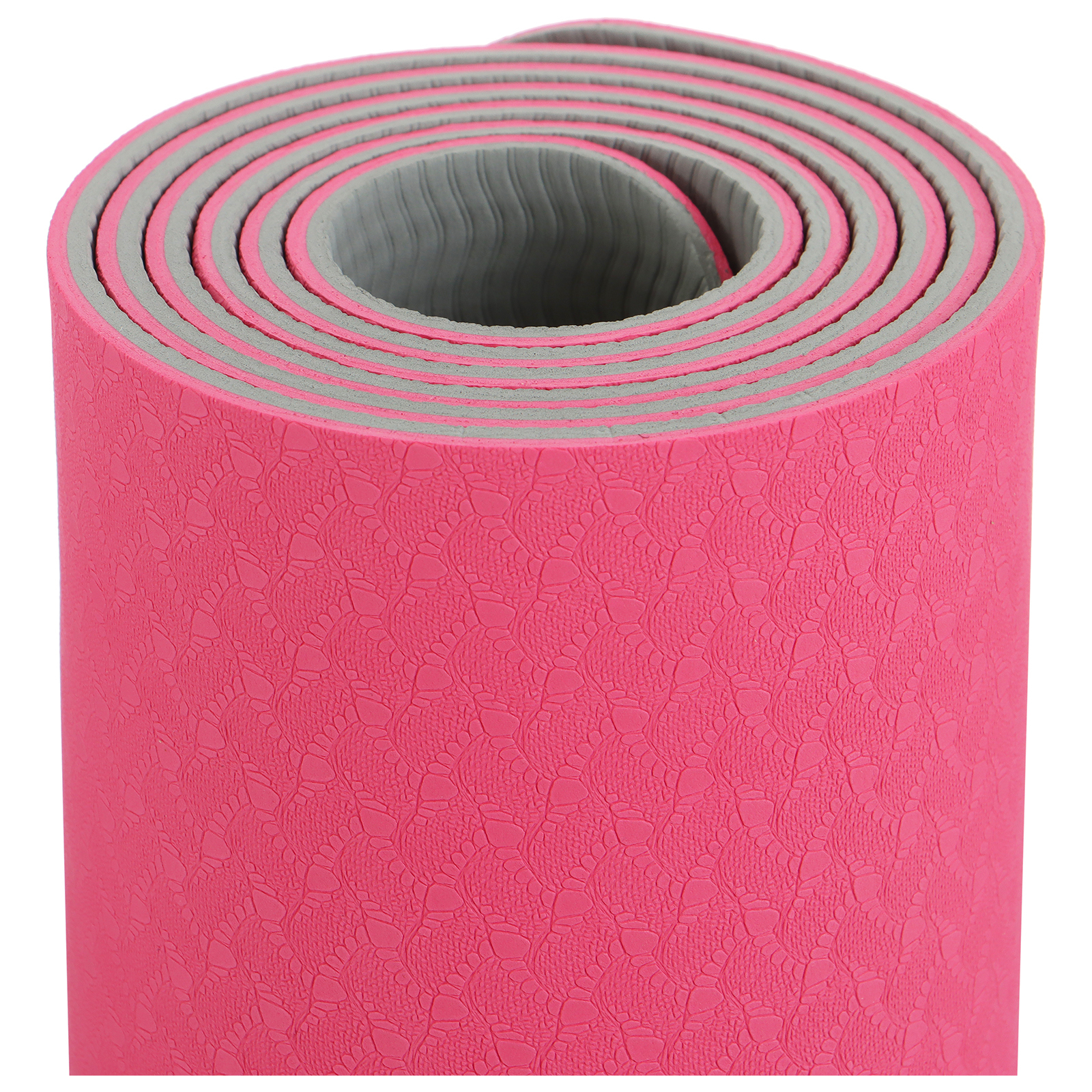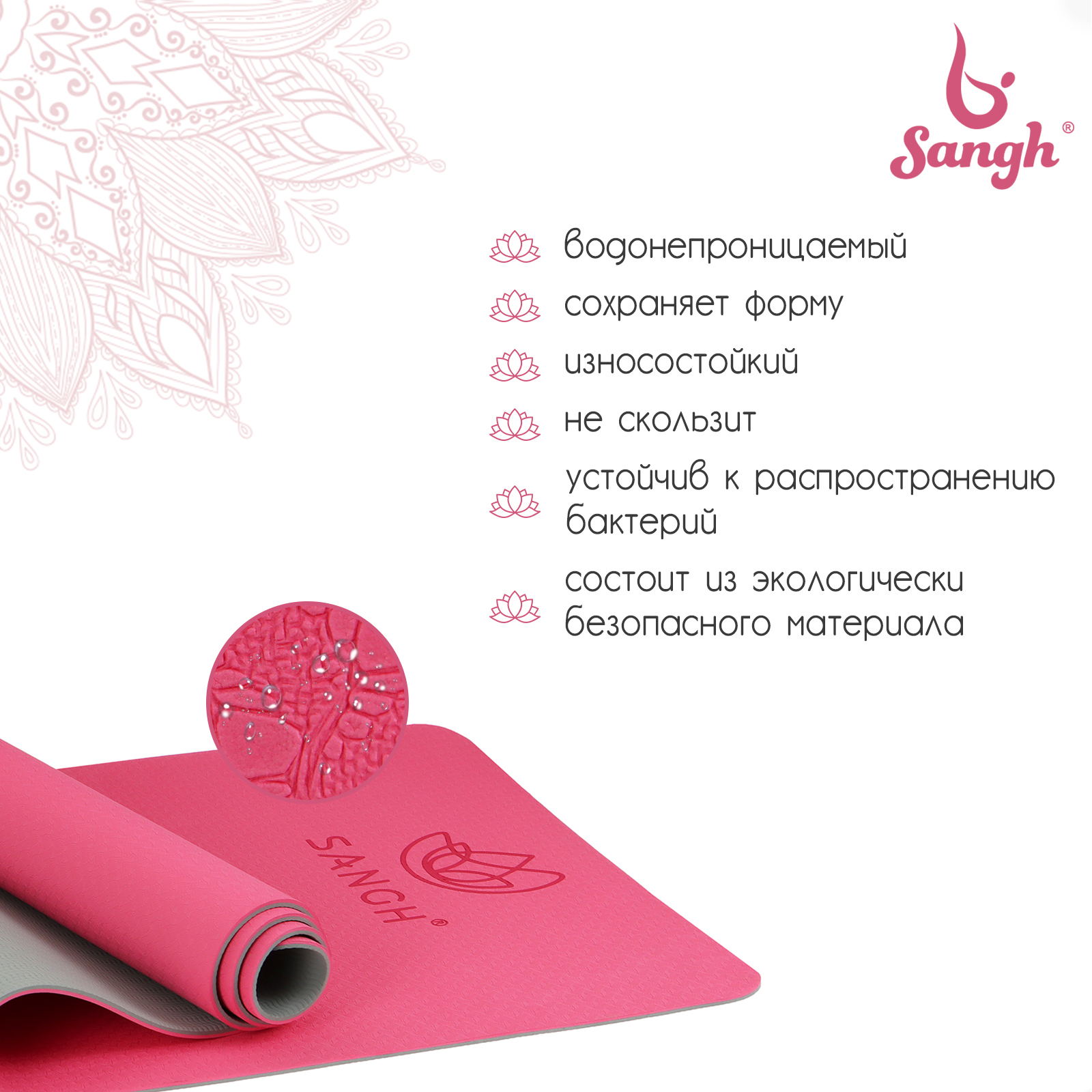 Коврик для йоги sangh, 183х61х0,6 см, цвет розовый/серый. Коврик подходит для занятий йогой и фитнесом дома и в спортивных залах. Помогает в выполнении асан или других упражнений. Смягчает упор тела на твёрдую поверхность. Сохраняет форму после выполнения упражнений. Особенность коврика из термопластичной резины состоит в том, что он обладает антискользящими свойствами, сохраняет форму, имеет плотную и упругую структуру. Коврик из термопластичного эластомера эластичный и мягкий, приятный на ощупь, не выгорает на солнце и устойчив к распространению бактерий. Но его нужно беречь от обильной влаги, чтобы не допустить скольжение на гладкой поверхности. Цвет: Розовый Длина, см: 183 Ширина, см: 61 Толщина, мм: 6 Возраст: Взрослый Материал: Термопластичный эластомер Особенности: Эластичный Особенности: Нескользящий Особенности: Водоотталкивающий Вид: Классический  развернуть описание ▼