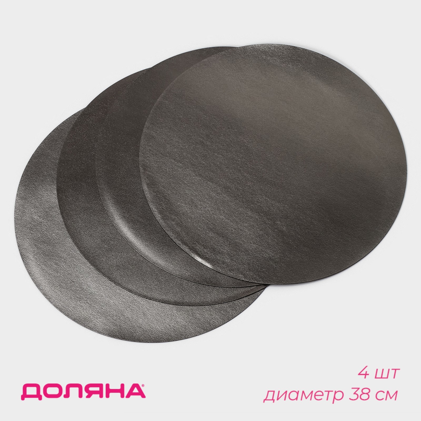 Набор салфеток сервировочных на стол доляна «спутник», D=38 см, 4 шт, двусторонние, цвет металлический/чёрный