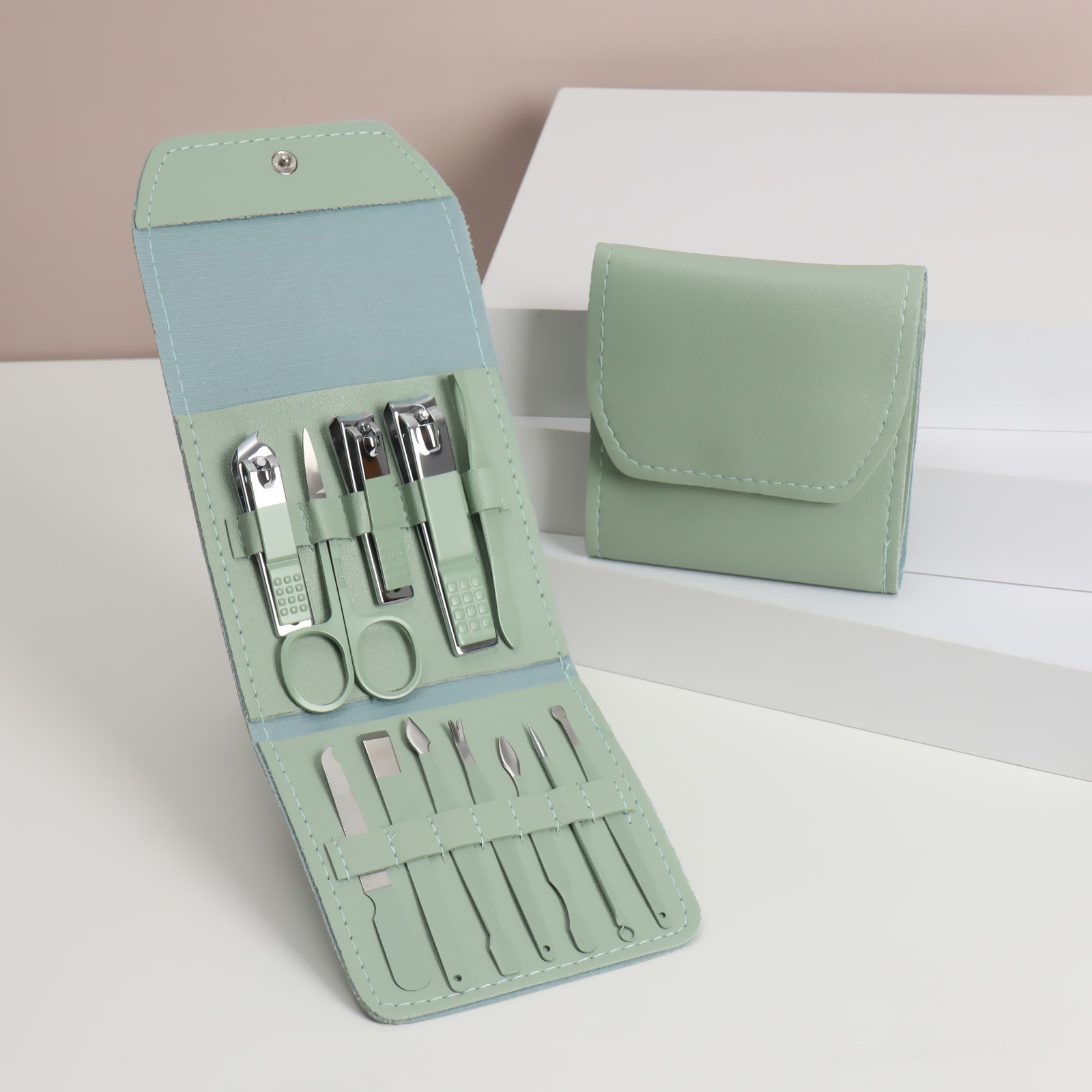 Набор маникюрный, 12 предметов, в футляре, цвет ментоловый