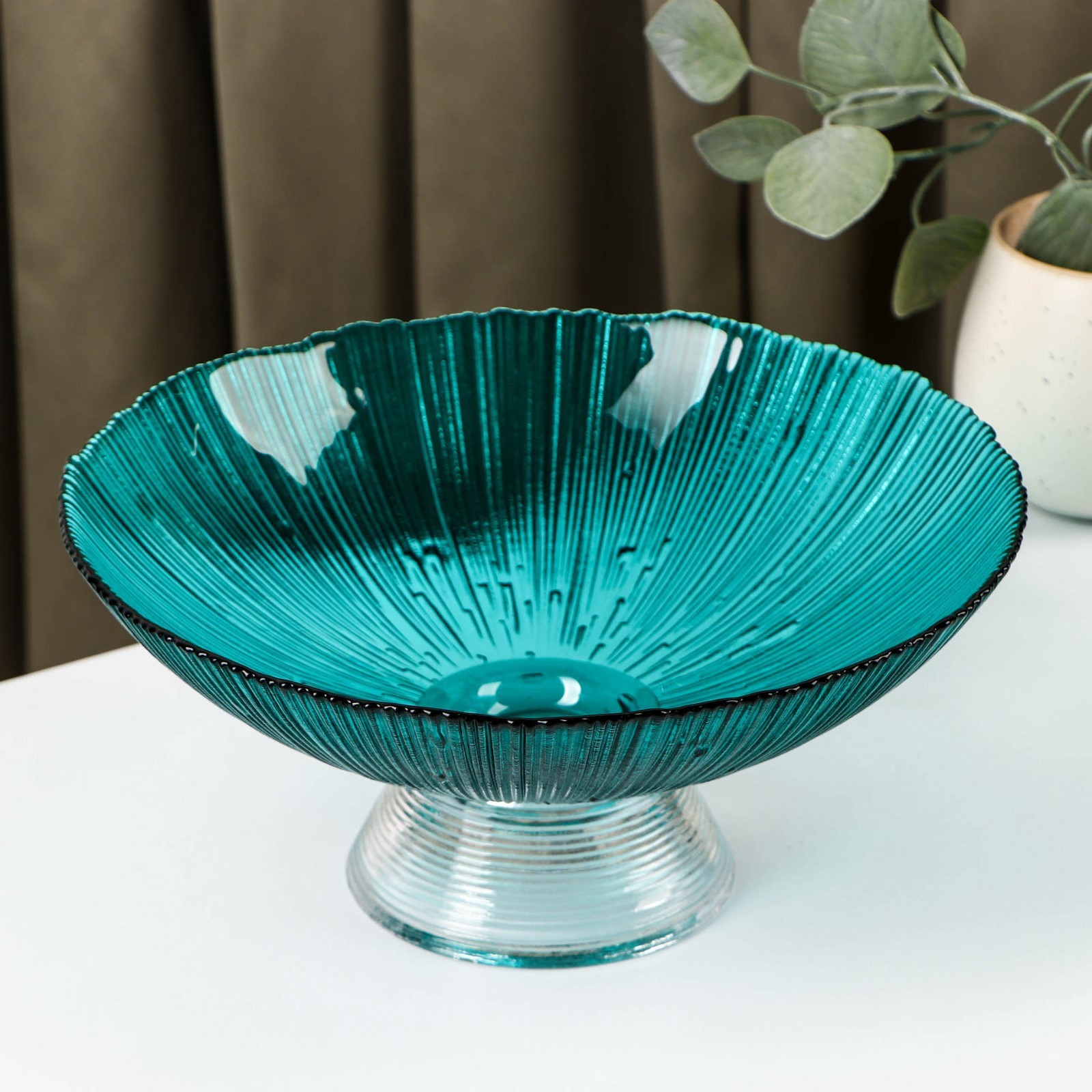 Ваза из стекла для фруктов «фейерверк», 1,4 л, 25x10 см, цвет изумрудный