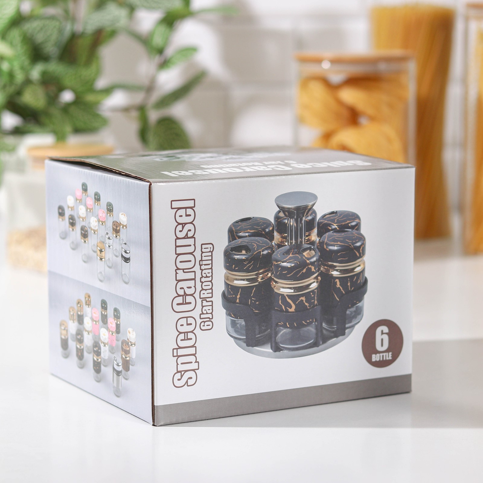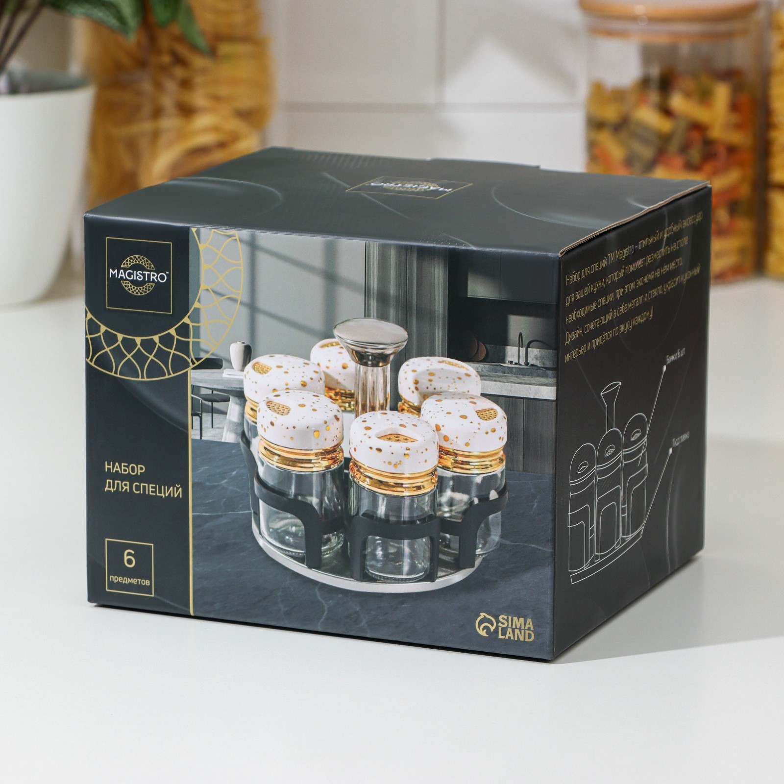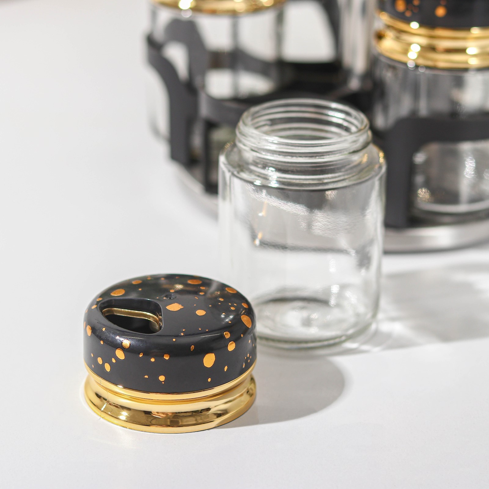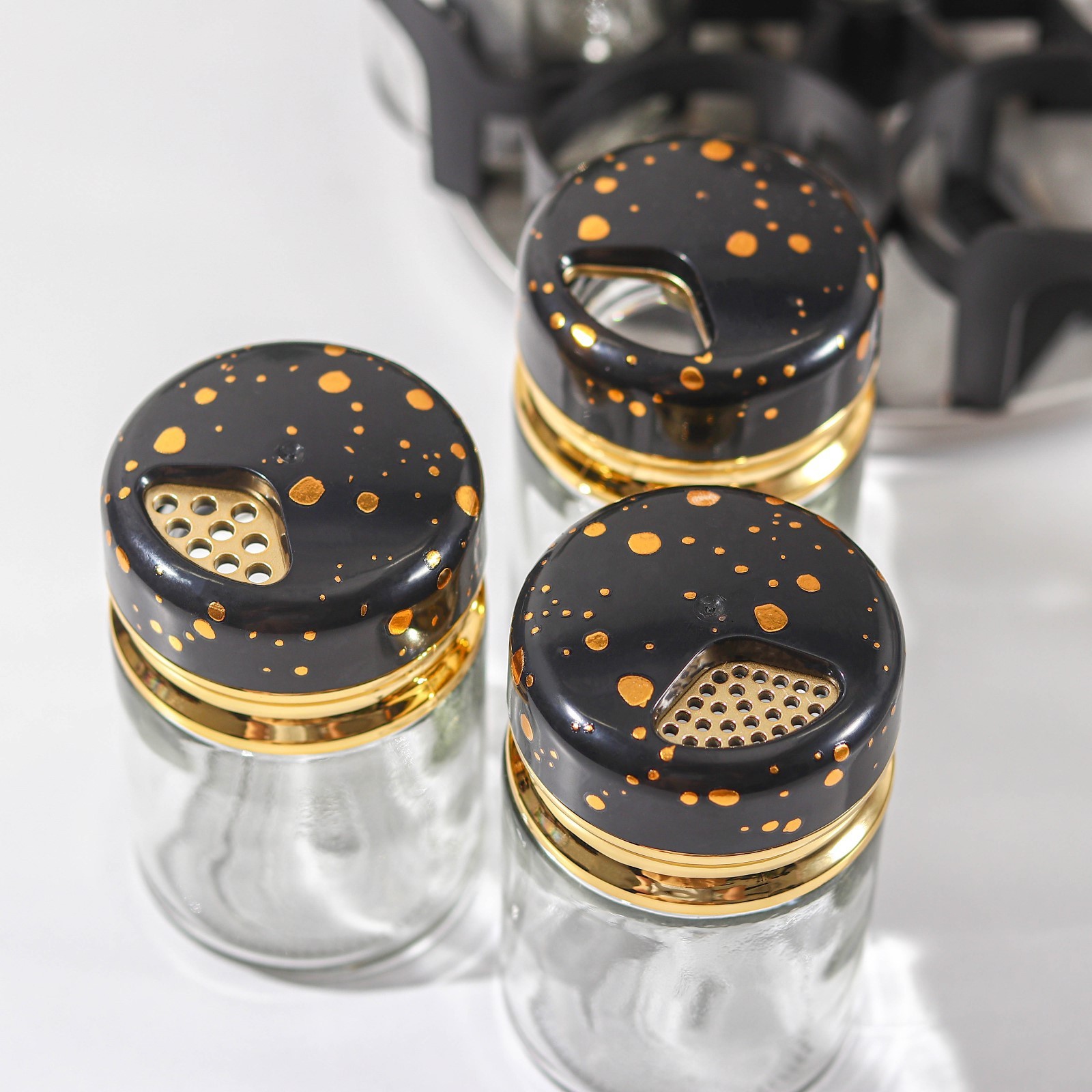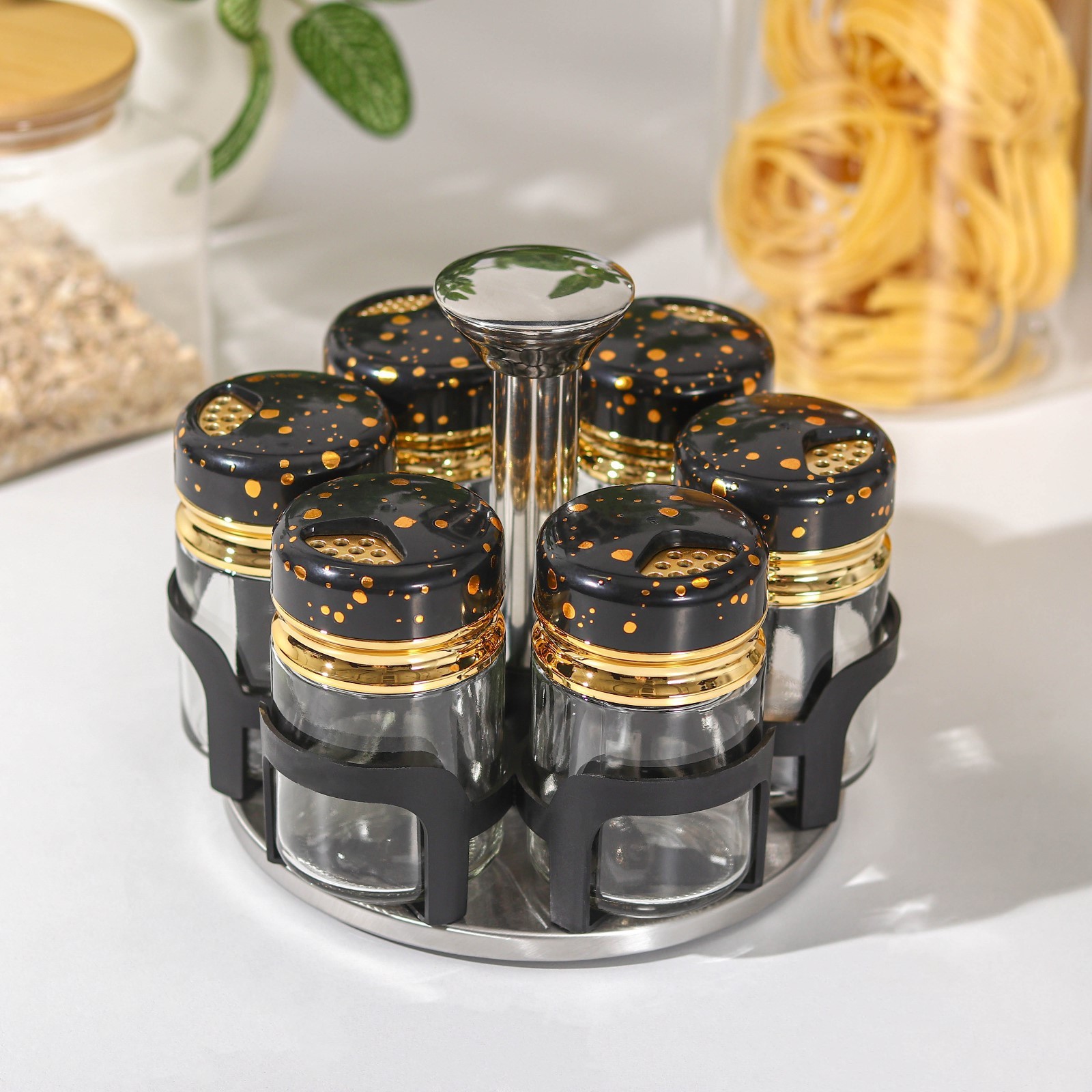 Набор для специй из стекла на подставке Magistro «чёрный мрамор», 6 шт, цвет чёрный