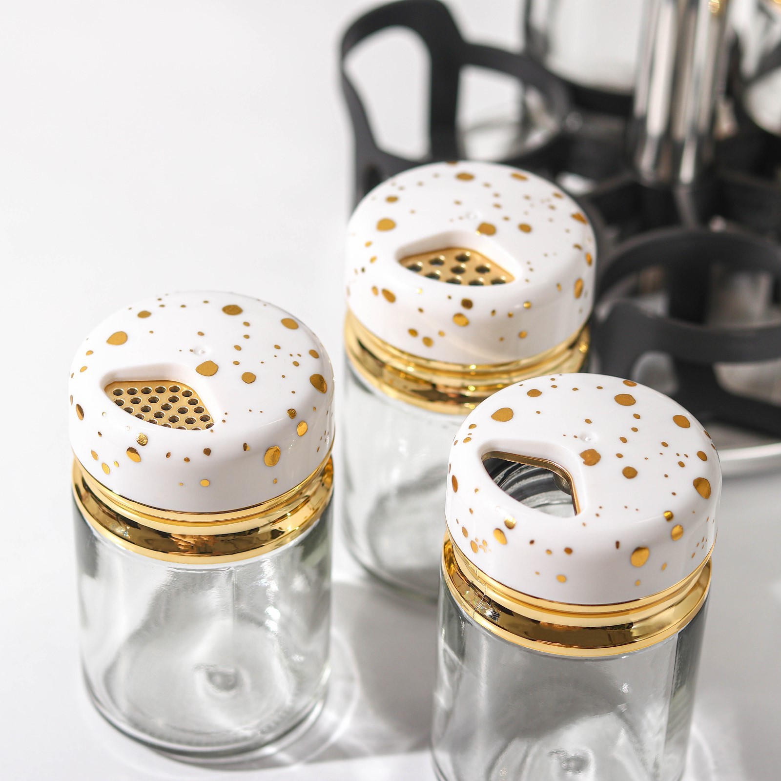 Набор для специй из стекла на подставке Magistro «белый мрамор», 6 шт, цвет белый