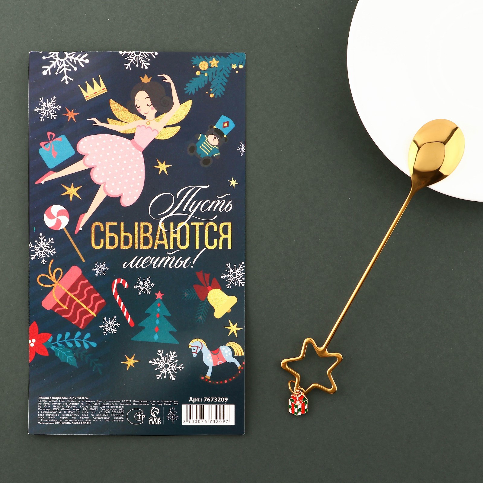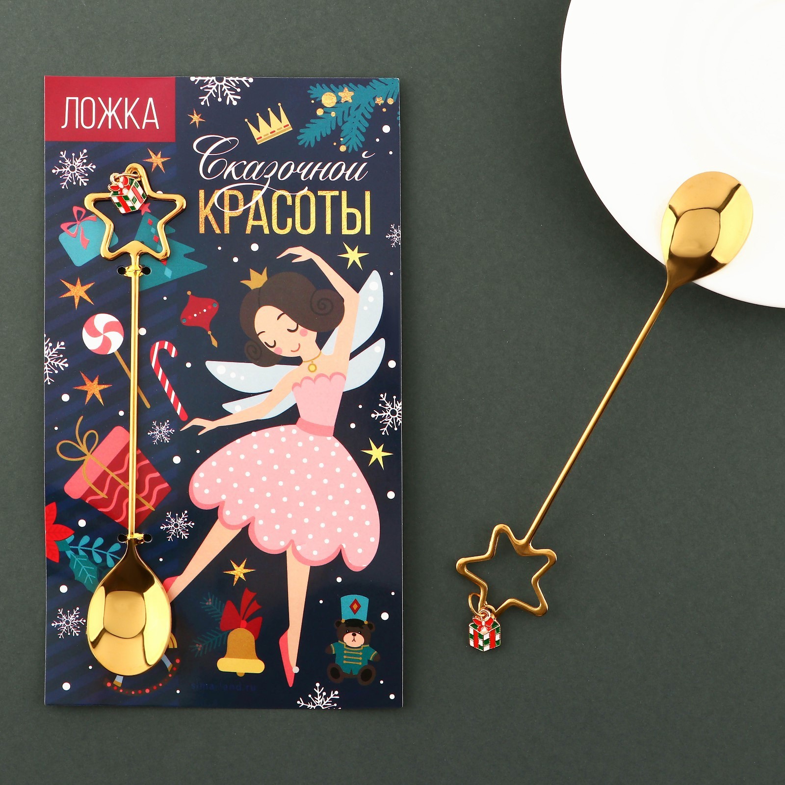 Ложка новогодняя с акриловым подвесом «сказочной красоты», на новый год, нержавеющая сталь, 16 х 2.7 см