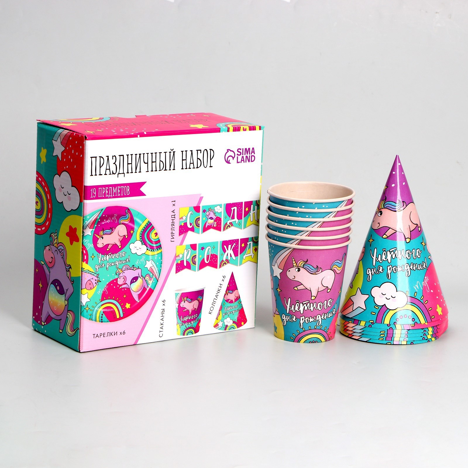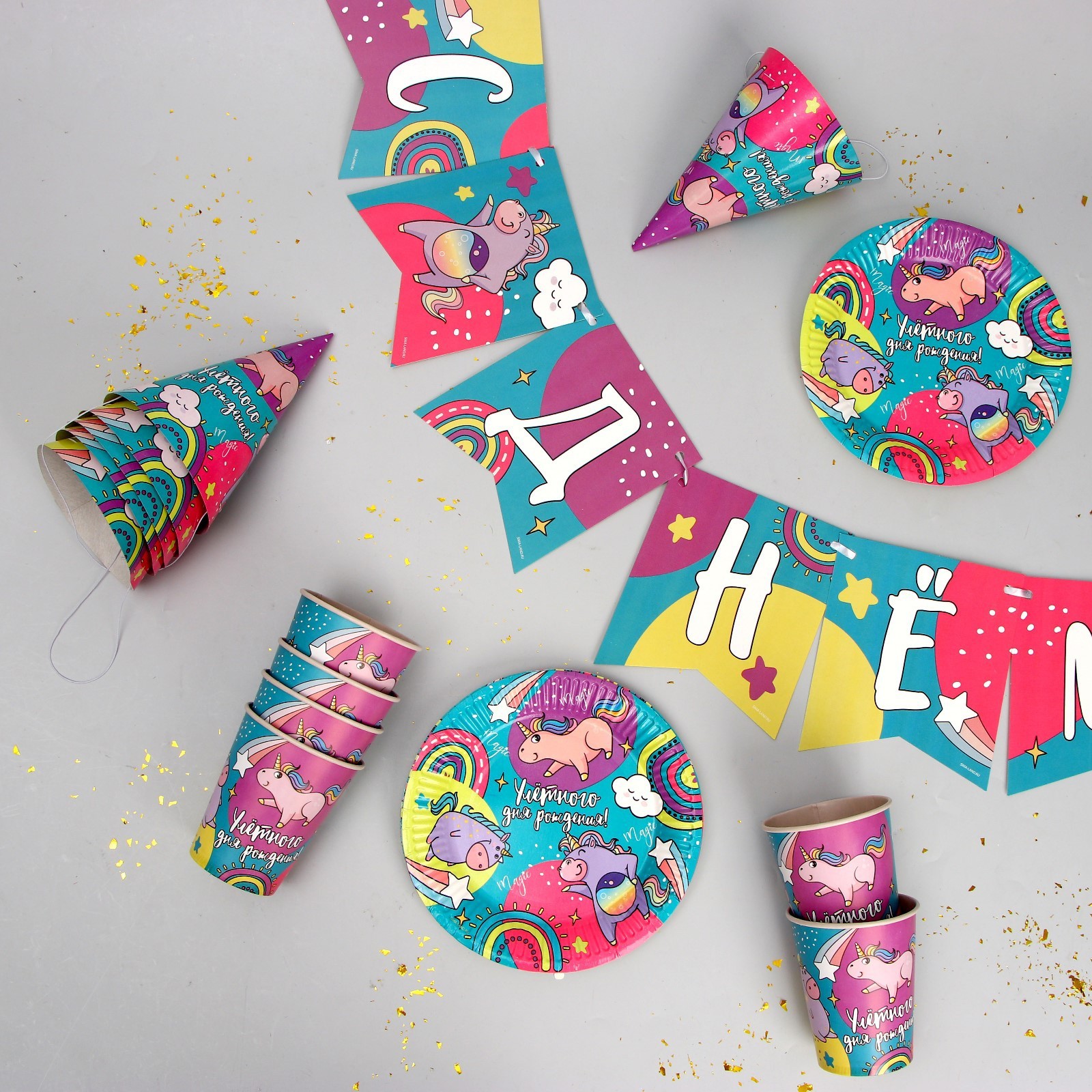 Набор бумажной посуды «улётного дня рождения», 6 тарелок, 6 стаканов, 6 колпаков