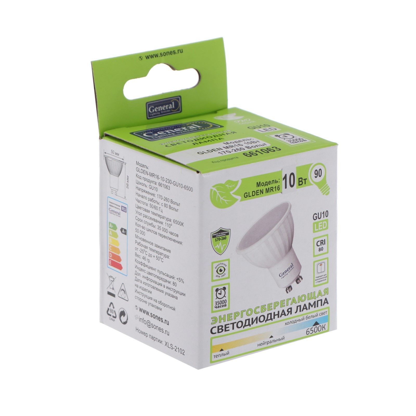 Лампа светодиодная General Glden, Mr16, Gu10, 10 вт, 230 в, 6500 к, 650 лм