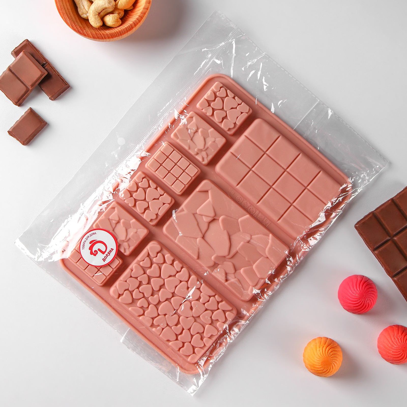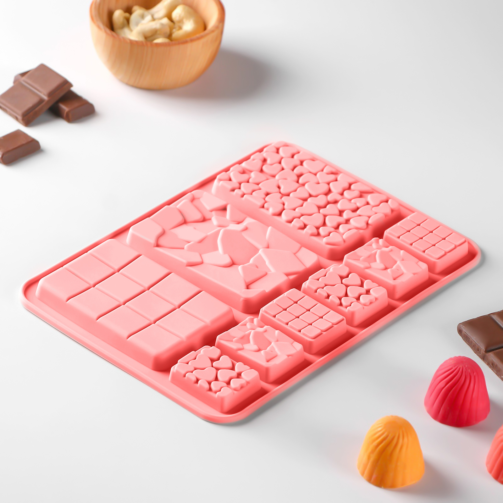 Форма для шоколада доляна «шоколадное ассорти», 20x15 см, 9 ячеек, цвет розовый