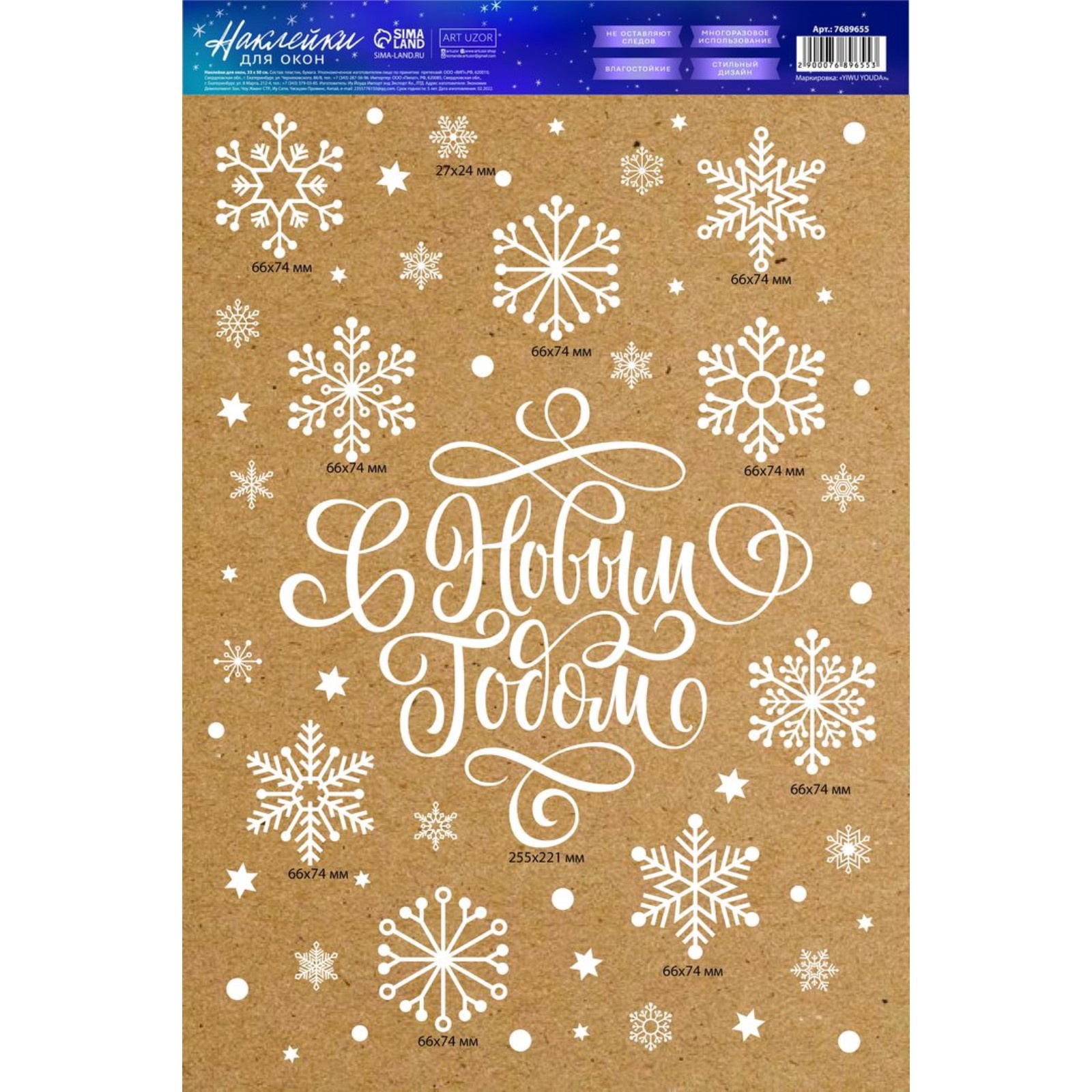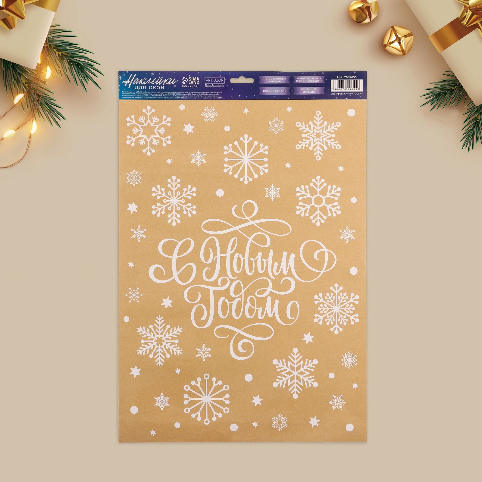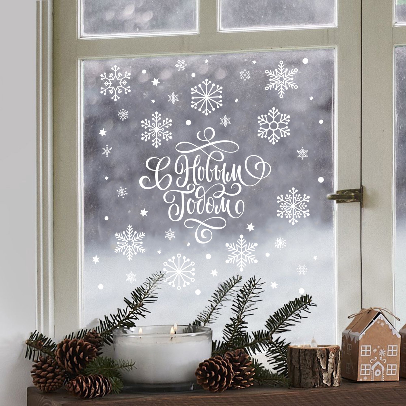 Наклейки на окна многоразовые «с новым годом», снежинки, 33 х 50 см