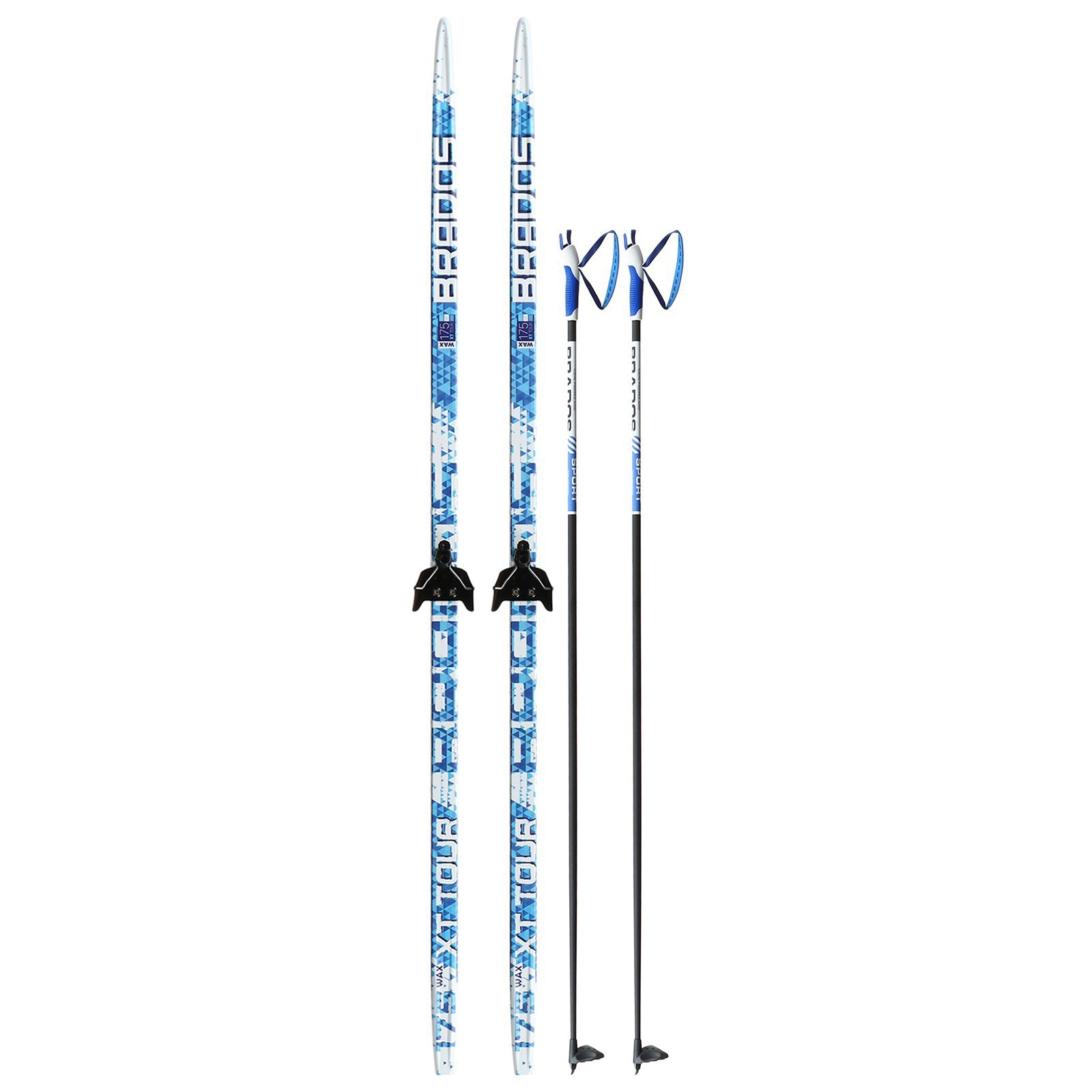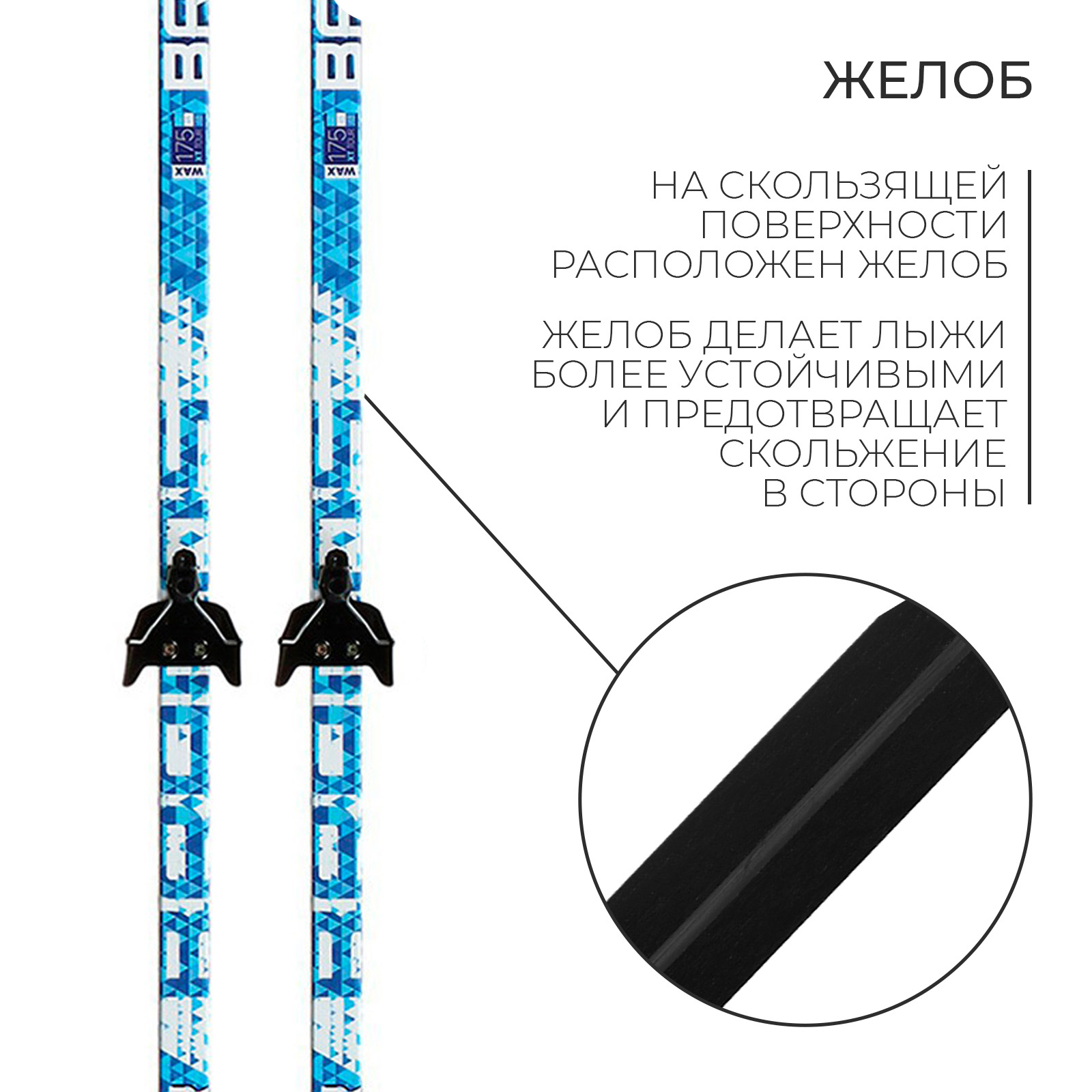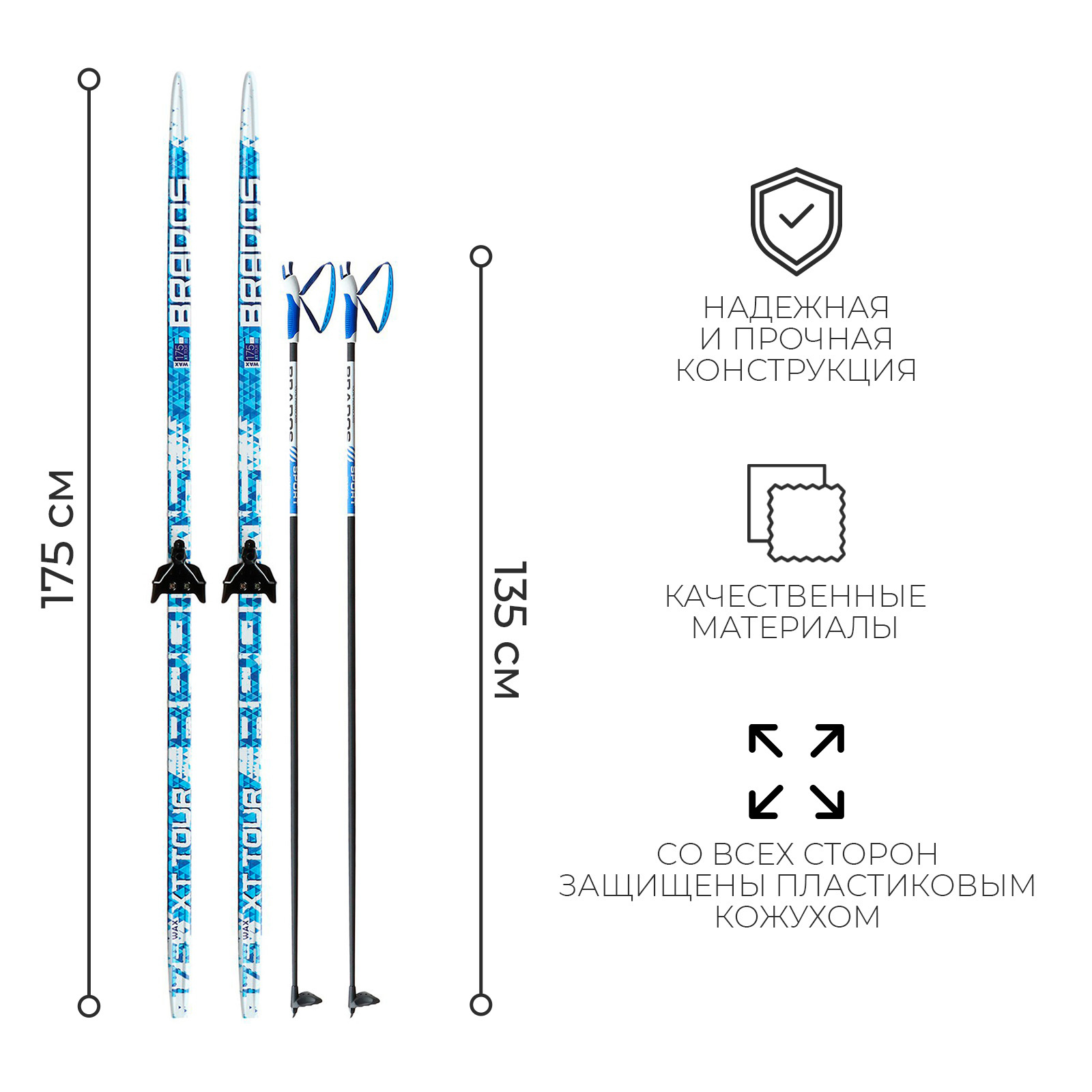 Комплект лыжный: пластиковые лыжи 175 см без насечек, стеклопластиковые палки 135 см, крепления Nn75 мм, цвета микс