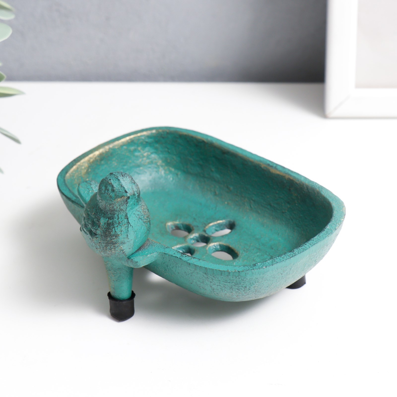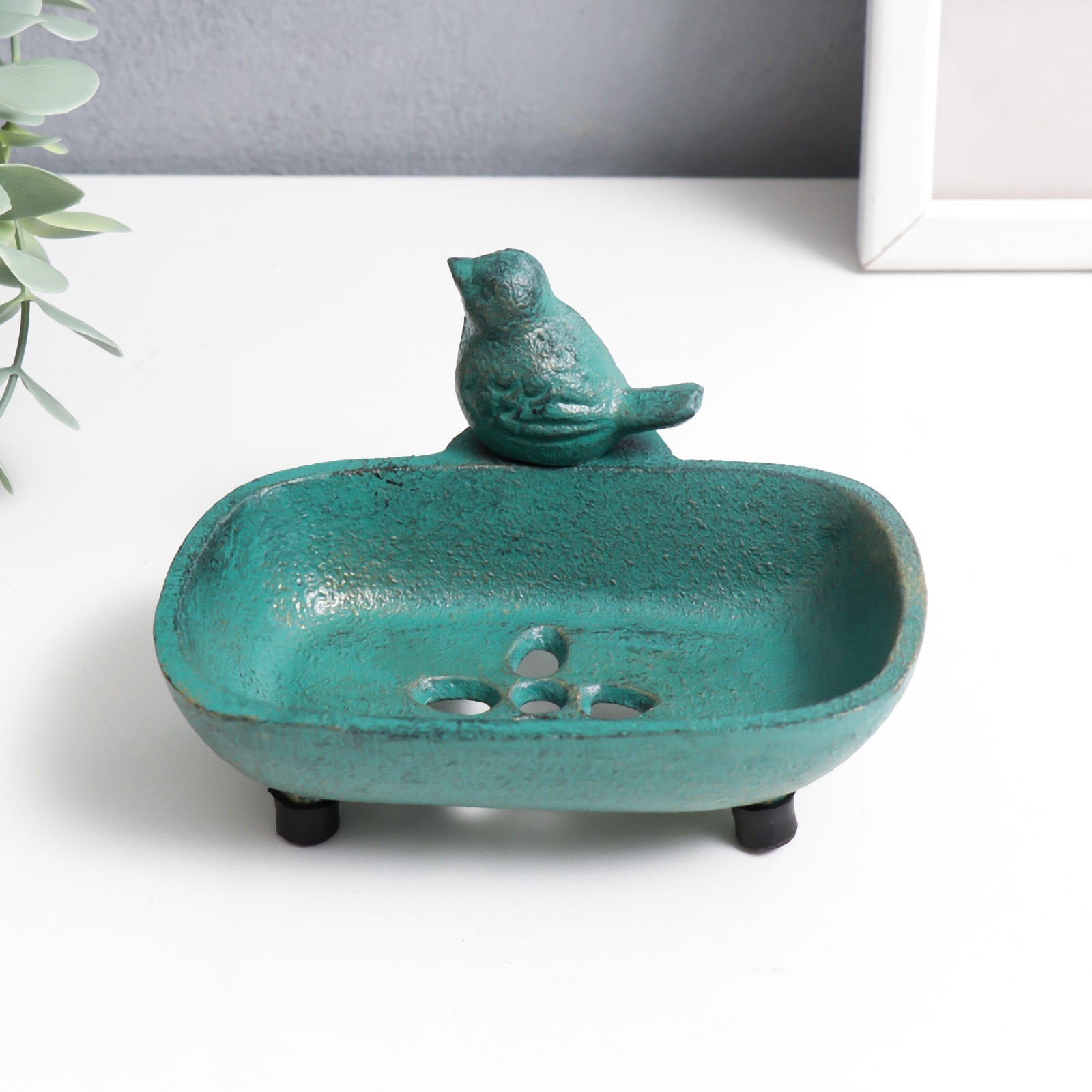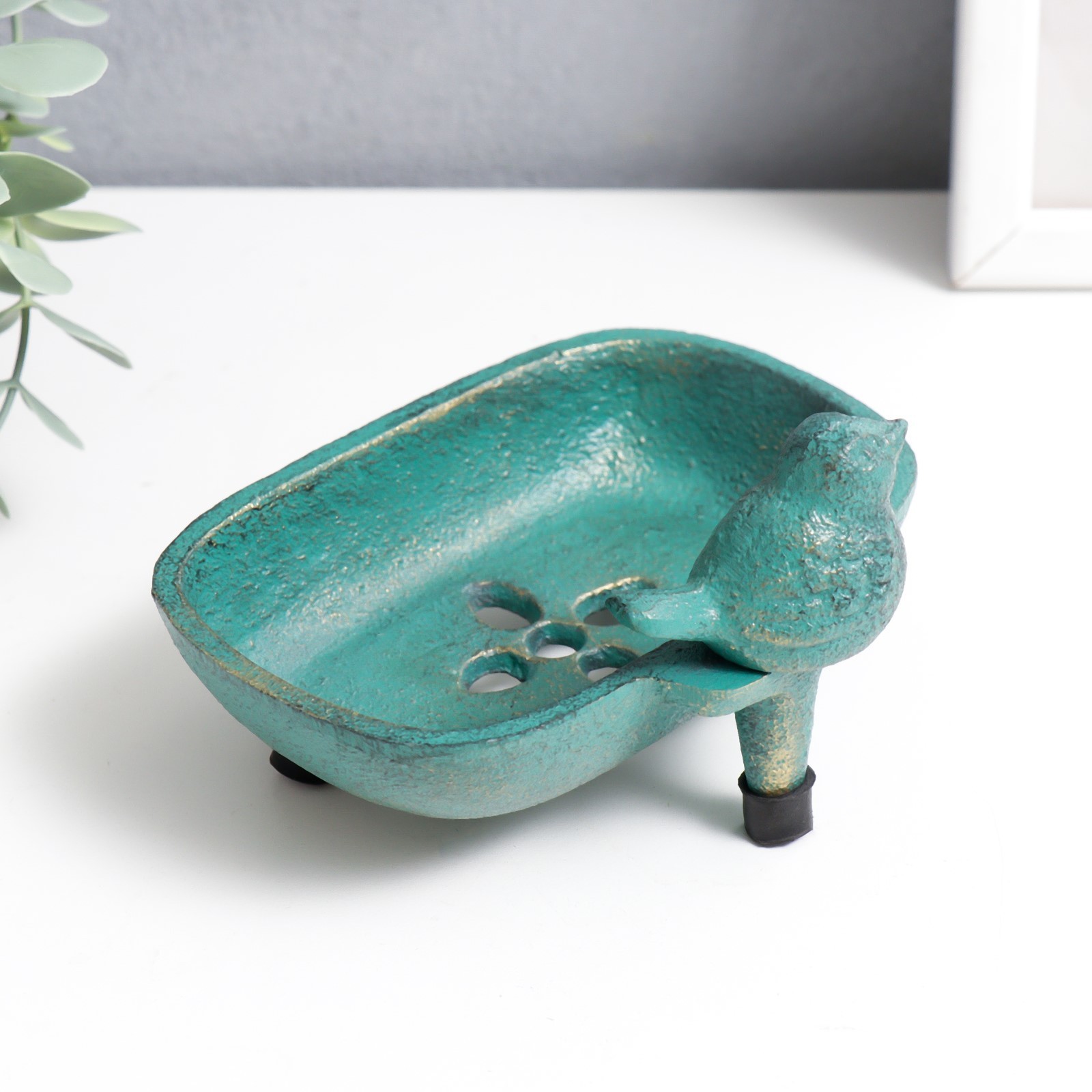Сувенир чугун мыльница "воробушек" патина 7,2х12,8х10 см