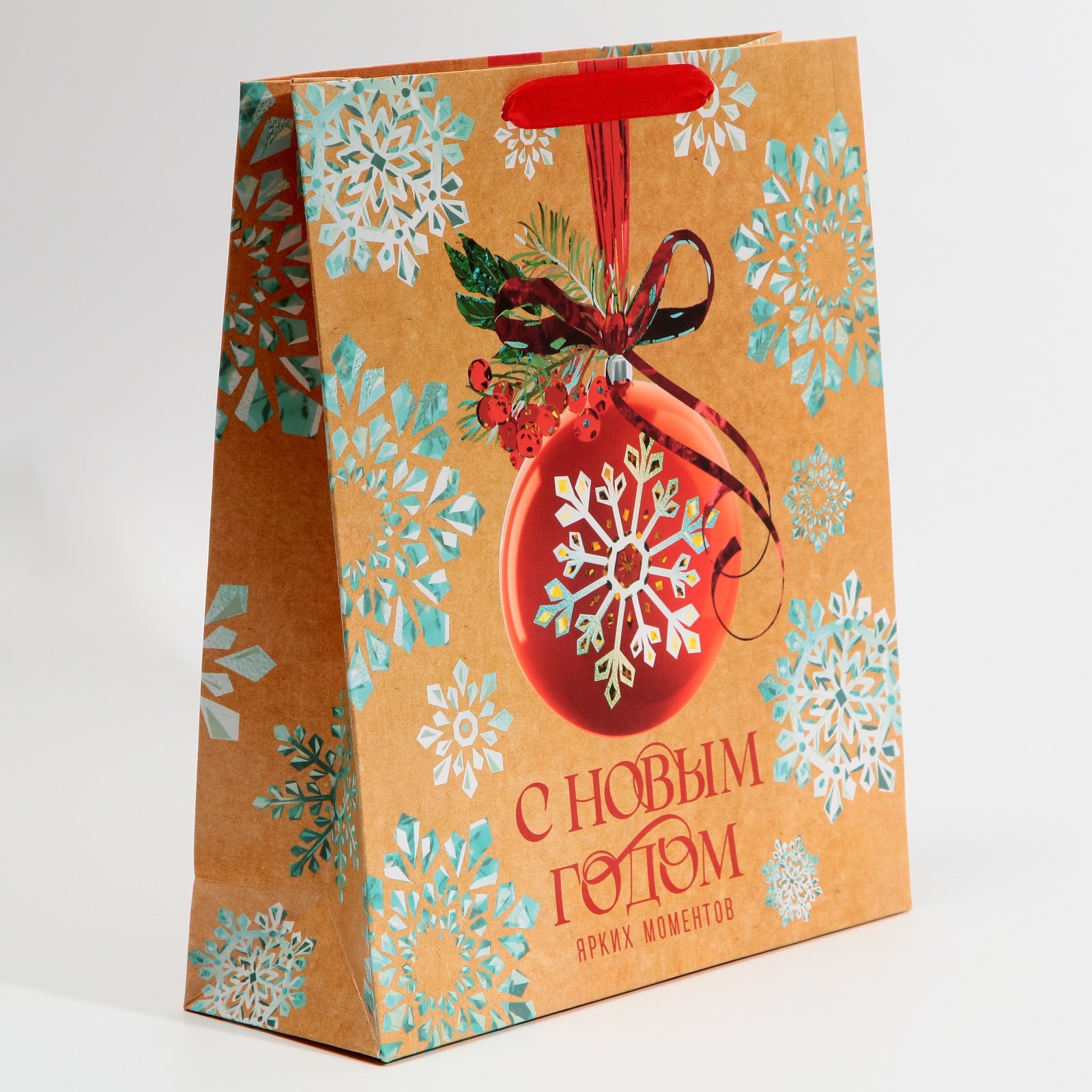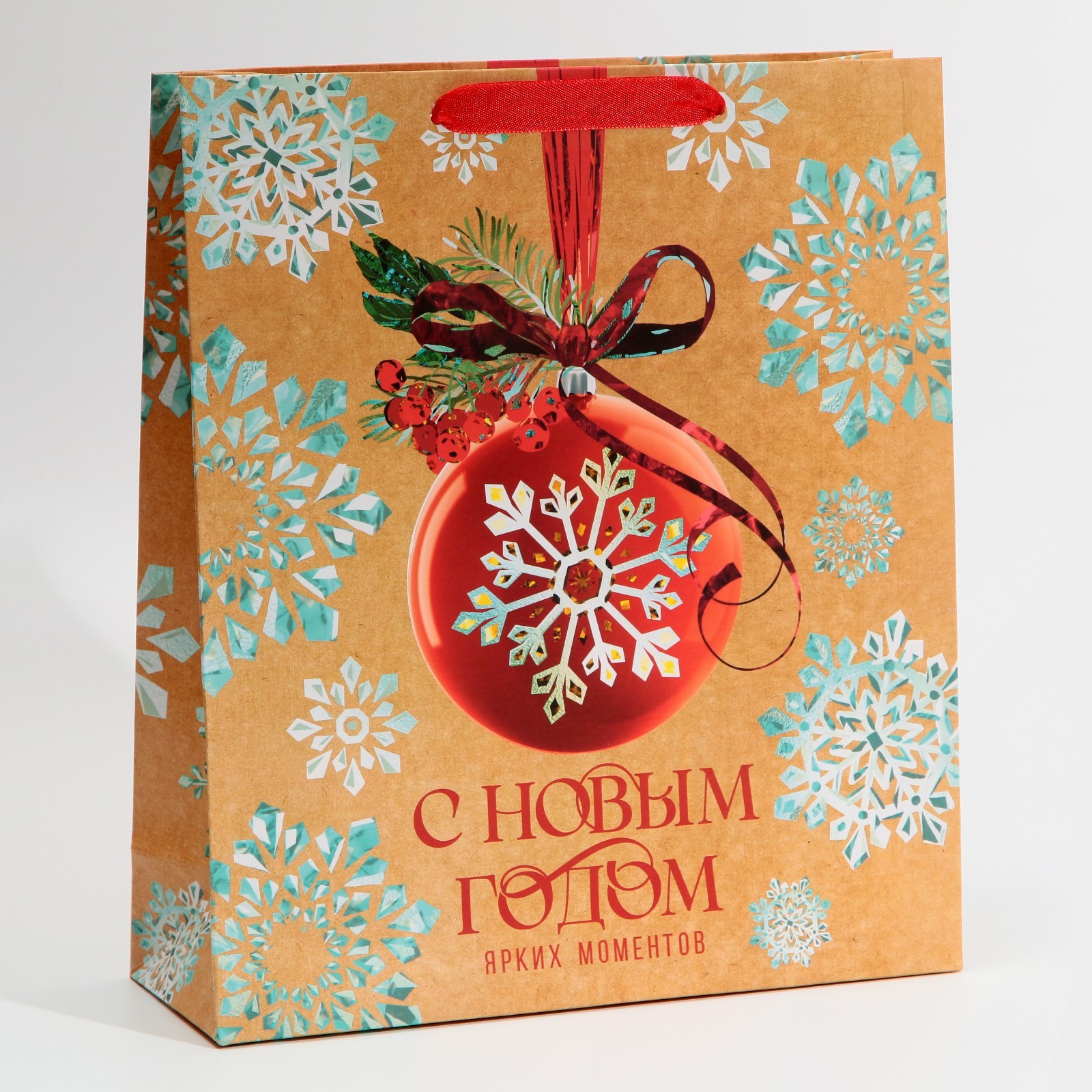 Пакет подарочный новогодний ламинированный «с новым годом», m 26 х 30 х 9 см. Цвет:Бежевый|Для кого:Унисекс|Плотность, г/м :190|Допустимый вес вложения, г:1500|Тематика:Новогодняя|Символ года:Нет|Тематика праздника:Новый год|Материал:Бумага|Отделка пакета:Без отделки|Вид ручки:Ручка-лента|Страна:Китай  развернуть описание ▼
