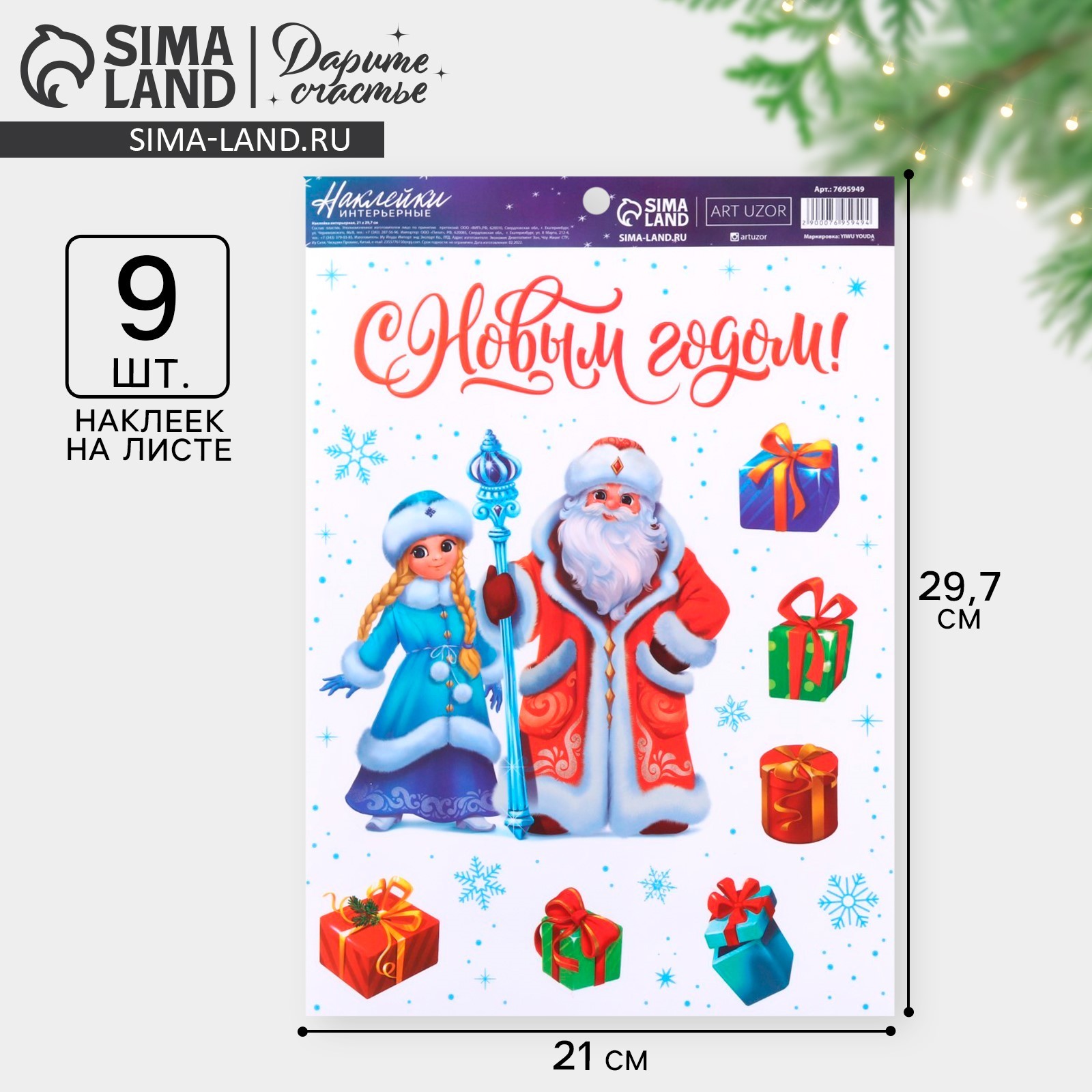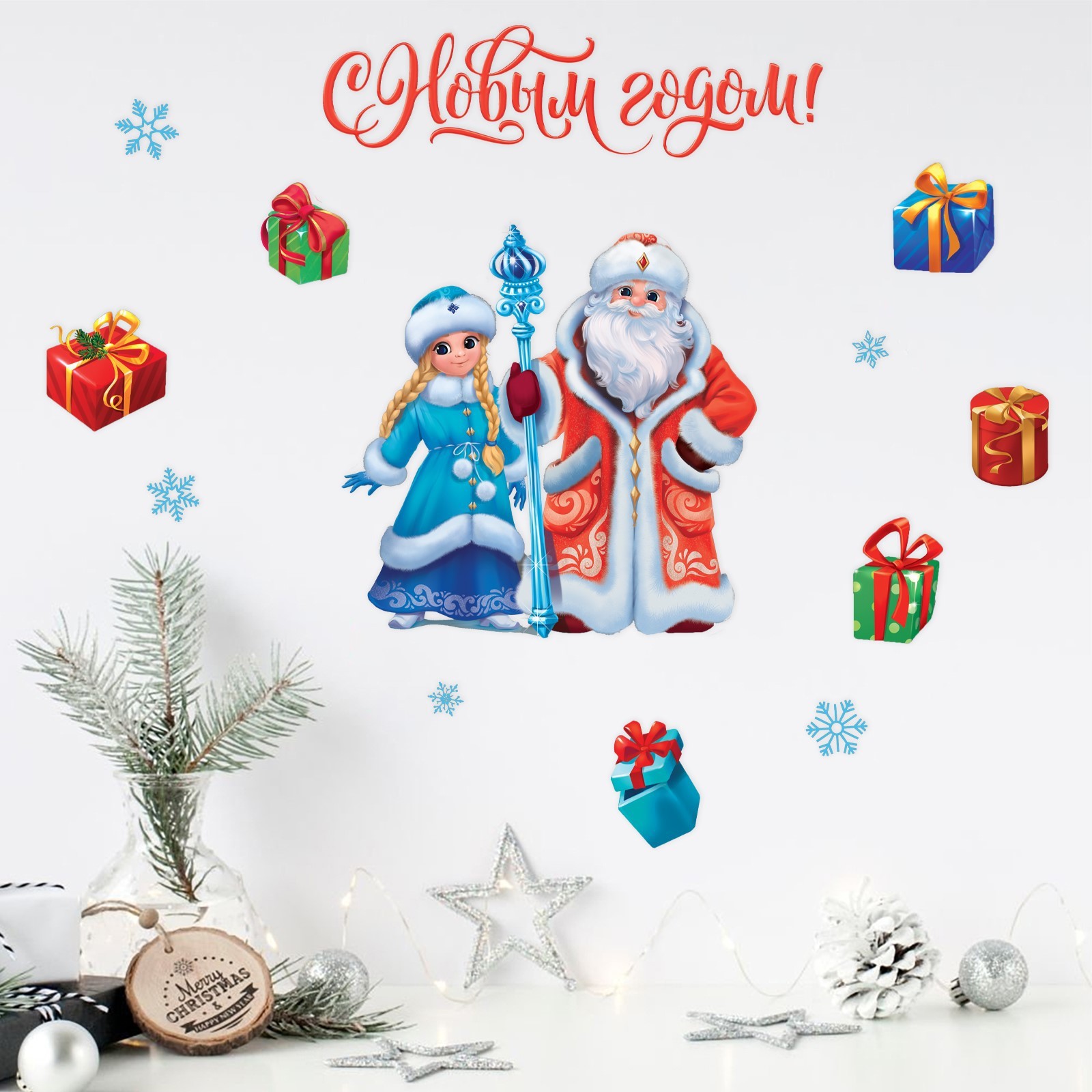 Наклейки интерьерные новогодние «с новым годом», 21 х 29.5 см