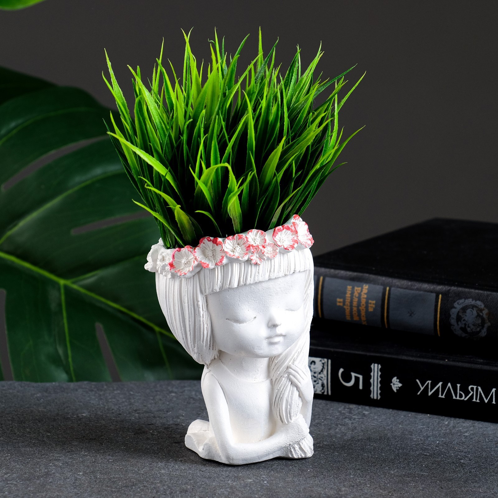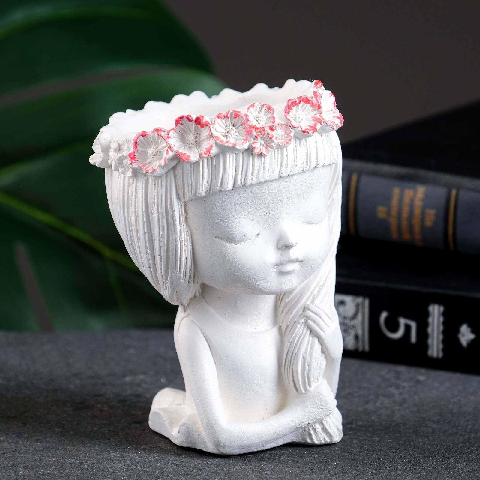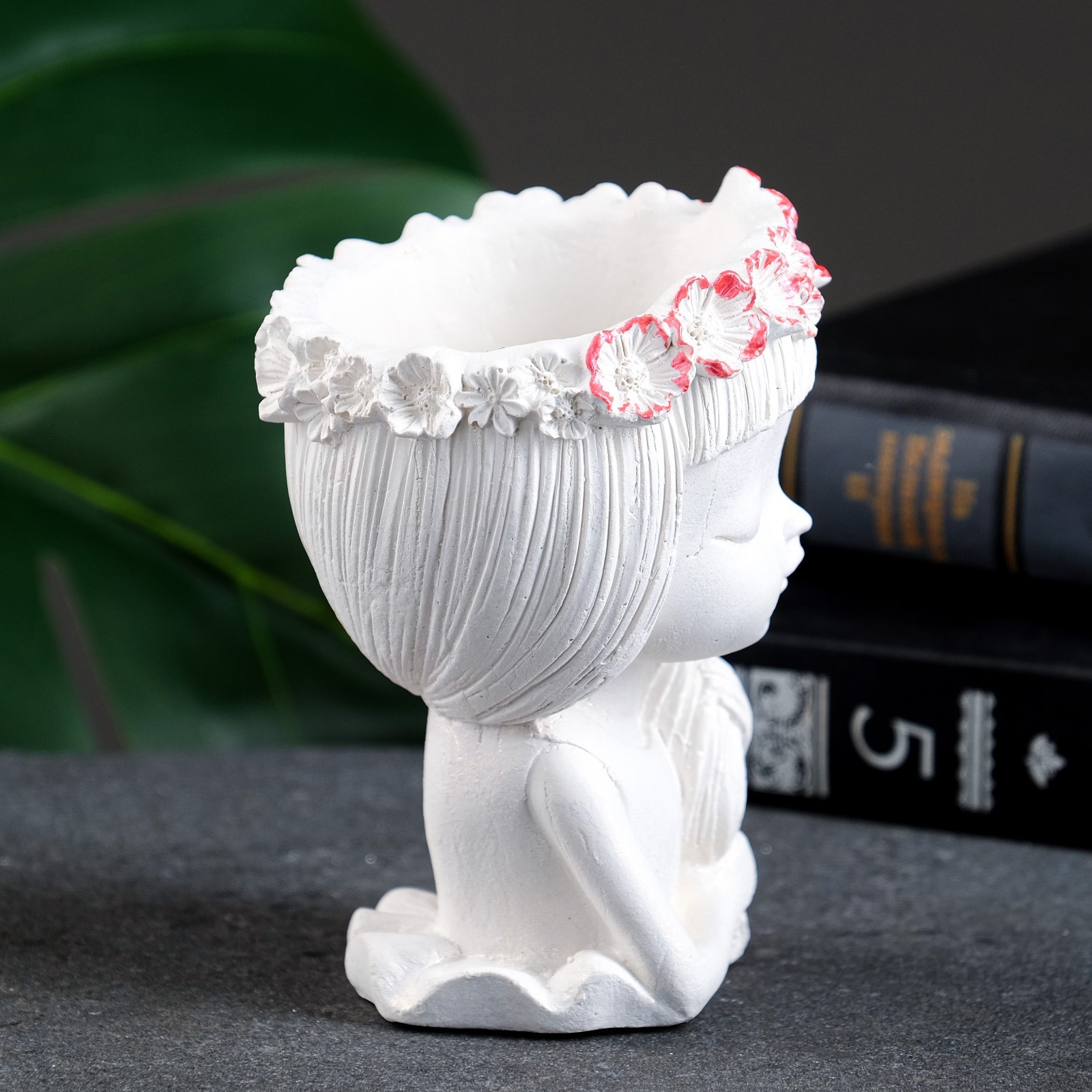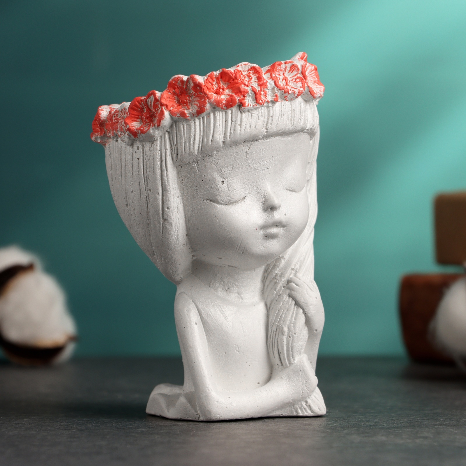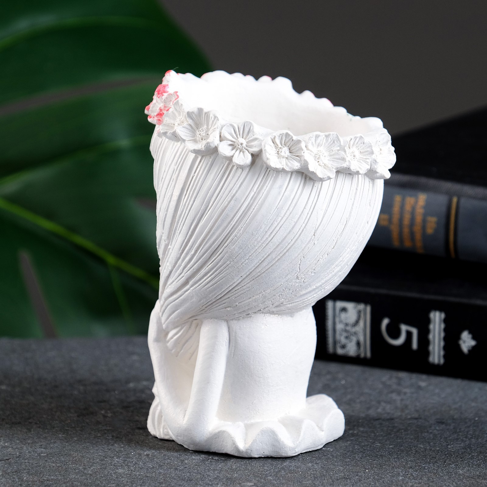 Фигурное кашпо для цветов «девушка с косой», 80 мл, 11 8 8 см, гипс, белое