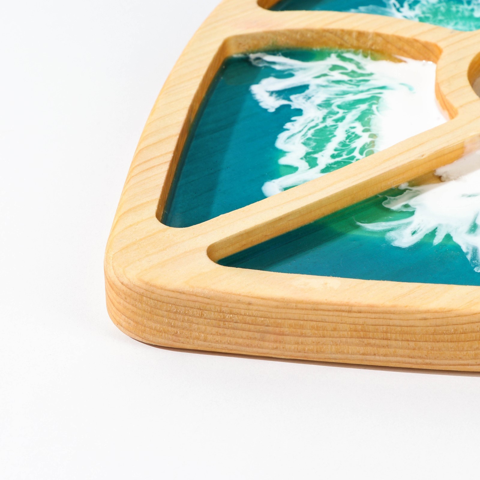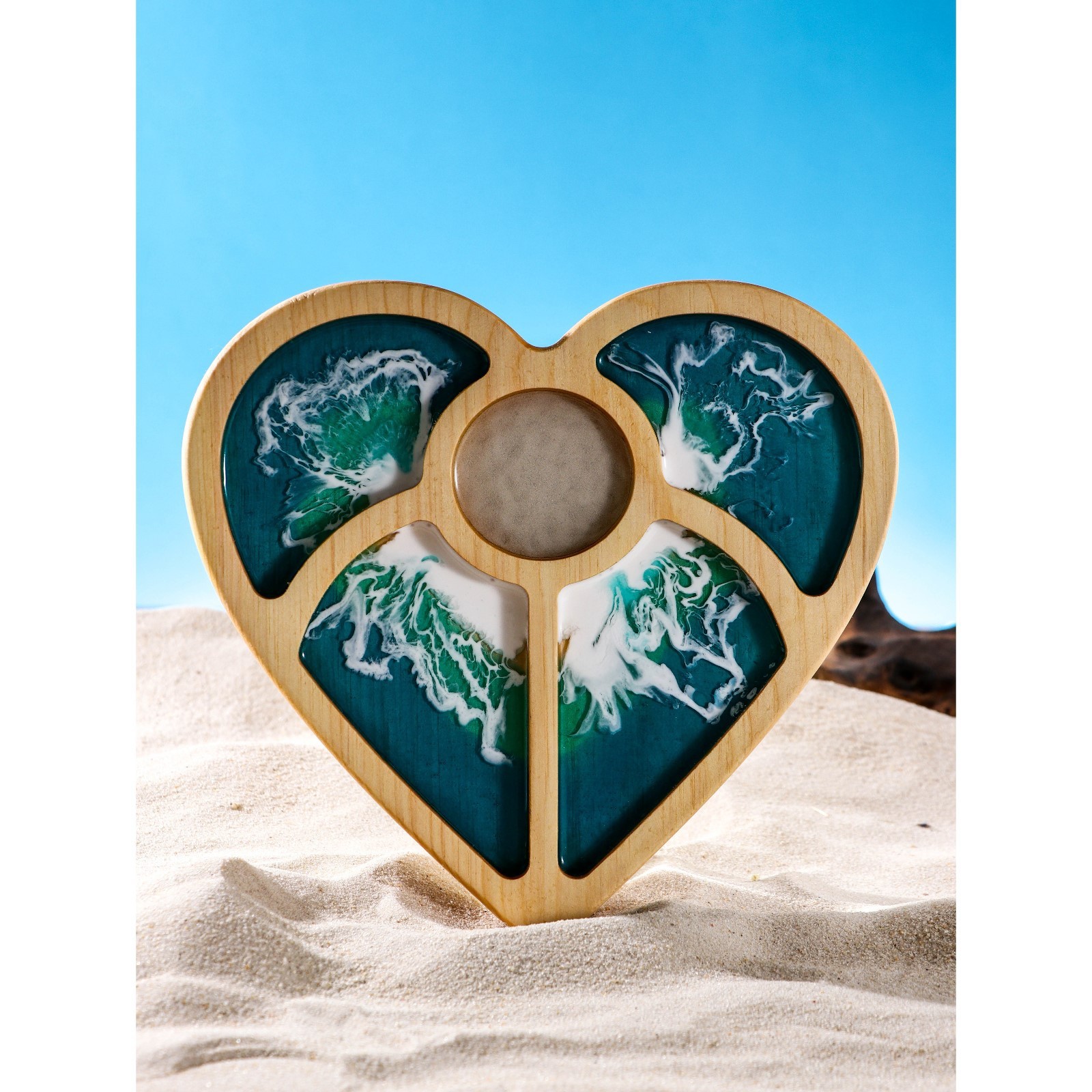 Менажница авторская с эпоксидной пищевой смолой «сердце» Adelica, 25x27 см, цельный кедр, рисунок микс