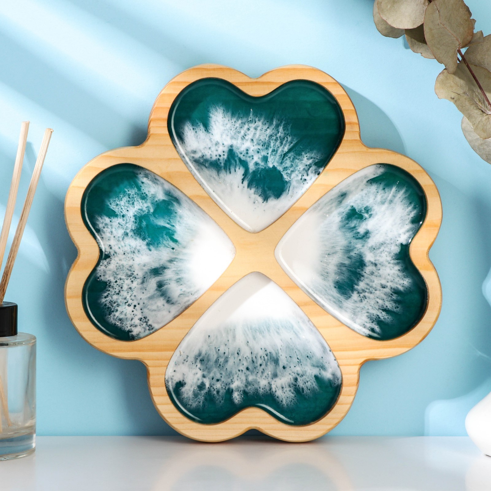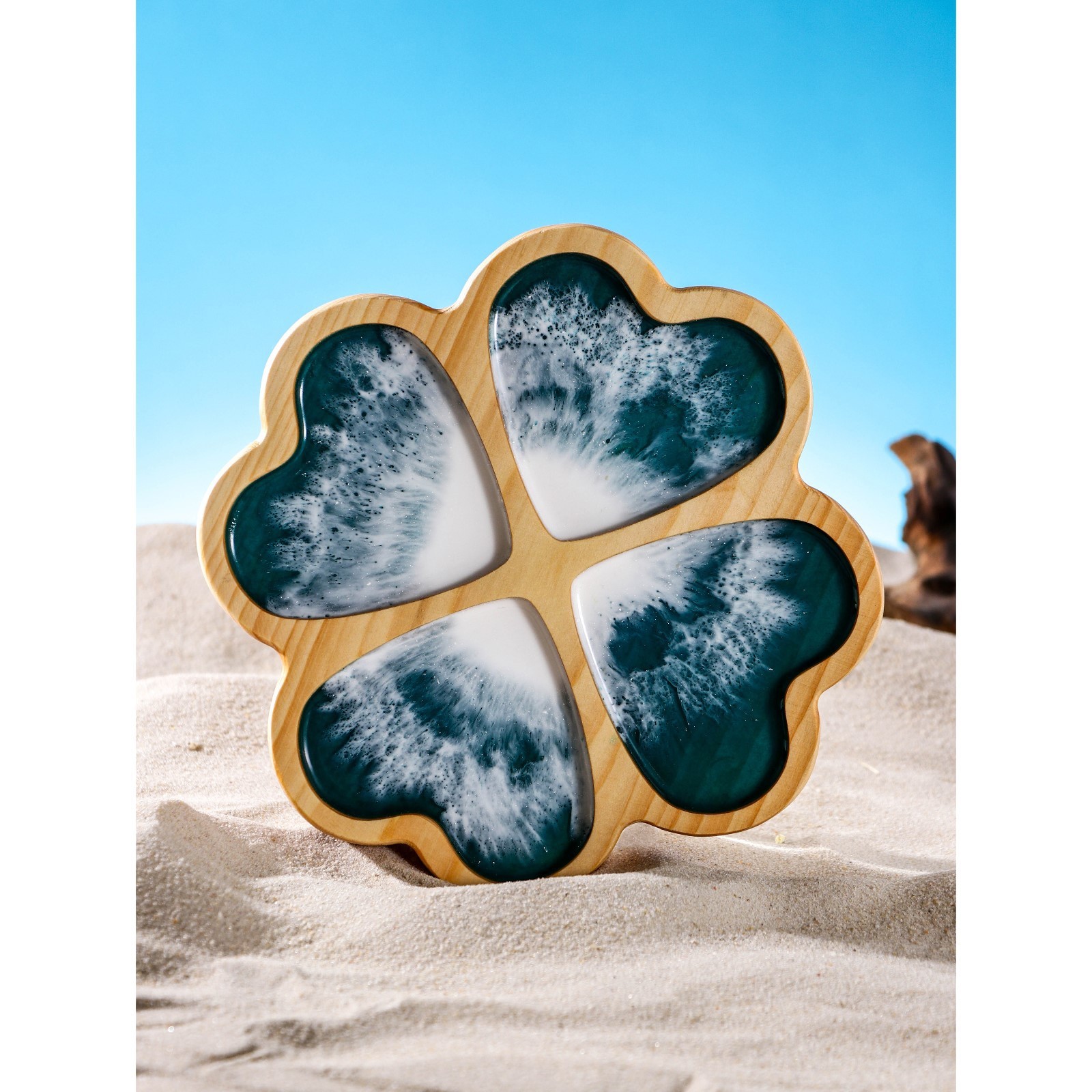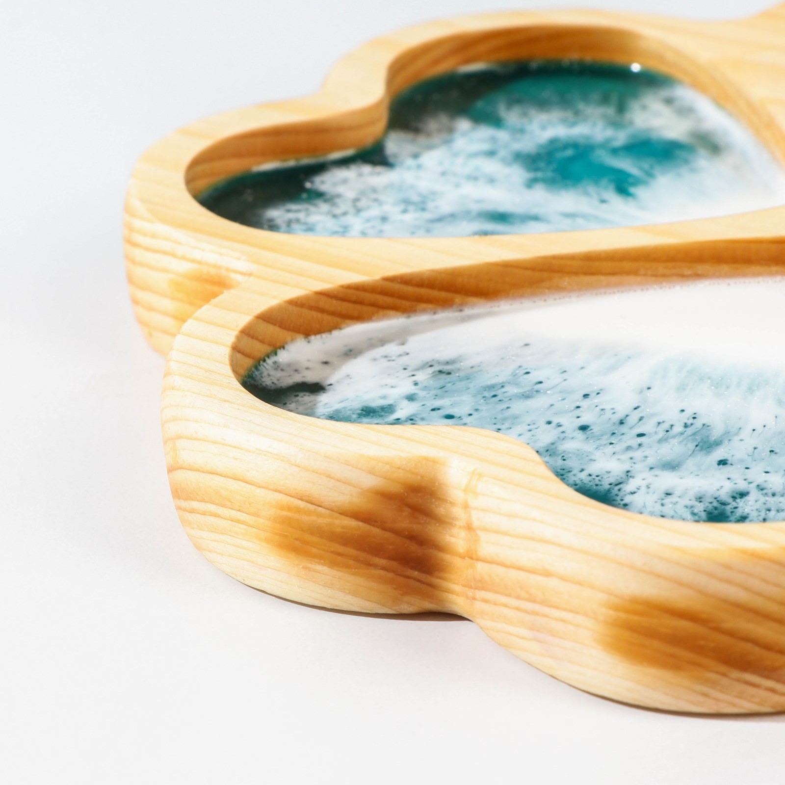 Менажница авторская с эпоксидной пищевой смолой Adelica, 22,5x22,5 см, цельный кедр, рисунок микс
